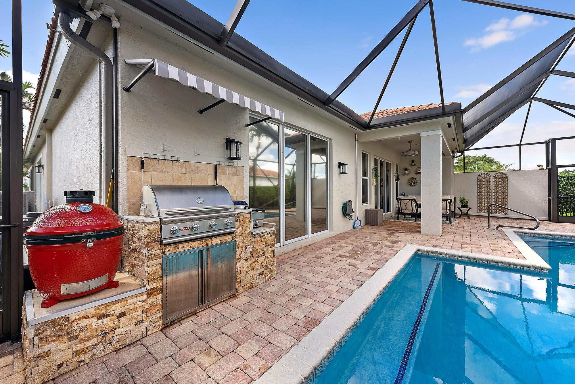 Exciting news for Mirabella homebuyers! This beautiful residence has just been repriced, making it an even greater opportunity to enjoy the lifestyle and sense of community that make Mirabella at Mirasol so special. From the sunny backyard to the resort-inspired clubhouse, every day feels like vacation living. This beautifully maintained 4 bedroom, 2.5 bath pool home offers 2,579 sf of living space with extensive recent upgrades throughout. Features include a spacious open floor plan, porcelain tile flooring in all bedrooms, freshly painted inside and out, upgraded lighting and ceiling fans, remodeled kitchen with new SS appliances, fixtures, and finishes. Additional highlights: new washer and dryer, updated laundry room with sink, and modernized bathrooms.Outdoor living is exceptional with a resurfaced pool, new screen enclosure, summer kitchen with Bull's Grill, Kamado, and electric fryer, new pool equipment including gas heater and saltwater system, and updated landscaping. 10-ton AC 2023. Residents love the Clubhouse! Amenities include a Fitness Center with state-of-the-art equipment, Aerobics and yoga studio, Social and game rooms with card tables, foosball, and ping pong, Children's playroom and tot lot, Library room, and Locker rooms. Outdoor Amenities: Oversized heated swimming pool with sprawling sundecks, tents, and loungers, Kiddie pool, and Four lakeside tennis courts with lighted evening play. Mirabella offers a 24-hour guard gate for security and is conveniently located near A-rated schools, shops, restaurants, and the beach.