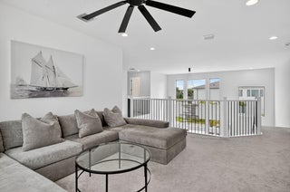 Discover this stunning Polynesia model on a rare oversized corner lot with southern exposure, filling the home with natural light from sunrise to sunset. Enjoy soaring corner windows extending to the second-floor loft, creating an airy, modern ambiance and architectural appeal. This 5-bedroom, 7-bath home features upgraded concrete-look porcelain tile, recessed lighting, and an epoxy-finished garage floor. Relax with serene corner lake views and envision your future pool basking in all-day sun. Located in Boca Raton's premier Lotus Palm community with resort-style amenities and top-rated schools.