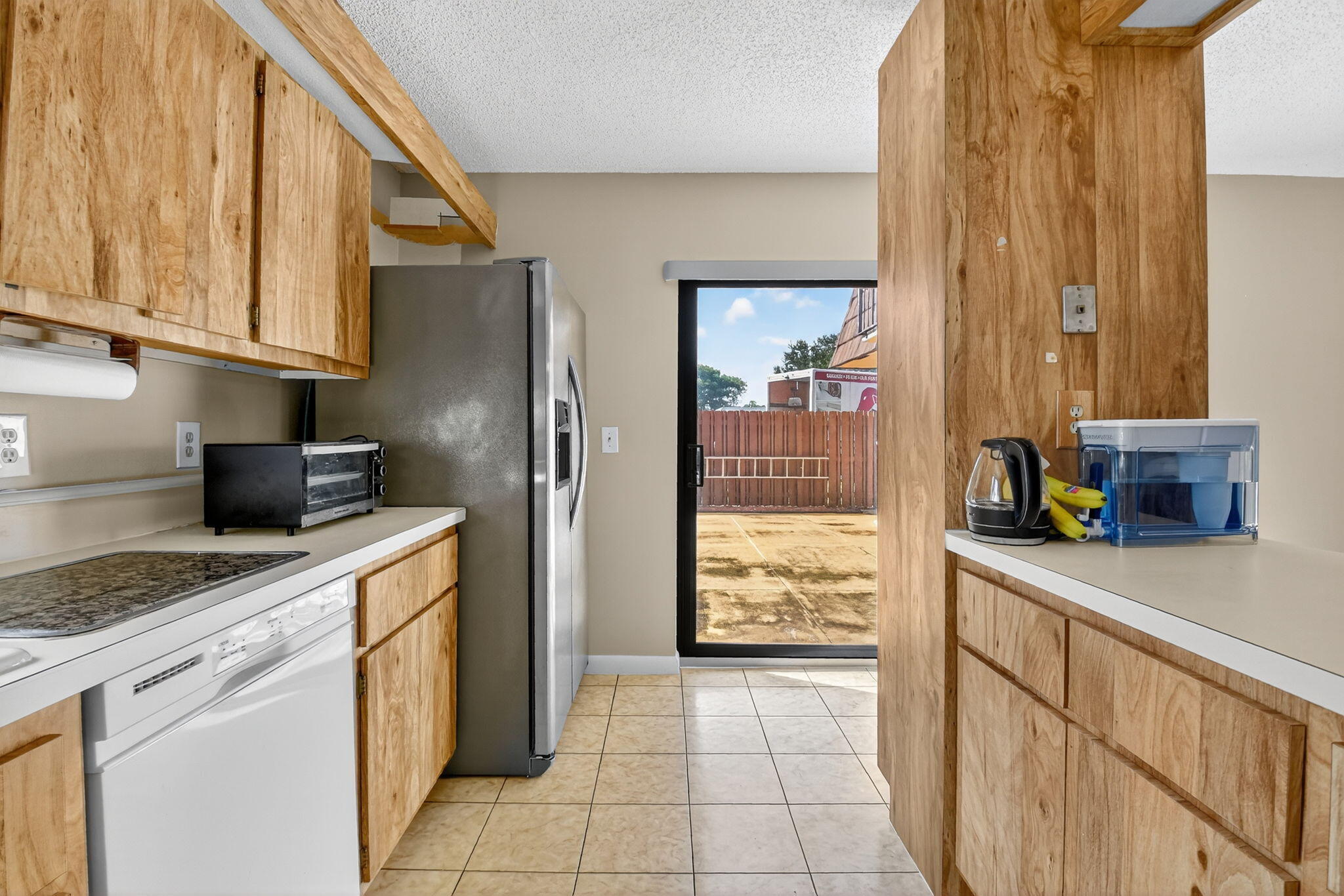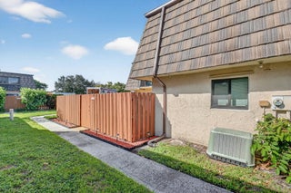 2 Bed, 2.5 Bath well-maintained townhome offers two master suites on the second floor, half bath and laundry downstairs. Roof and gutters 2022, A/c 2018, impact sliders and windows 2024. Huge fenced patio area. Comes with 2 assigned parking spaces. Community amenities include 2 pickleball courts, 1 tennis court, pool, and wide sidewalks. Centrally located near Palm Beach Airport, I-95, Palm Beach Zoo, Main Library. All sizes approx.