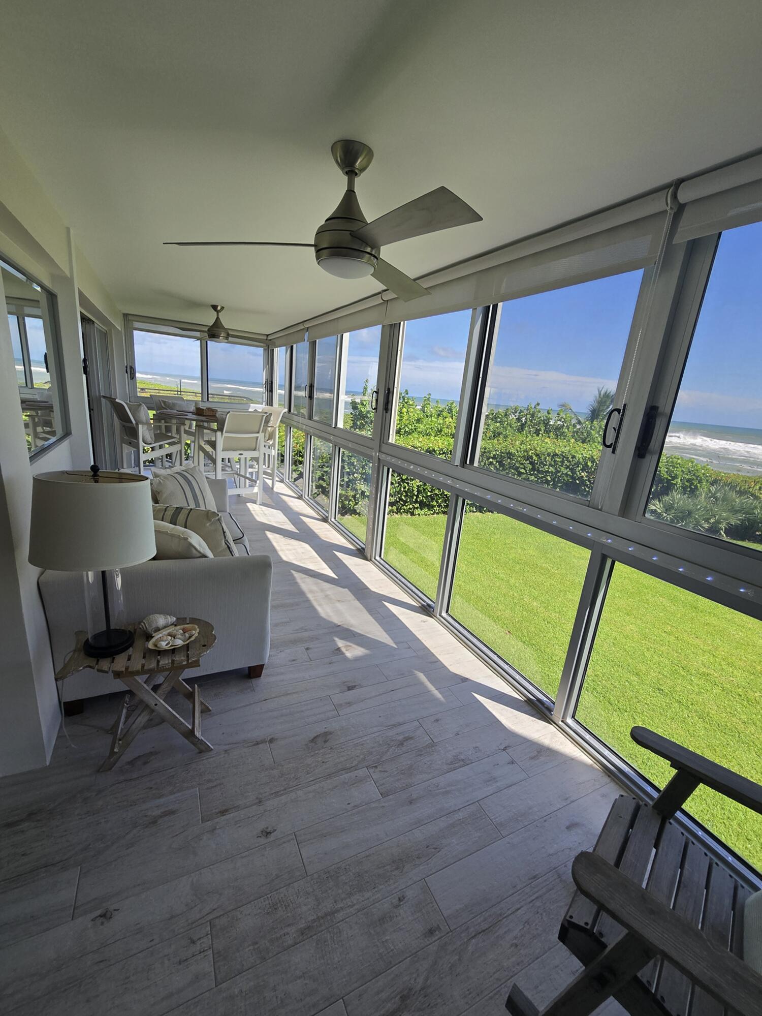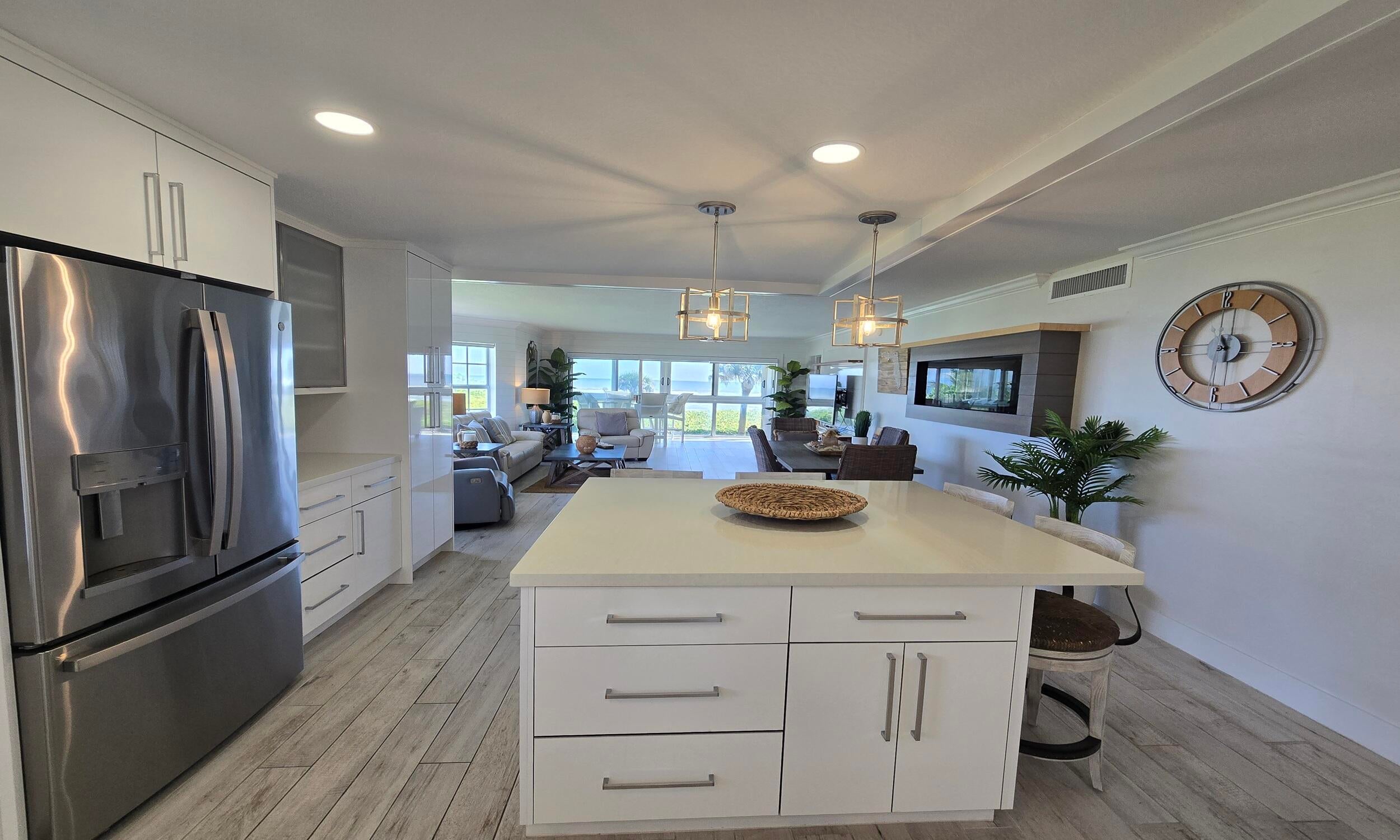 Gorgeous renovated 2/2 second floor northeast corner condo in beautiful Juno Beach. Sweeping 180 degree views of the beach and the amazing Atlantic ocean. Open plan decorated in Coastal Chic and turn key. Located on peaceful Pelican Lake with a 360 degree walking pathconnecting to the sidewalk that takes you to the Juno Pier. Walking distance to 10 plus restaurants and bars. Close to shopping and just 15 minutes to I-95 and the Turnpike. Spend your season enjoying all that Juno Beach has to offer.