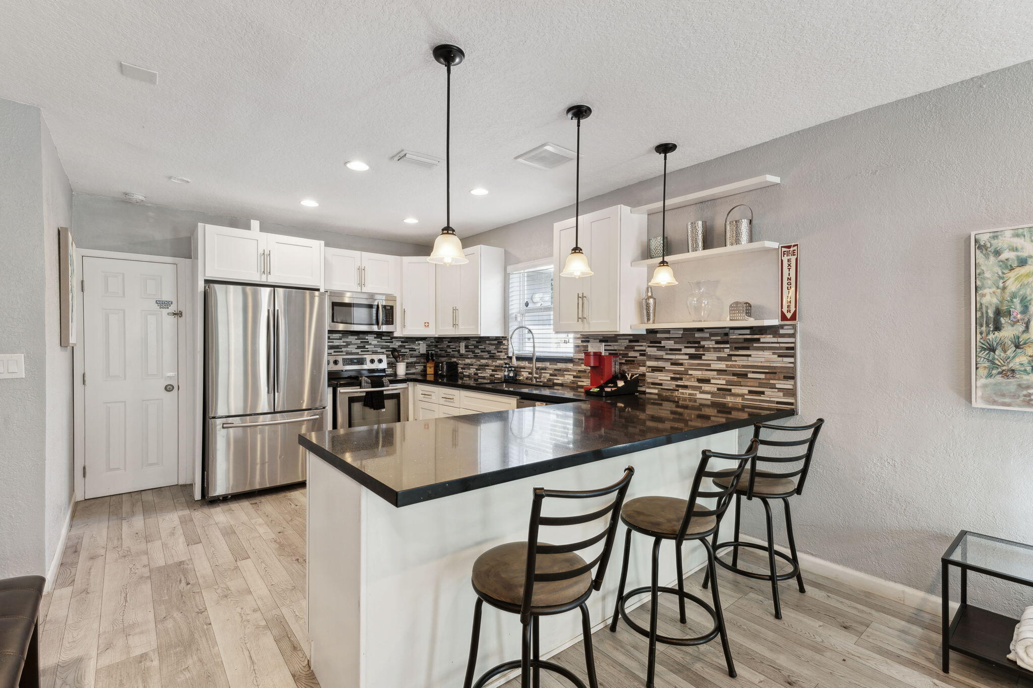 Incredible 2 for 1 deal on this 3bed/2bath property. This property has a unique layout with an Owner's Suite (1bd/1ba) with a kitchenette and its own backyard in the back and the main house (2bd/1ba) in the front with a true Smart Heated Pool setup. These two separate entrances give you the freedom to occupy one and rent the other or turn both into income producing units as this house is already AirBnb Ready. With newer roof, newer updated plumbing and newer central A/C, all major ticket items have already been taken care of. The house also features an open concept floor plan with laminate and tile flooring throughout, creating a modern living space with an in-kitchen that has a huge island to sit 3. With a quick 3 minute drive, this home is close to Wilton Downtown, and the Beach.