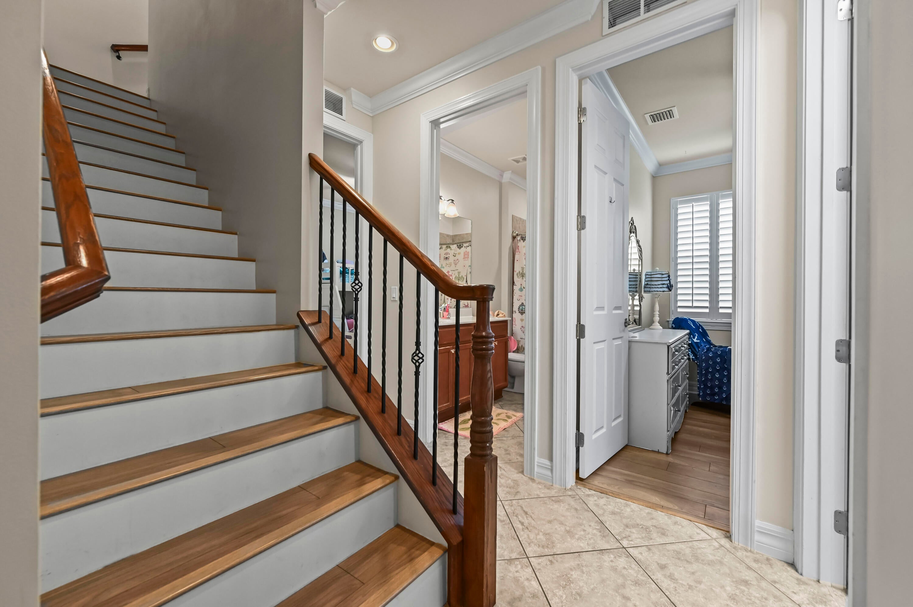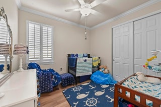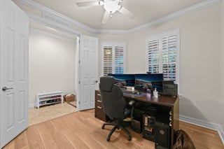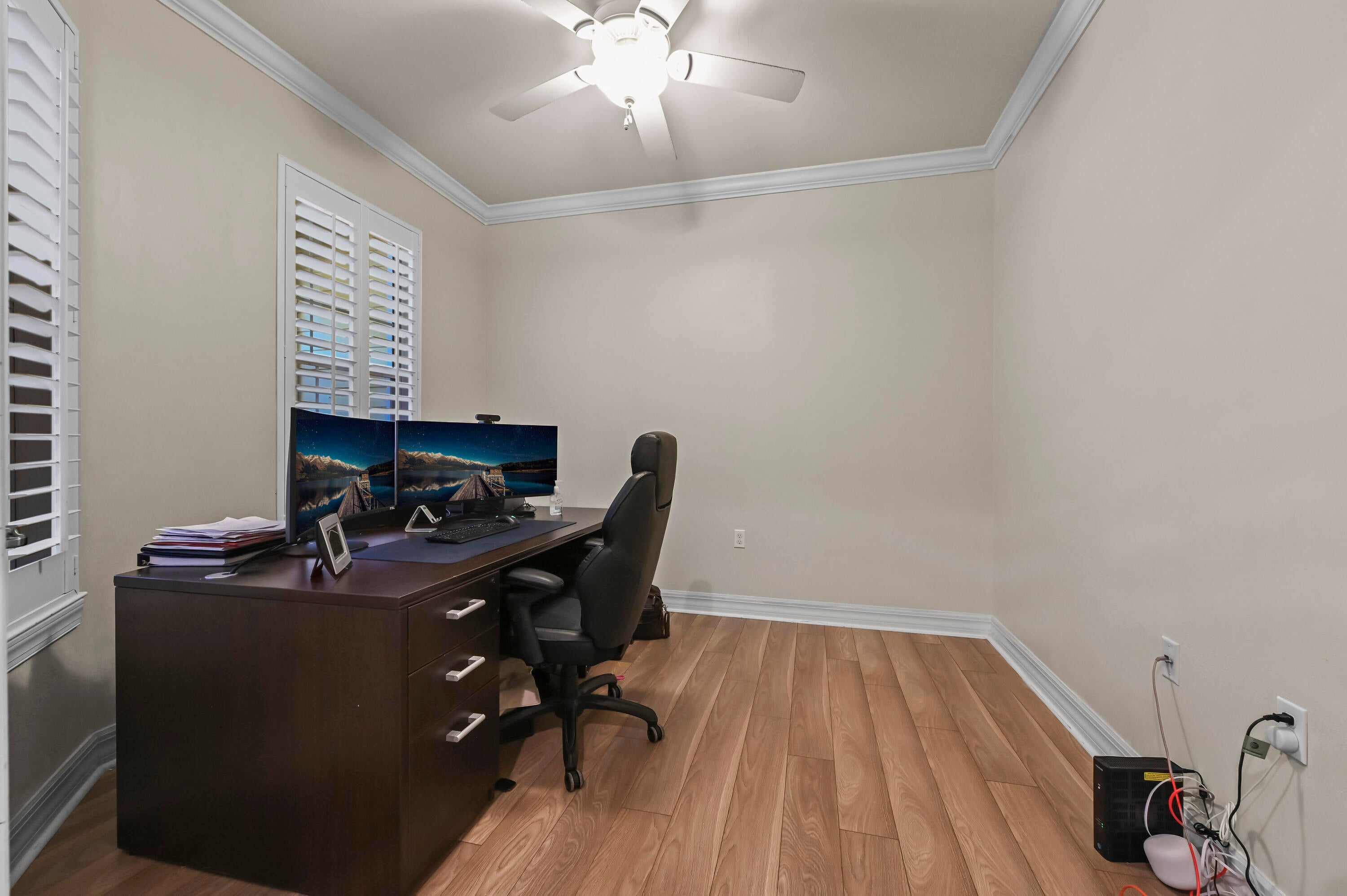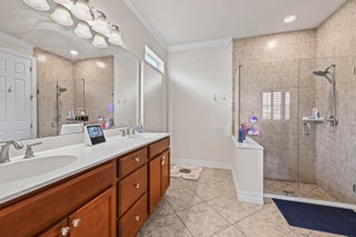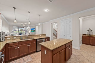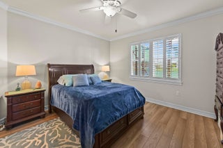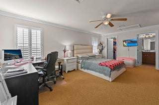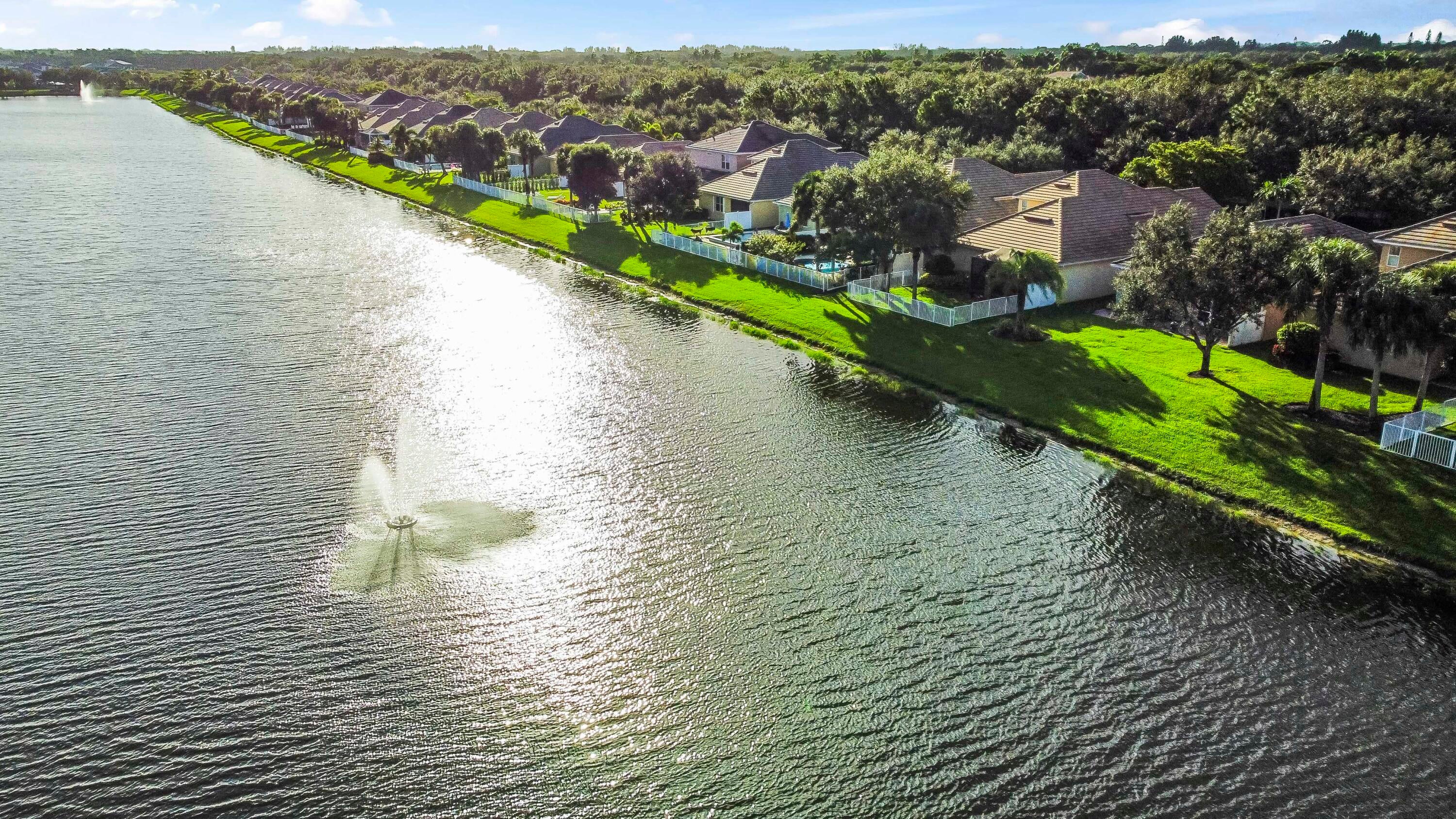 Welcome to this stunning home, perfectly situated on a serene waterfront lot within the beautifully maintained gated community, Oak Haven. The residence offers fantastic curb appeal with a paver driveway, lush landscaping, and a welcoming screened front porch. Step inside to an office that could be used as a 5th bedroom then into the bright, open-concept living area defined by neutral tile flooring, fresh paint, and elegant crown molding, flowing seamlessly into the gourmet kitchen. This central space features warm wood cabinetry, dark granite countertops, and stainless steel appliances, creating a highly functional and stylish area for both daily living and entertaining.The first floor Master Suite provides a luxurious, private retreat, enhanced by natural light from windows dressed in plantation shutters overlooking the beautiful. Functionality is paramount in this wing, with a professionally organized walk-in closet featuring custom shelving and drawers and an updated Master Bath with dual sinks and a spacious walk-in shower. The huge second master/in-law suite is located on the second floor and boasts a walk in closet & en-suite bath as well. The guest bedrooms are equally well-appointed, with wood-look laminate flooring in some, and all are spacious and bright. Furthermore, the home is equipped with a convenient, dedicated laundry room with modern, side-by-side washer and dryer units. The outdoor space is an absolute oasis, designed for low-maintenance enjoyment and relaxation. The home boasts a covered and screened patio with attractive, multi-toned paver flooring, providing a perfect spot for outdoor seating and dining. This private area overlooks a large, beautifully manicured lawn that leads directly to the water's edge, where you can enjoy tranquil lake views and a peaceful setting. This home is a rare opportunity to secure a fully updated, single-story sanctuary with premier waterfront positioning and high-end finishes throughout.