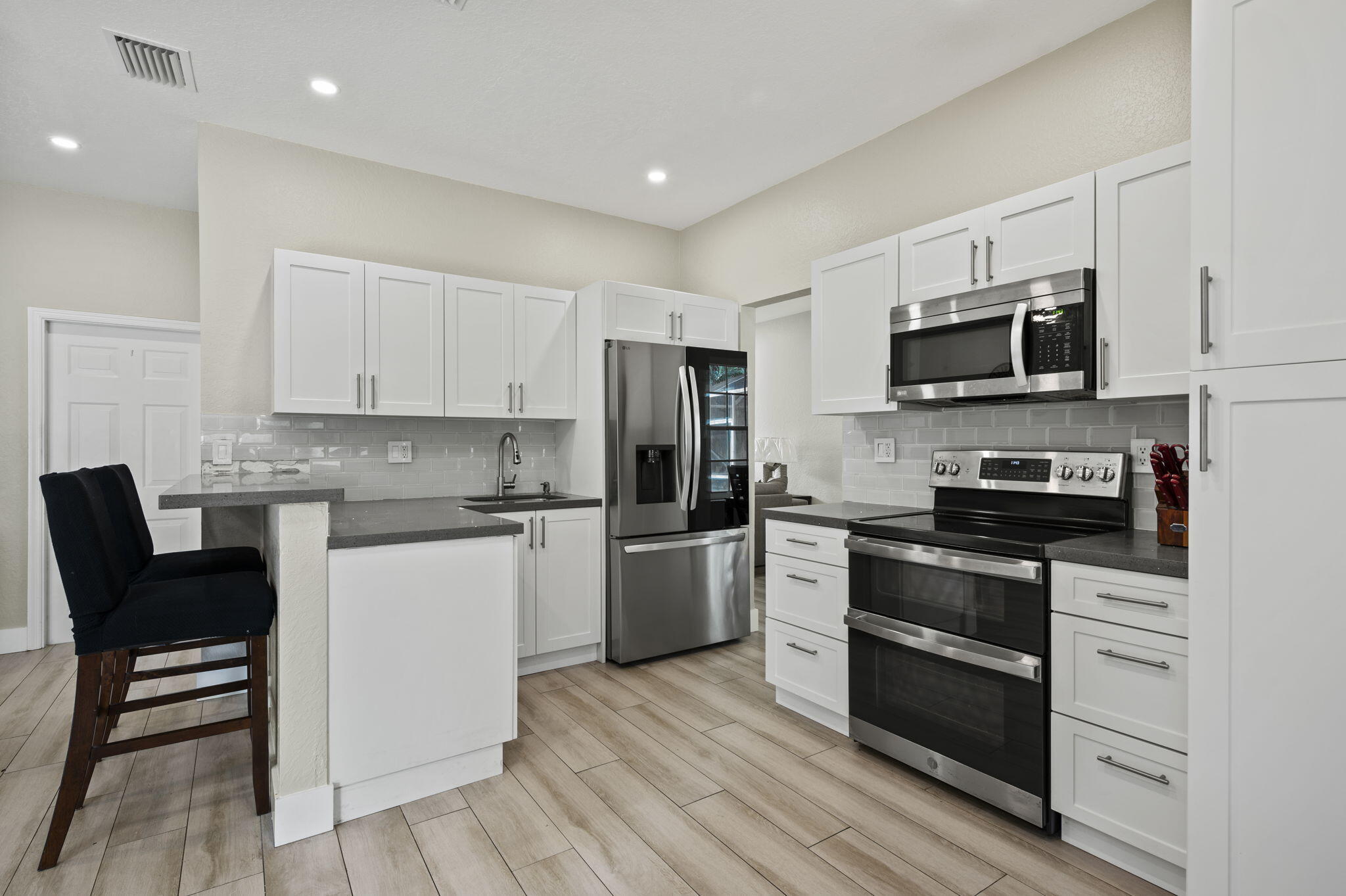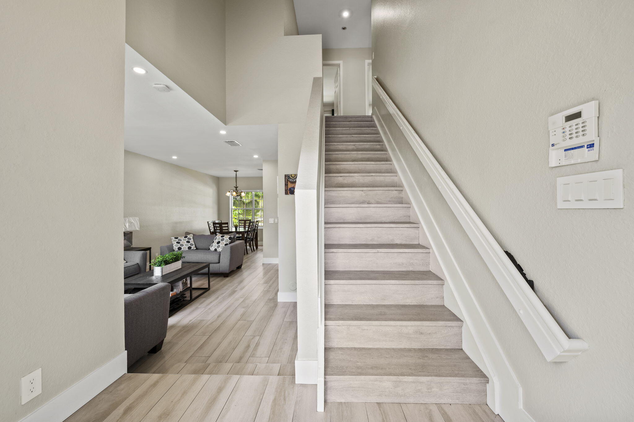Brand new barrel tile roof completed August 2025! As a master general contractor, the owner has meticulously and expertly renovated and upgraded this home with amazing state of the art smart features. This 3 bed 2.1 bath home located on a quiet cut-de-sac features a brand new built in summer kitchen & hurricane impact French Doors leading to your generous open patio and complete accordion shutters on the outside of the home. Inside this property is completely updated and upgraded with smart recessed Lutron LED lighting & a nest thermostat. The first floor features new imported tile floors, and new modern half bath ample kitchen storage and New Fridge. The Main suite feature his & her custom built closets and a beautifully designed his/her double shower with dual multi-jet shower heads!The rest of the 2nd floor features waterproof laminate flooring throughout 2 additional bedrooms with custom built in closets and a second updated bath. HOA fees includes: manned gated security, Landscaping, Cable & internet, ADT security system, access to 2 pools & community fitness center. Don't miss your chance to see this masterpiece located in Regency Lakes.