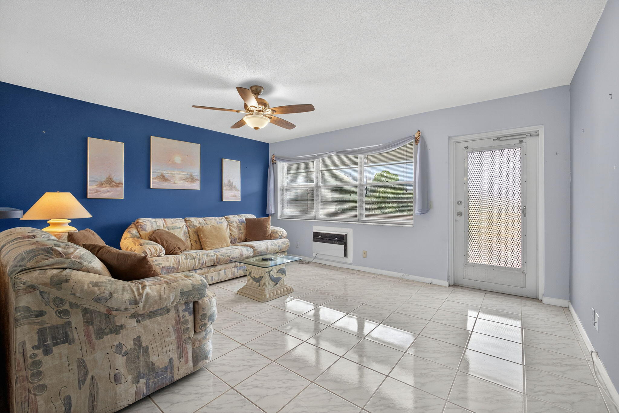 CHARMING,FURNISHED 1 BED/1 BATH CONDO ON 2ND FLOOR FEATURING CERAMIC TILE THROUGHOUT THE LIVING AREA AND A COZY CARPETED BEDROOM. THIS UNIT IS BEAUTIFULLY PAINTED IN SOOTHING LIGHT AND DARK BLUE TONES AND HAS AN UPDATED ALL WHITE KITCHEN AND MODERN BATHROOM WITH STEP IN SHOWER. IT'S WELL TAKEN CARE OF, VERY CLEAN AND INCLUDES HURRICANE SHUTTERS FOR ADDED SAFETY. WELL MANAGED AND FRIENDLY ASSOCIATION.THE ASSOCIATION OFFERS A LOVELY PATIO AREA TO RELAX AND ENJOY THE PEACEFUL SURROUNDINGS. CLOSE TO THE WEST GATE AND THE CAMDEN POOL. VCOME & ENJOY RESORT STYLE LIVING IN THIS GATED COMMUNITY FOR ADULTS 55 +. CLUBHOUSE features a theater, indoor pool, card room, community/party room, billiard room ,shuffle board ,tennis , pickleball ,bocce and two outdoor pools. Numerous heated outdoorpools Separate fitness center with gym , outdoor heated pool and a resistance pool. Two guarded gates and 24 hour roving security patrol. BUSES FOR TRAVELING WITHIN AND WITHOUT THE VILLAGE GREAT LOCATION: Close to shops, restaurants, PBI airport and beaches.roving security patrol.