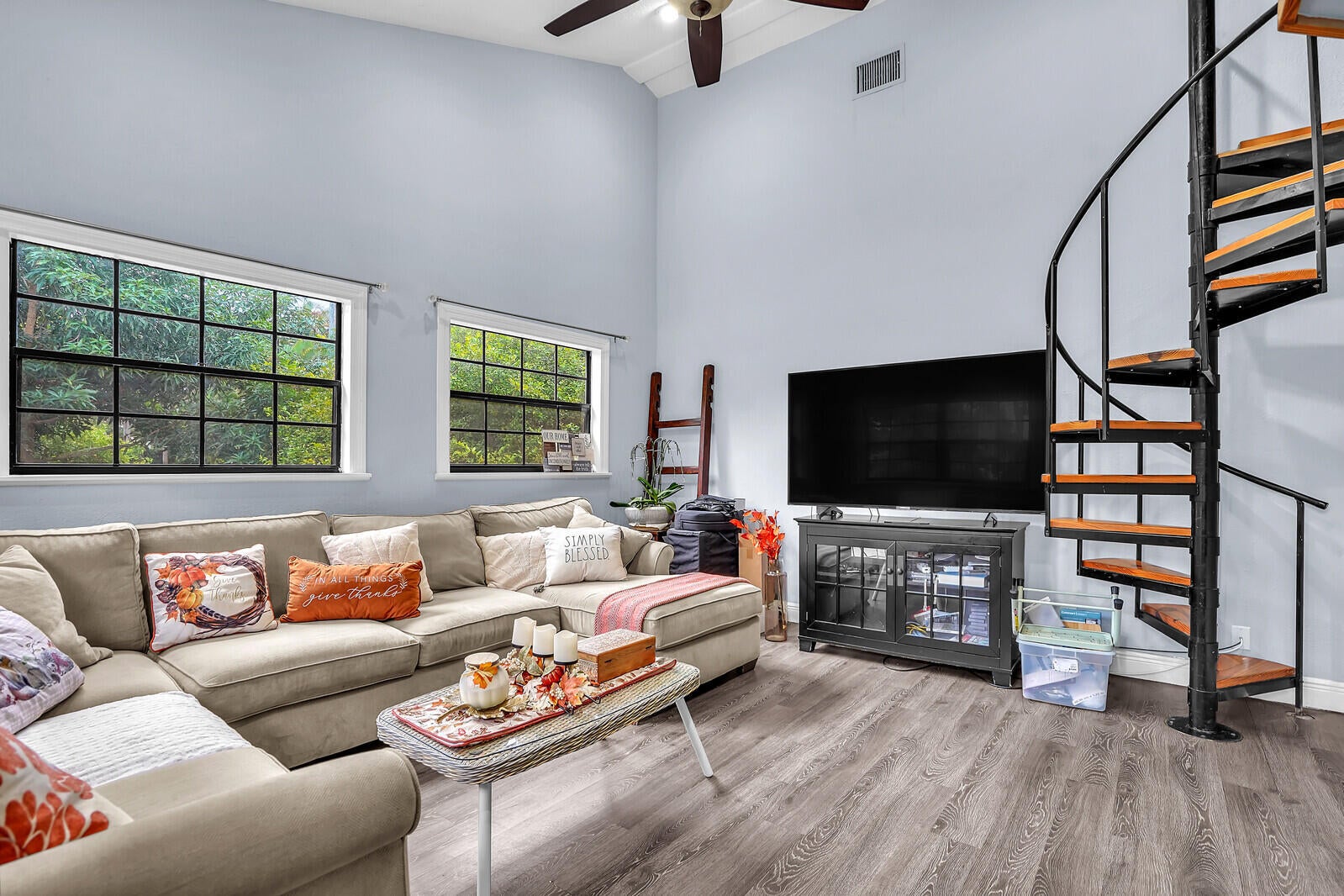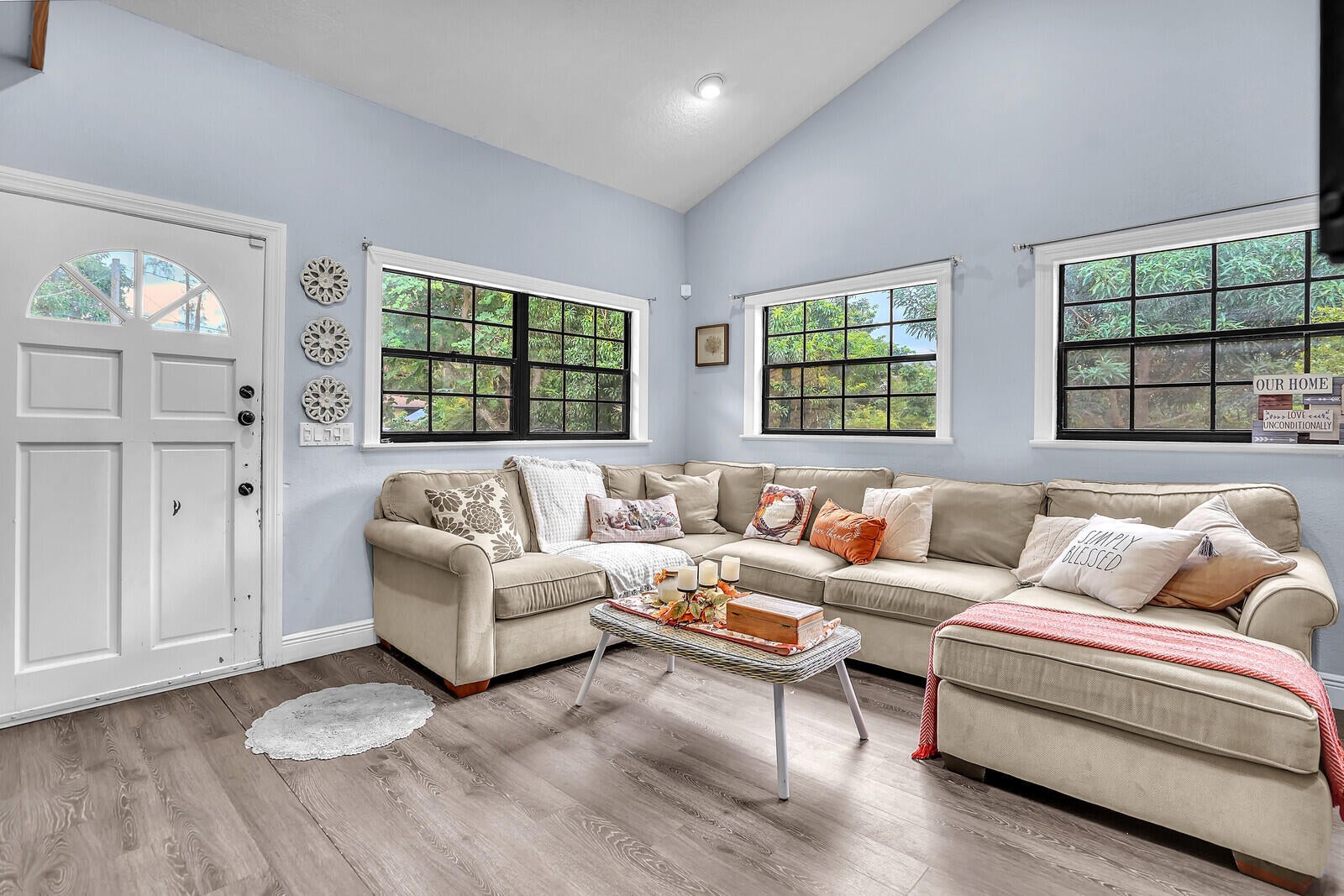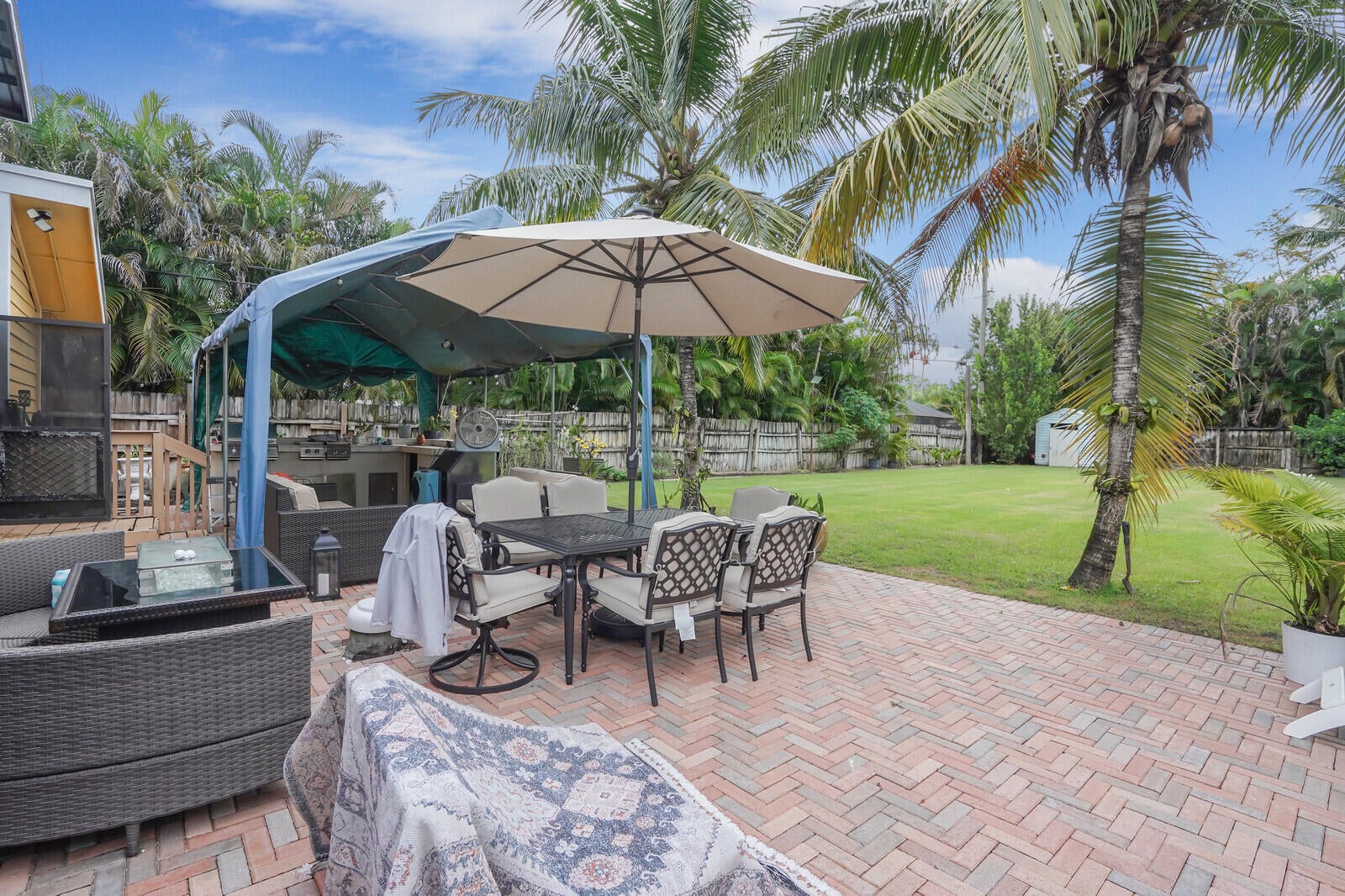 Welcome to your private oasis in the heart of Haverhill. Set on nearly one acre (0.88 acres) of beautifully landscaped land, this charming 3-bedroom, 2-bathroom ranch-style home with a loft combines character, comfort, and upgrades.Enter through the remote-controlled private gate and follow the long winding gravel driveway that leads you through lush landscaping with a variety of fruit trees. The property is fully fenced, features a complete irrigation system with a new well and pump, and includes a 150-gallon propane tank. property highlights electrical panel, installed just a few months ago. water heating tankless.Enjoy the wraparound porch and large screened-in patio, the perfect spots for morning coffee or relaxing evenings, complete with a new outdoor kitchen find 1,373 sq ft of living space, oversized windows, and a bright, open atmosphere. The spiral staircase to the loft and wood-beamed ceilings in the dining area add charm and architectural character. The kitchen showcases wood cabinetry, tile countertops, and stainless-steel appliances. Both bathrooms have been beautifully remodeled with high-end tile work and dark wood vanities. Recent upgrades include a brand-new 35-year architectural shingle roof and a new A/C system installed within the last two years. Outside, there's plenty of room to add a pool, park an RV, boat, or other equipment, offering limitless potential. Located just a 5-minute walk from Haverhill Park and only 15 minutes from Palm Beach International Airport or Downtown West Palm Beach, this home provides the perfect balance between peaceful privacy and convenient access to city life. The property includes a new irrigation system with a brand-new well and pump, a 150-gallon propane tank, and plenty of room to add a pool, park an RV or a boat, and store all your toys. This home offers both serenity and convenience in one of the most desirable hidden corners of Palm Beach County.