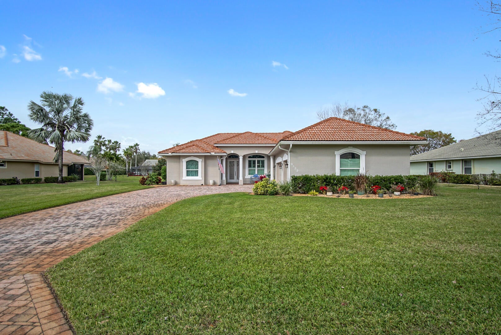 Fantastic 4/3/3 pool home located on an estate lot. Beautifully upgraded and meticulously maintained this home will not disappoint. Spacious living area with both a family room and formal living area. The custom kitchen has stainless steel appliances a large island and beautiful granite countertops. Two of the guest bedrooms are ensuite perfect for guests. Screened in saltwater, heated pool with covered Lani and cabana bathroom, a perfect place for entertaining. Expansive 3 car garage with epoxy floor. Impact windows with plantation shutters throughout. The home overlooks a canal for extra privacy. This home has many upgrades and is a must see. Come enjoy country club living in the beautiful Meadowood community.