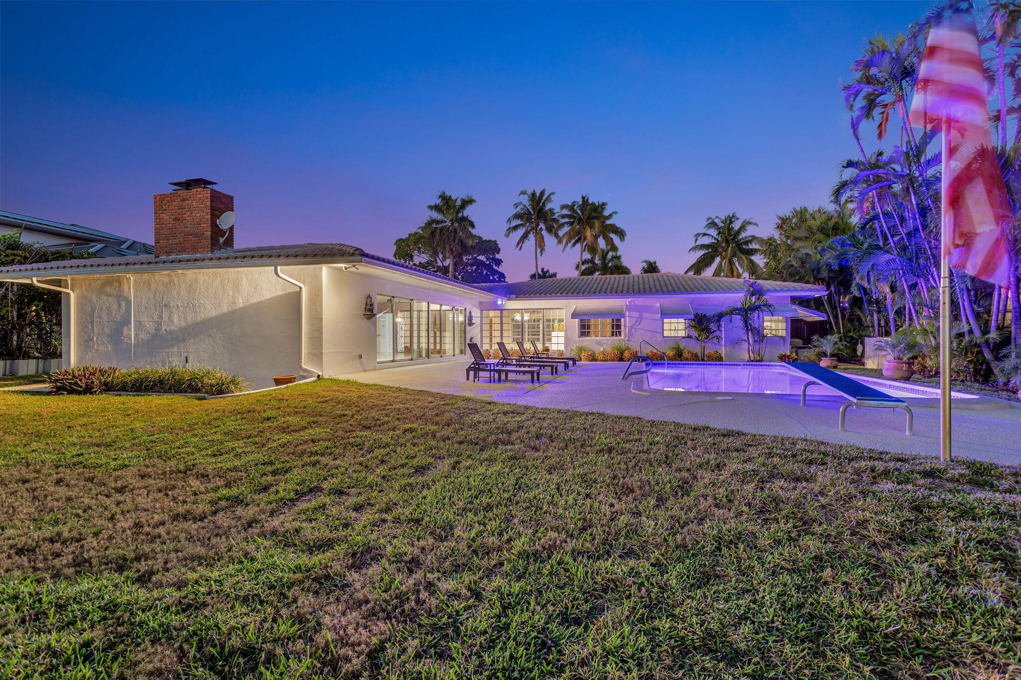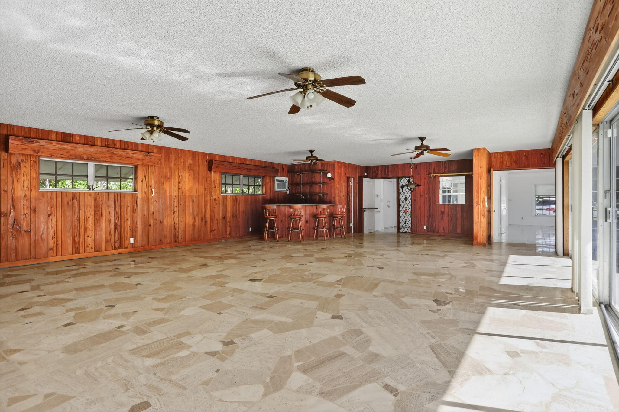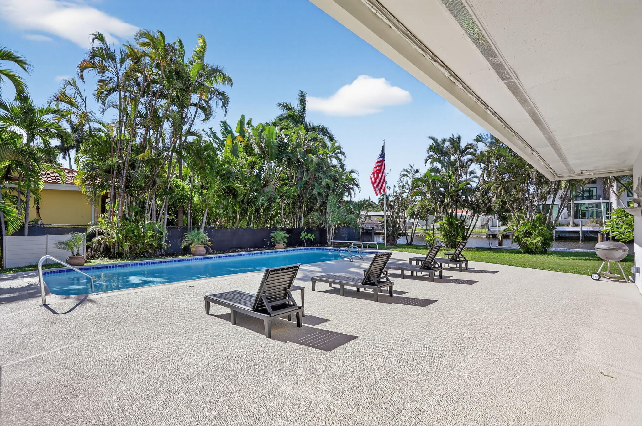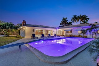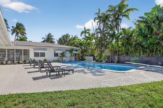 Welcome to this stunning waterfront residence on coveted Middle River Drive in Fort Lauderdale's prestigious Coral Ridge neighborhood. Perfectly positioned with 89 feet of water frontage and one fixed bridge, this home offers direct access to the Intracoastal and the ocean. Everyday conveniences are just minutes away, to the north there is the Coral Ridge Mall, Target, and Coral Ridge Country Club; To the west there is Whole Foods, Trader Joe's, Fresh Market, Publix, Orange Theory, and much more; To the south there is Bayview Elementary, the Galleria Mall, and the dining and entertainment of Las Olas Boulevard in downtown Fort Lauderdale.Set on an expansive 15,000+ square foot lot, the backyard was designed for true Florida living.A pool grandfathered at an impressive nine feet deep and featuring a rare diving board. There is ample space to lounge in the sun, or even add a pergola for shade, or even create a full outdoor kitchen if you wish. An outdoor shower adds to the resort-style feel, making this the perfect setting for entertaining family and friends or simply enjoying the tranquil Middle River views. Inside, the home offers more than 3,000 square feet of flexible living space with four bedrooms and two and a half baths. The grand room features original cypress pecky wood, a wet bar with mini-fridge, and seamless indoor-outdoor flow with floor to ceiling sliding glass doors, ideal for gatherings or casual parties. Beautifully maintained travertine flooring, polished ceramic tile, and new carpet in the bedrooms makes this move in ready home desirable in Coral Ridge. The spacious kitchen offers abundant storage and counter space with a timeless white-and-black palette. The split floor plan allows privacy for the primary suite, which includes a cedar-lined walk-in closet, a charming office or study with rare pecky cypress walls, and an en-suite bath with preserved mid-century tile freshly updated in crisp white. Additional highlights include a formal dining and living area overlooking the pool and Middle River, a half bath conveniently located for guests, a laundry room, and a two-and-a-half car garage perfect for a golf cart, Moke vehicle, or extra storage. The large driveway offers parking for multiple vehicles, making it ideal for entertaining. Whether you're searching for a move-in-ready home rich with original Florida character or a prime lot to design your dream waterfront estate, this property presents a rare opportunity in one of Fort Lauderdale's most desirable neighborhoods.