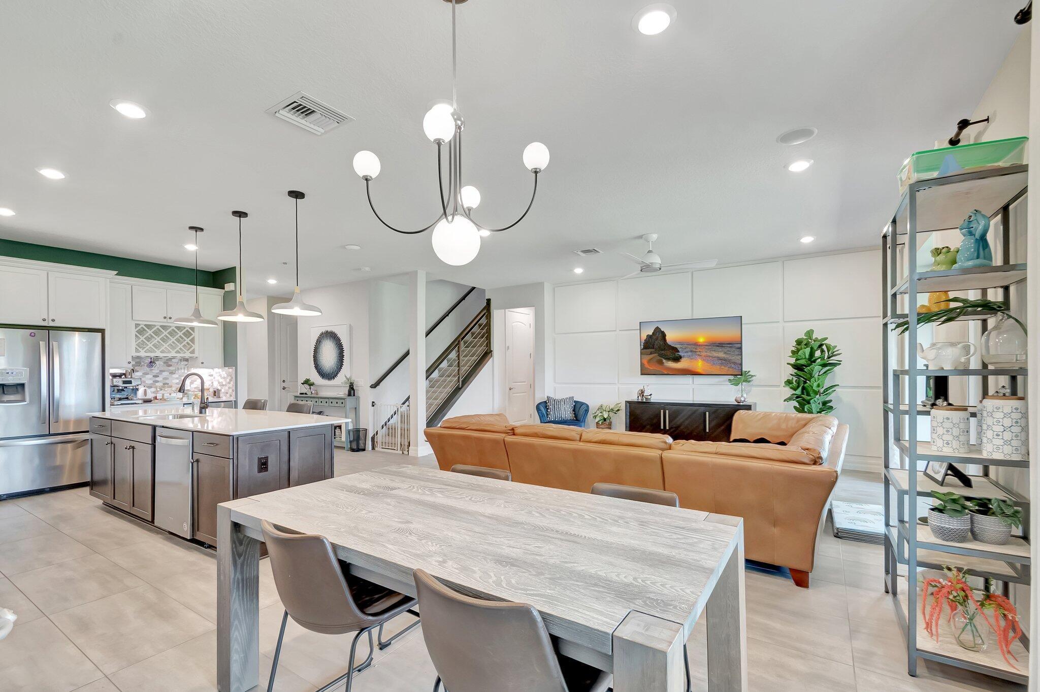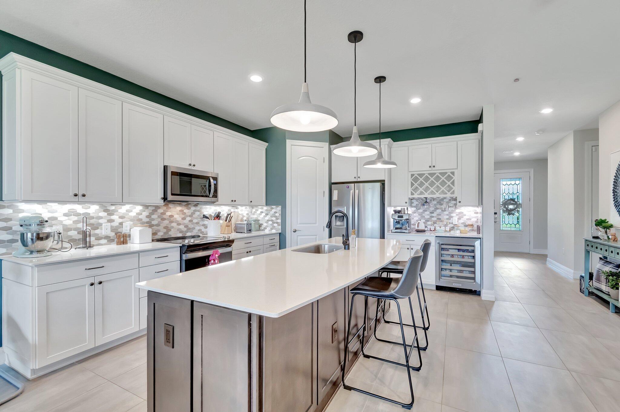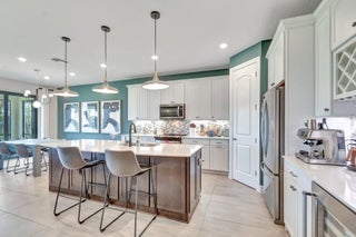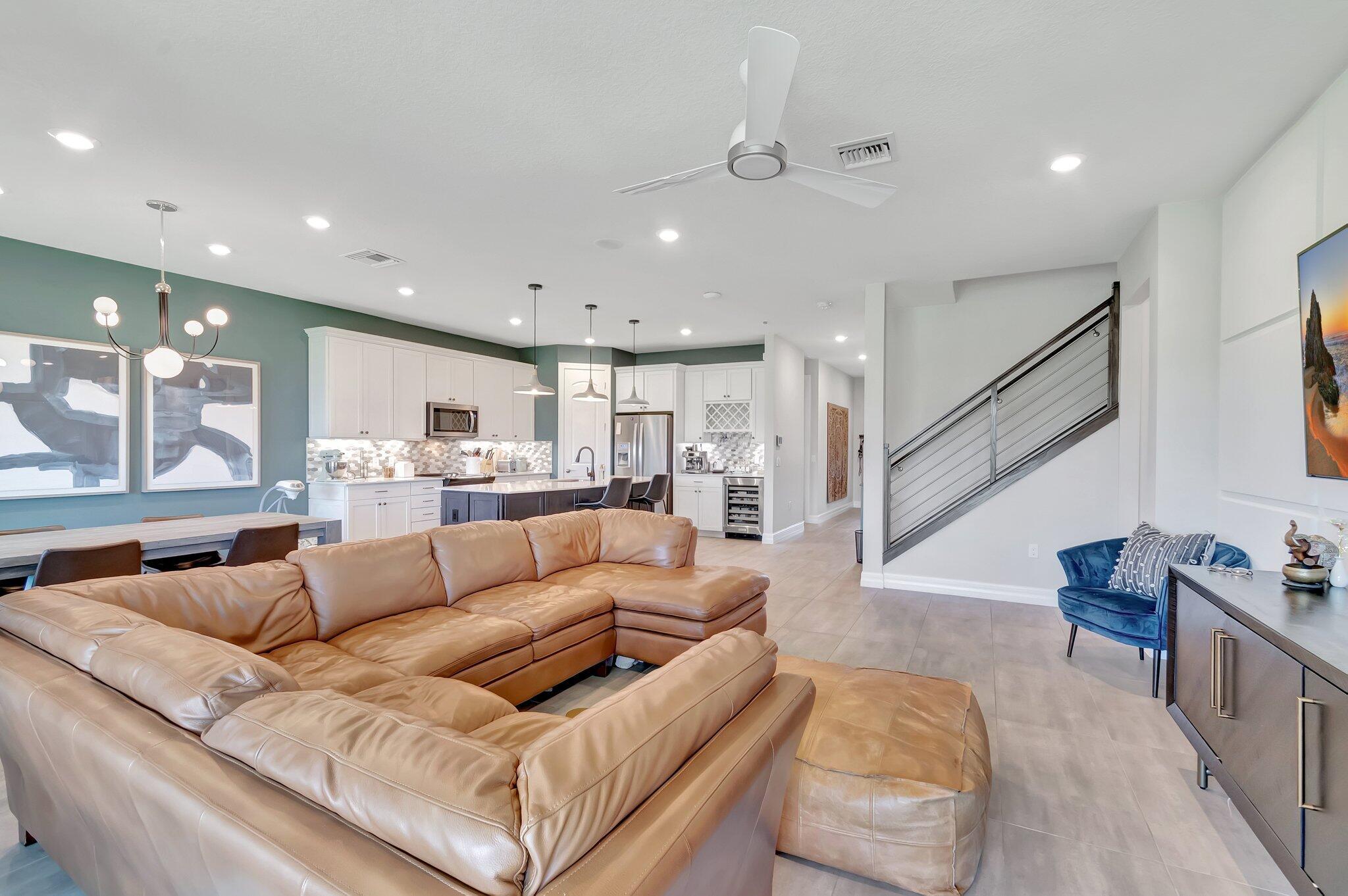 Former Citrus Grove Model Home! Bought directly from the developer, this upgraded 2019 model offers 5 bedrooms, 3 bathrooms, a spacious upstairs den, and countless high-end features. Enjoy low insurance and low HOA! Designer upgrades include custom feature walls, built-ins, wine fridge, shiplap ceilings, upgraded stair railings, and premium lighting throughout. The oversized kitchen features quartz countertops, backsplash, and a massive island. The main floor offers two bedrooms, a full laundry room, and a two-car garage. Upstairs includes three additional bedrooms and a large den, ideal for an office or playroom. Relax on the screened-in patio with lake views and a fenced yard.Located in The Fields, a resort-style community with two clubhouses, pools, tennis and pickleball courts, fitness center, playground, and basketball court. Close to top-rated schools, WEF, Wellington Mall, Turnpike, and great dining. Don't miss this chance to own a professionally designed model home in one of Palm Beach County's most desirable neighborhoods!