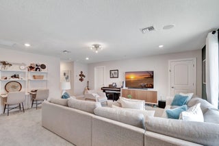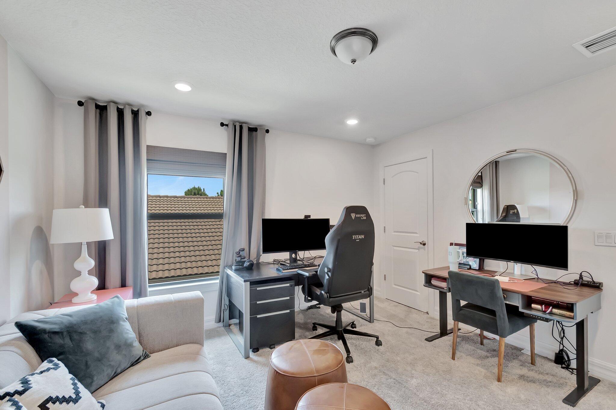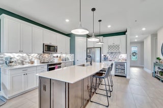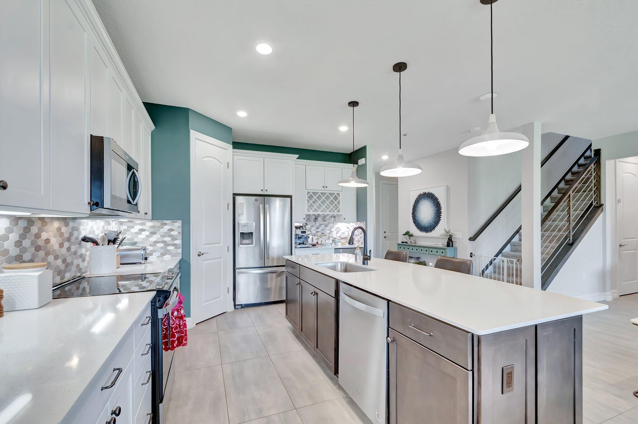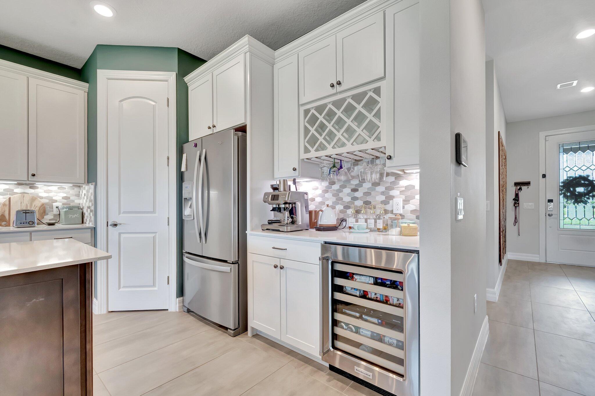 Former Citrus Grove Model Home! Bought directly from the developer, this upgraded 2019 model offers 5 bedrooms, 3 bathrooms, a spacious upstairs den, and countless high-end features. Enjoy low insurance and low HOA! Designer upgrades include custom feature walls, built-ins, wine fridge, shiplap ceilings, upgraded stair railings, and premium lighting throughout. The oversized kitchen features quartz countertops, backsplash, and a massive island. The main floor offers two bedrooms, a full laundry room, and a two-car garage. Upstairs includes three additional bedrooms and a large den, ideal for an office or playroom. Relax on the screened-in patio with lake views and a fenced yard.Located in The Fields, a resort-style community with two clubhouses, pools, tennis and pickleball courts, fitness center, playground, and basketball court. Close to top-rated schools, WEF, Wellington Mall, Turnpike, and great dining. Don't miss this chance to own a professionally designed model home in one of Palm Beach County's most desirable neighborhoods!