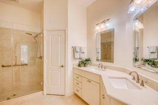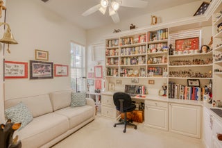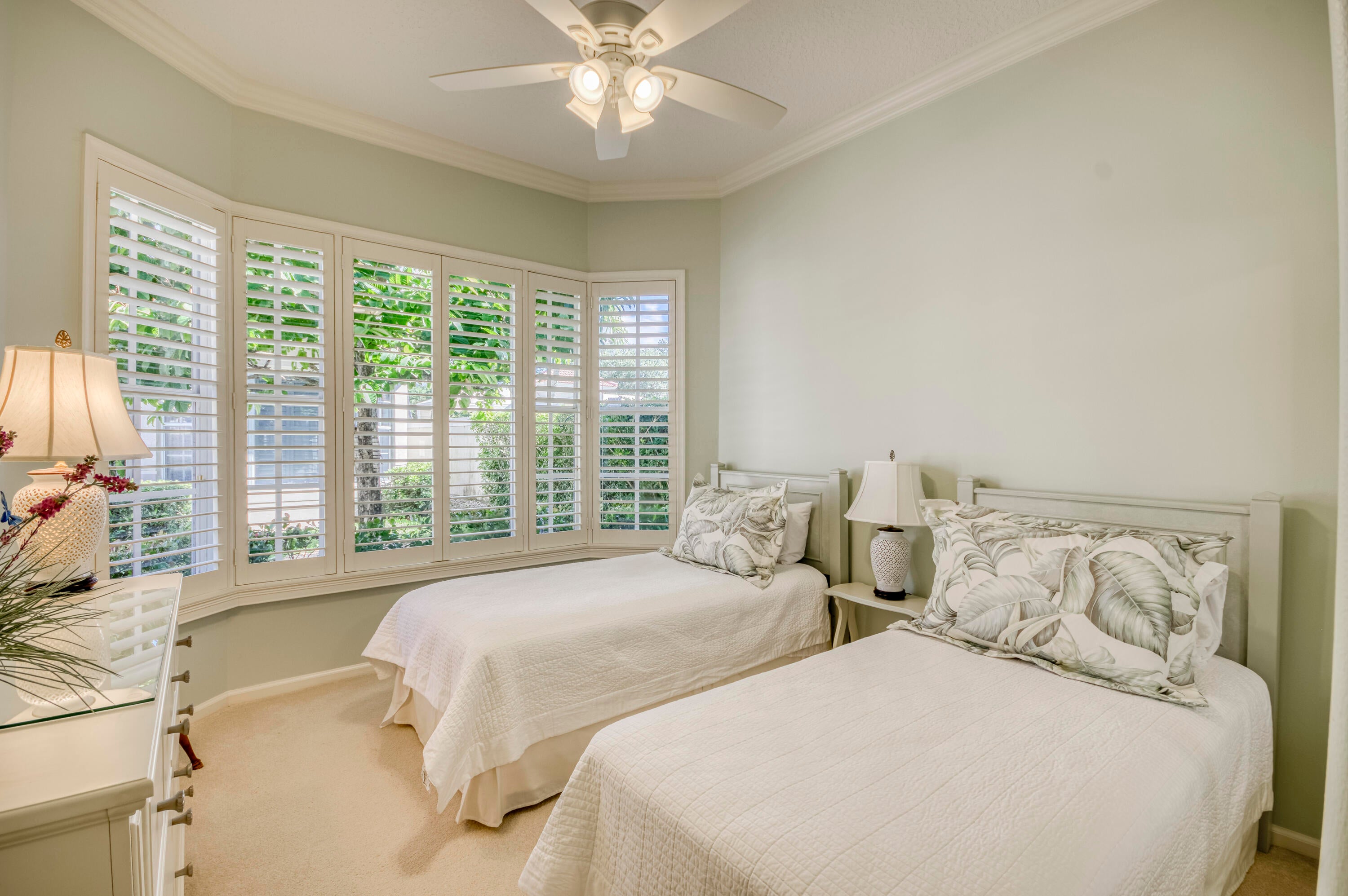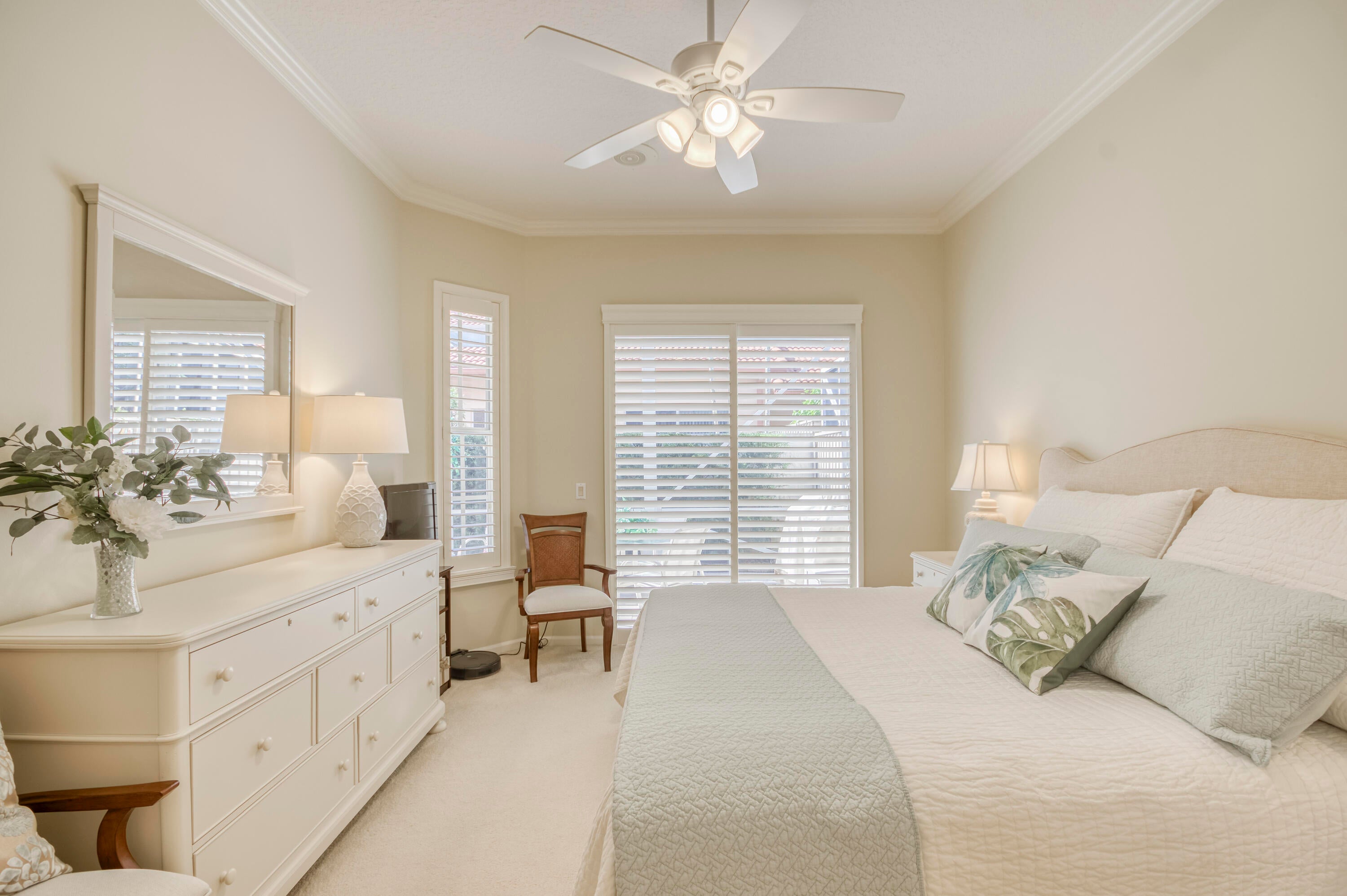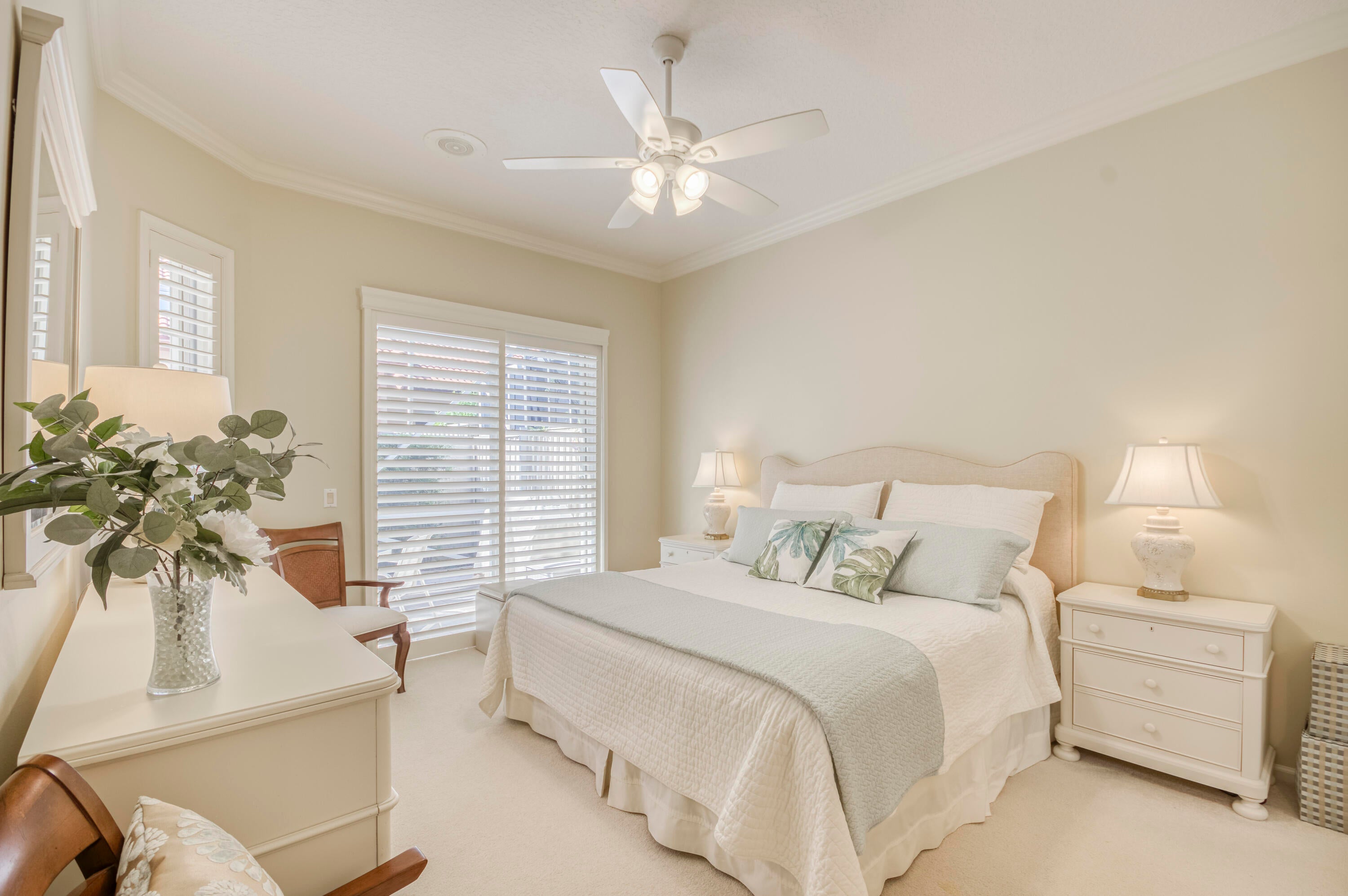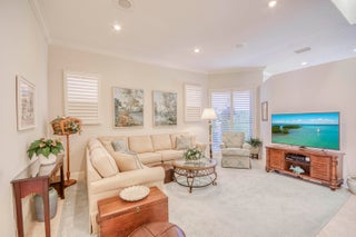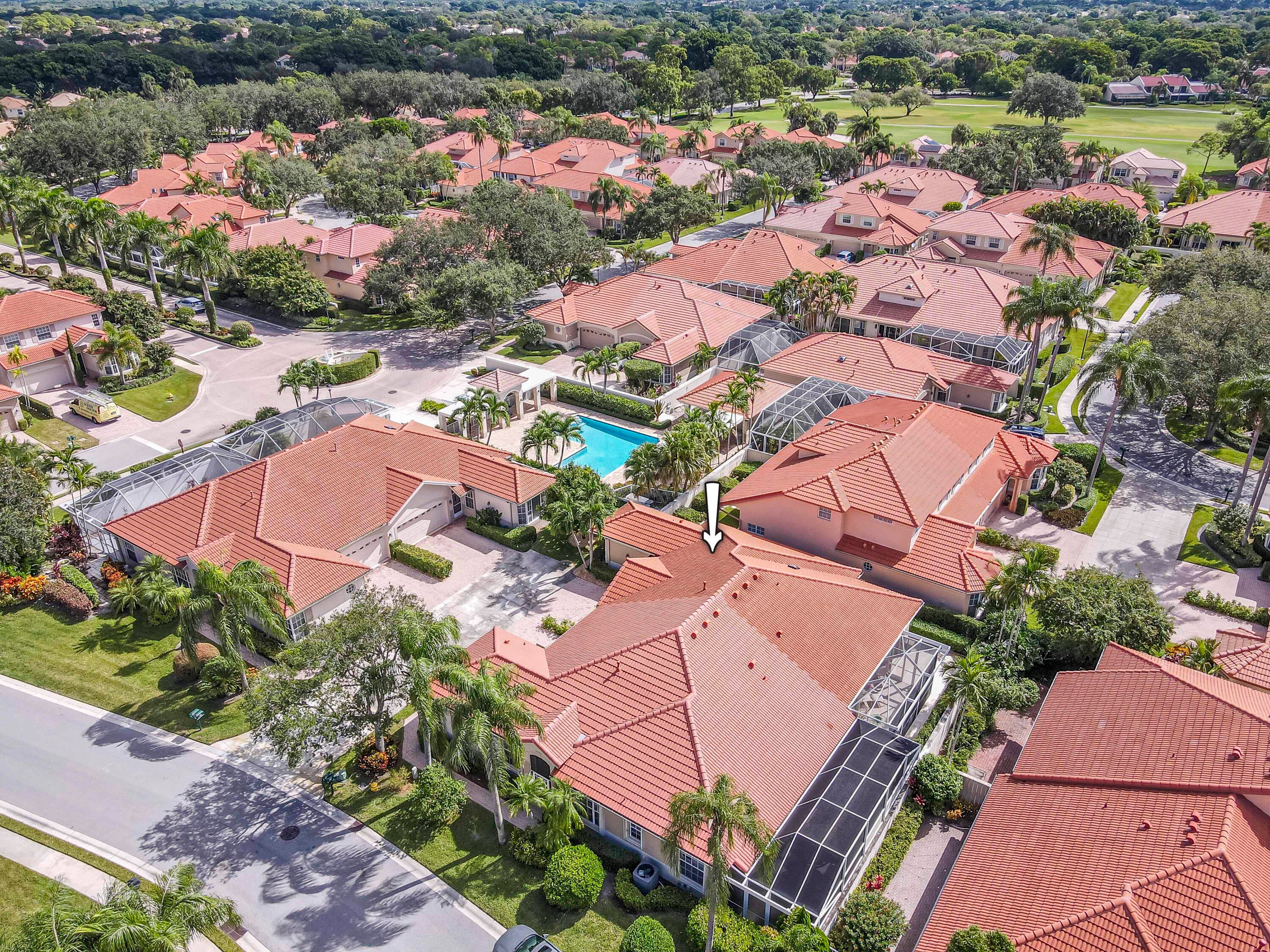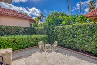 This bright and airy one-story CBS townhouse offers 3 bedrooms and 2 bathrooms within 1,620 sq ft of living space in the desirable Monterey Pointe subdivision of PGA National, Palm Beach Gardens. A soft neutral palette and light stone-look tile flow throughout the home, creating a welcoming and seamless ambiance. The spacious living room provides ample seating and entertainment space, enhanced by three plantation-shuttered windows and recessed lighting. Adjacent, the cozy dining room is bathed in natural light from a large skylight, ideal for intimate dinners or gatherings. The kitchen features ivory wood cabinetry with coordinating granite countertops and backsplash, a stainless-steel appliance package including a gas range, and an island snack bar with additional seating.Across from the kitchen, versatile upper and lower cabinets and a desk nook can function as a home office or coffee bar. The den offers flexibility as an office or guest room, highlighted by plush carpeting, three windows, and a large custom built-in desk/wall unit in an ivory satin finish. The primary suite serves as a serene retreat with direct access to the screened lanai, a spacious walk-in closet, and a large en-suite bathroom with dual vanities topped in ecru-toned quartz, a glass-enclosed shower, private water closet, and linen closet. Guest bedrooms are bright and tranquil, including one overlooking the front garden through a shuttered bay window. Outdoor living is enhanced by a screened lanai accessible from the kitchen and primary bedroom, complete with a roll-out awning for shade, as well as an open patio enclosed by lush hedges, perfect for dining or entertaining. Additional features include a roof replaced in 2022, A/C replaced in 2022 with a bi-yearly maintenance contract, hot water heater replaced in 2024, washer/dryer replaced in 2023, kitchen appliances replaced in 2021, a whole-house Halo air filter, and a whole-house water filtration/softener system.