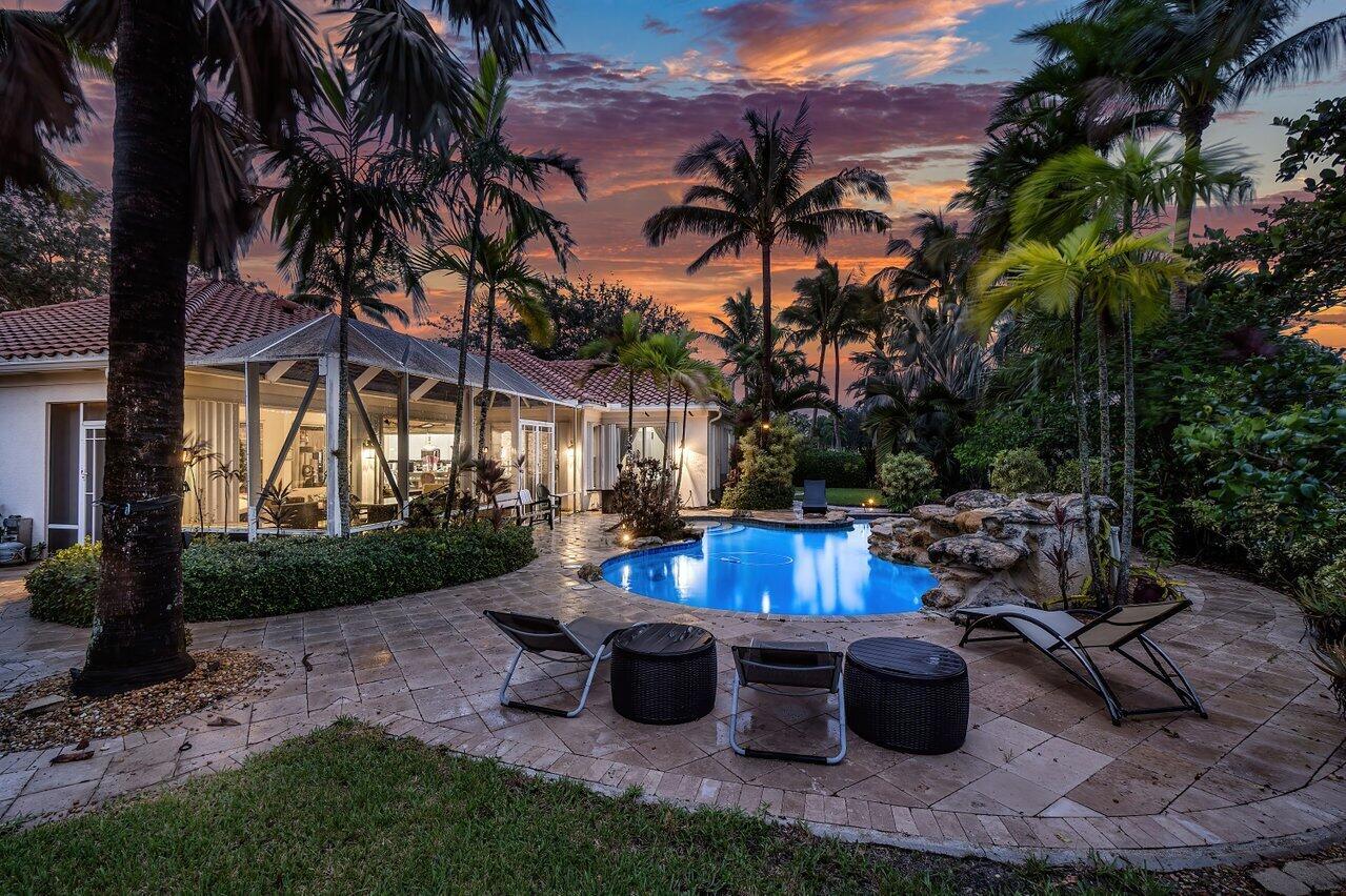 ONE OF A KIND LOT AND LAYOUT IN RIVERWALK! BRAND NEW ROOF - CUSTOM LUXURIOUS SINGLE STORY POOL HOME LOCATED ON PRIVATE CUL DE SAC! This sought after Windsor model has been kept up well by its owners with key systems renovated for its new owners! Some special features include but are not limited to: Brand new roof, newer AC, newer water heater, accordion shutters throughout, updated landscaping with exotic palms, travertine and hardwood floors, crown molding, onyx ledger accent wall, granite tops in kitchen and baths, custom hardwood bookcase built-ins, custom screened in salt water resort style pool with hot tub! This is a must see!