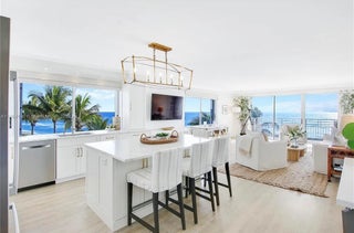 Welcome to your ocean front paradise at 350 Beach Rd. #401, an exquisite corner unit nestled in a boutique-style building with only 20 exclusive residences. This stunning condominium offers the perfect blend of coastal elegance and modern comfort, making it an ideal seasonal retreat for those seeking the ultimate Florida lifestyle. As you step inside this beautifully appointed unit, you are immediately greeted by panoramic, unobstructed ocean views that are nothing short of breathtaking. The expansive windows flood the living space with natural light, creating a warm and inviting atmosphere that is a true calming experience. Whether you're enjoying a quiet morning coffee or hosting friends for sunset cocktails, the sights and sounds of the ocean will be your constant companion.This thoughtfully designed residence features two spacious bedrooms with a versatile third room which can be used as an extra overflow bedroom or an office. Complete with a cozy pull-out sofa, this room provides the perfect space for guests or an ideal spot to catch up on work while surrounded by the serene sounds of the sea. The gourmet kitchen boasts high-end appliances, Quartz countertops, and ample cabinetry, making it a chef's dream. Enjoy meals in the dining area or on the spacious terrace, where you can take in the breathtaking views. Your private balcony offers the perfect escape for afternoon reading or simply soaking in the ocean breeze. As a corner unit, you'll relish the extra privacy and sweeping views that few properties can offer. The pool area is a true gem, protected from the ocean winds and surrounded by an abundance of loungers and shaded seating. Located just steps from the pristine sands of Jupiter Beach, this residence is ideally situated for those looking to embrace everything Jupiter has to offer. Enjoy morning walks along the shore or indulging in water sports like paddle boarding and kayaking right off the beach or in the intercoastal across the street. Fishing off the beach is an option as well! Nearby, you'll find a plethora of dining options, boutique shopping, and recreational activities, ensuring that your seasonal stay is filled with adventure and delight. Don't miss your chance to experience coastal living at its finest. Schedule a viewing today. Annual at $8000 Seasonally (December-April at $12,500) and Off-Season (May-November at $8,500).