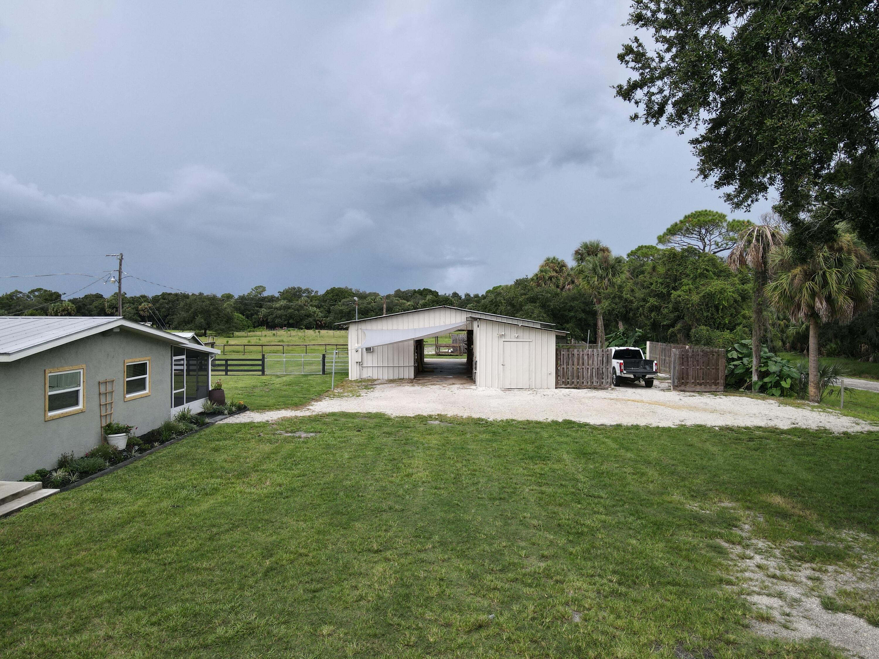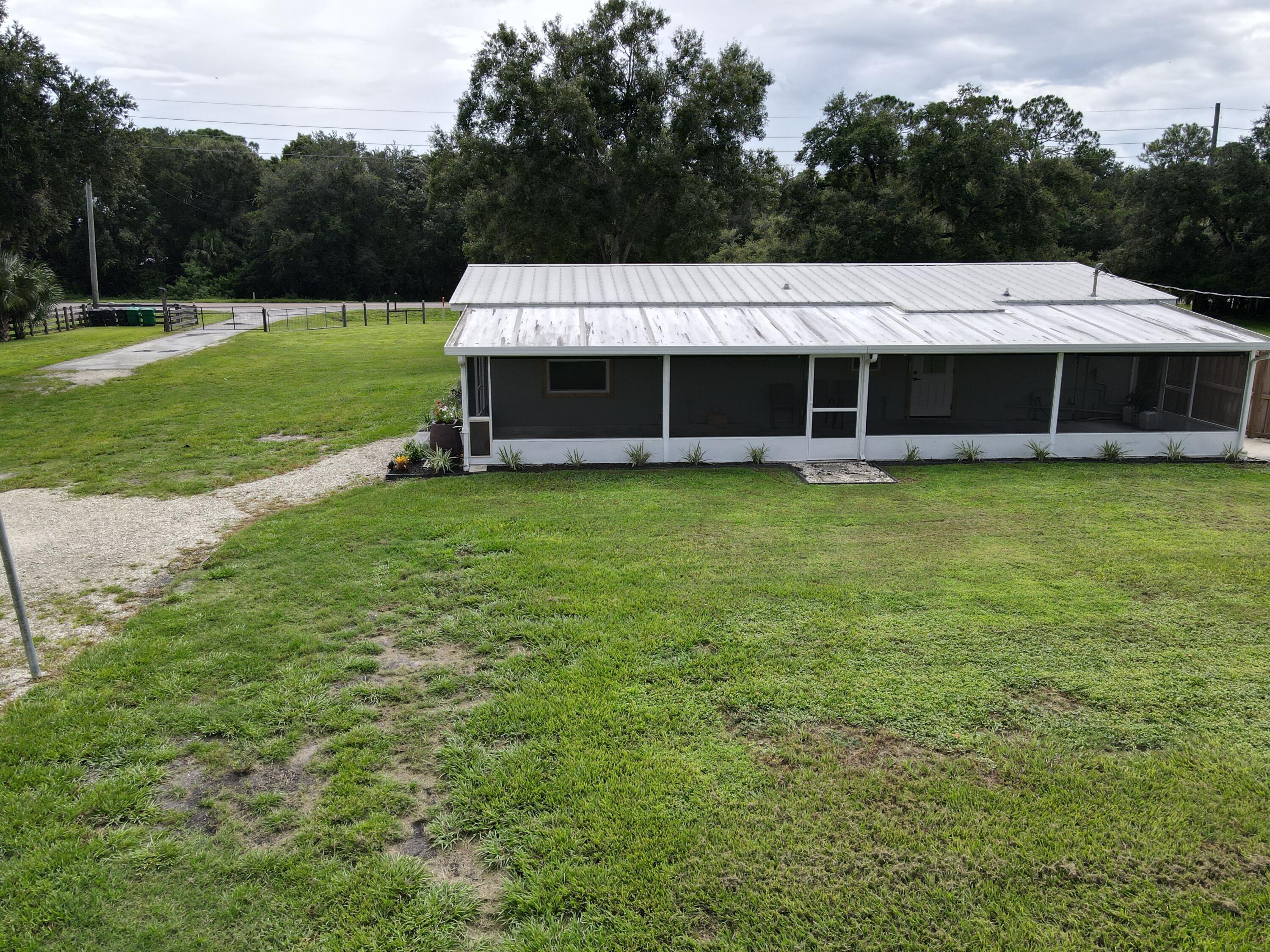 MOTIVATED SELLER, OPEN HOUSE 11-9-25 FROM 1 TO 4PM. EASTERN OKEECHOBEE COUNTY! 3 bed 2 bath home on 4 acres. Perfect for commuting to Palm Beach, Saint Lucie or Martin county. This property offers 4 acres of agricultural zoned land, perfect for your mini farm. It's fenced and cross fenced with good grass and a pond. Also, there's plenty of native wildlife to be seen from the ranch next door. The large barn has power and water, room for multiple stalls, has a tack room, work shop area and a meat processing room with a walk-in cooler. There's also a chicken condo and raised garden beds for your self reliant food source. The home offers many upgrades such as a metal roof, impact windows, new doors, new paint, new flooring and butcher block countertops.Enjoy the evenings on the back screened porch or take a dip in the 18x33ft above ground pool, complete with a large deck. Come live the lifestyle in this country paradise.