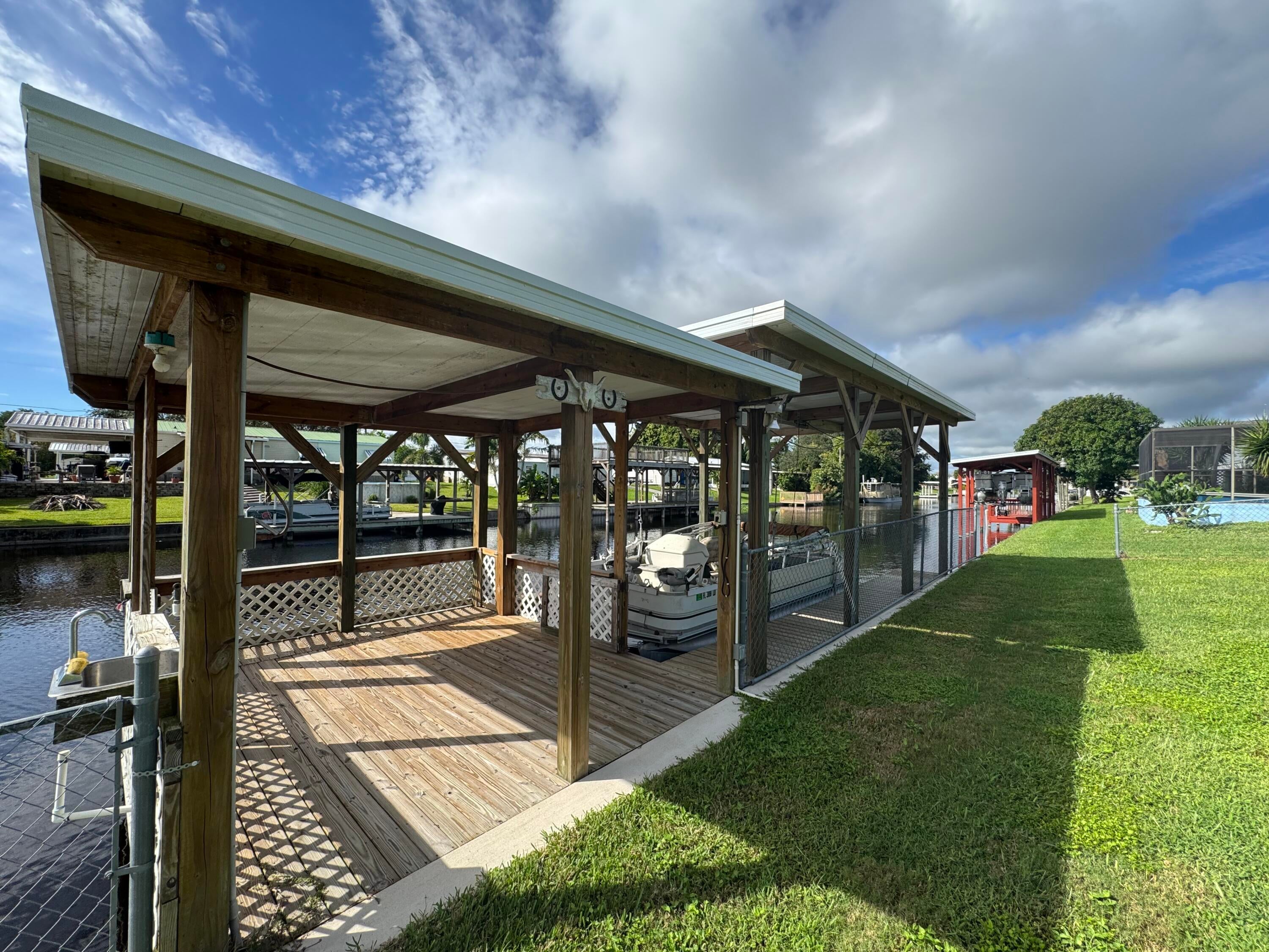 Taylor Creek Isles -Lake Access Well maintained 3-bedroom, 2-bath CBS home offering 1,672 sq. ft. of living area and a total of 2,882 sq. ft. under roof. This spacious home features a 34x12 family room overlooking the water, perfect for entertaining or relaxing with a view. Enjoy cozy evenings by the fireplace and the convenience of direct lake access from your own private dock with lift and pontoon boat included. Plenty of room for all your toys with covered parking for your boat, carport, and a concrete block shed/workshop. Located in one of Okeechobee's most desirable waterfront communities with quick access to Lake Okeechobee. CBS construction, metal roof, accordion hurricane shutters and a well-maintained interior and exterior make this home truly move-in ready.measurements are approximate.