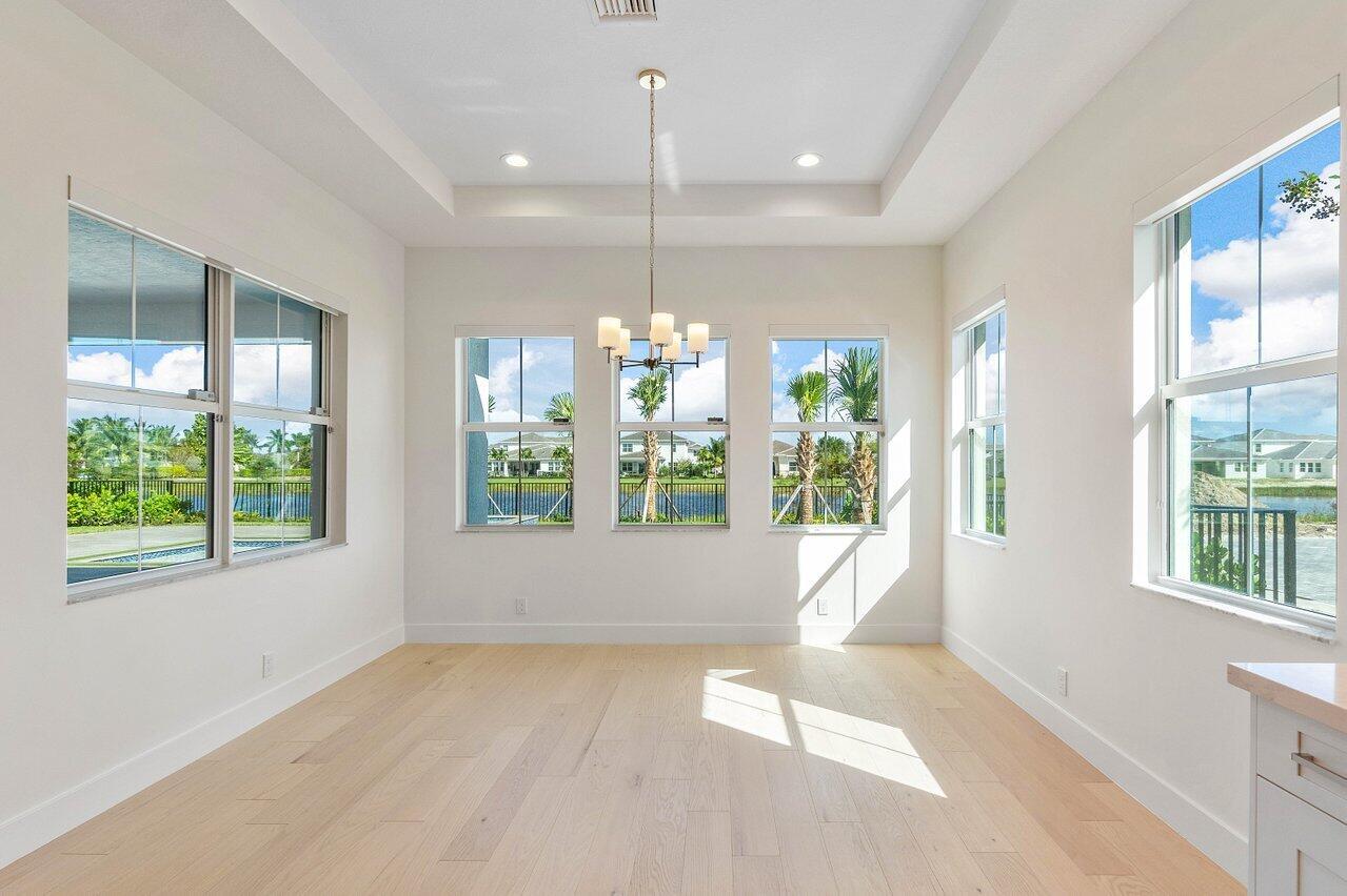 Breathtaking lakefront Toll Brothers home in the private gated community Watermark at Avenir! This 4 bedroom + an office 3.5 bath home features over 500k in upgrades! The large open floor plan with loads of natural light opens up to your private backyard oasis with an expansive backyard and custom heated pool and spa. The office as well as the huge master bedroom are on the first floor with a luxury bathroom featuring frameless glass shower with rainfall features and elegant free-standing tub and oversized walk-in closets. Gourmet kitchen features a large center island with breakfast bar, SS appliances, natural gas for cooking, plenty of counter and cabinet space and huge pantry. EV charger outlet in the 3 car garage. Impact windows throughout.Avenir's expansive 16,000 sq. ft. Clubhouse offers; Event Hall, Clubroom, Fitness Center with Gym-Aerobics Areas, Kid's room, 2 Offices, Commercial Kitchen, Resort-style heated Pool with Waterfalls, Expansive Pool Deck with Seating Areas, 8-Person Spa, Poolside, Cabanas and Pavilions, Kid's Zone / Splash pad, 2-Lane Lap Pool, 8 Tennis Courts, 6 Pickle Ball Courts, 2 Tot Lots, Fire Pit & Seating Area, 2 Event Lawns, and a town center being developed.