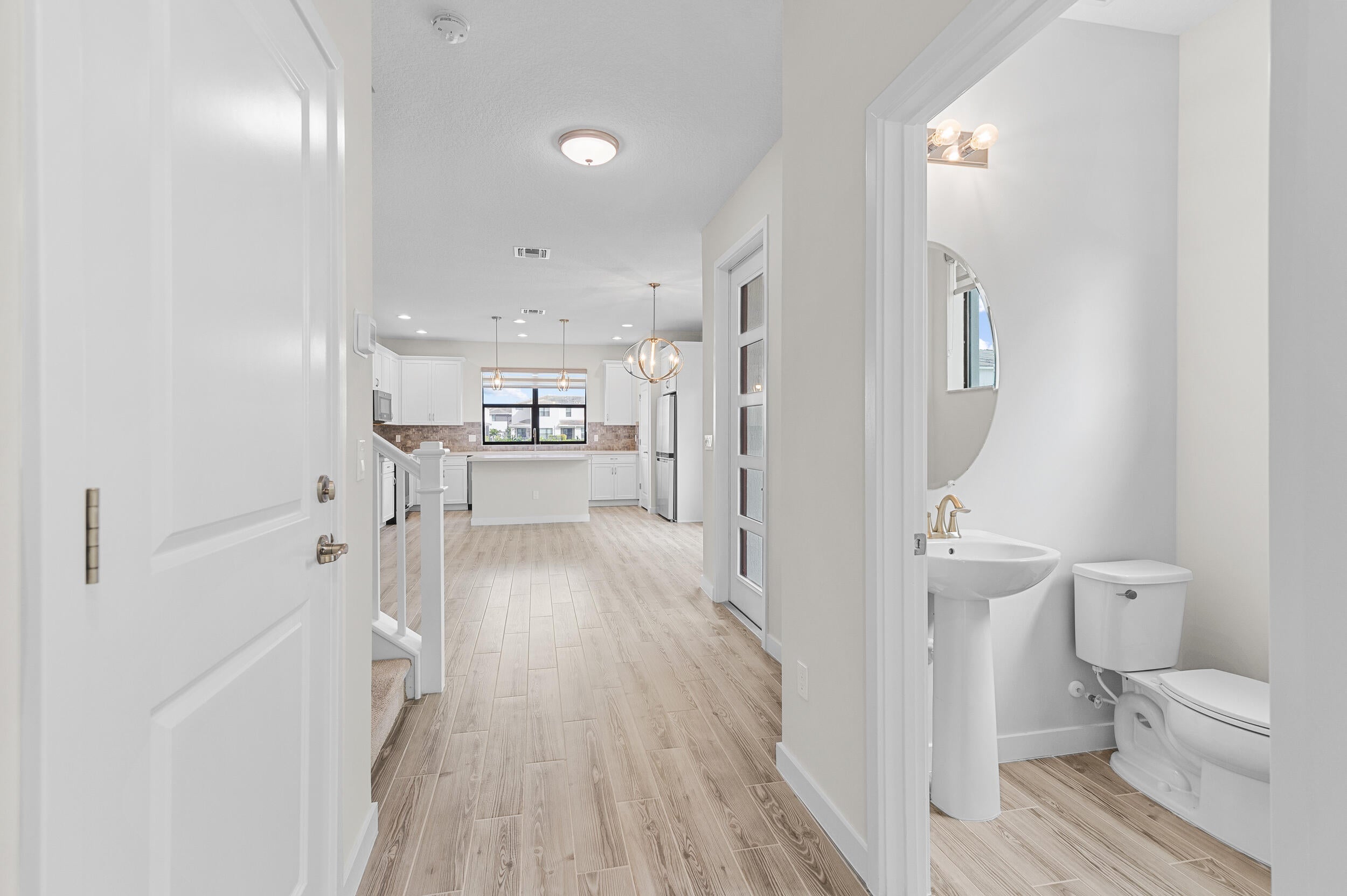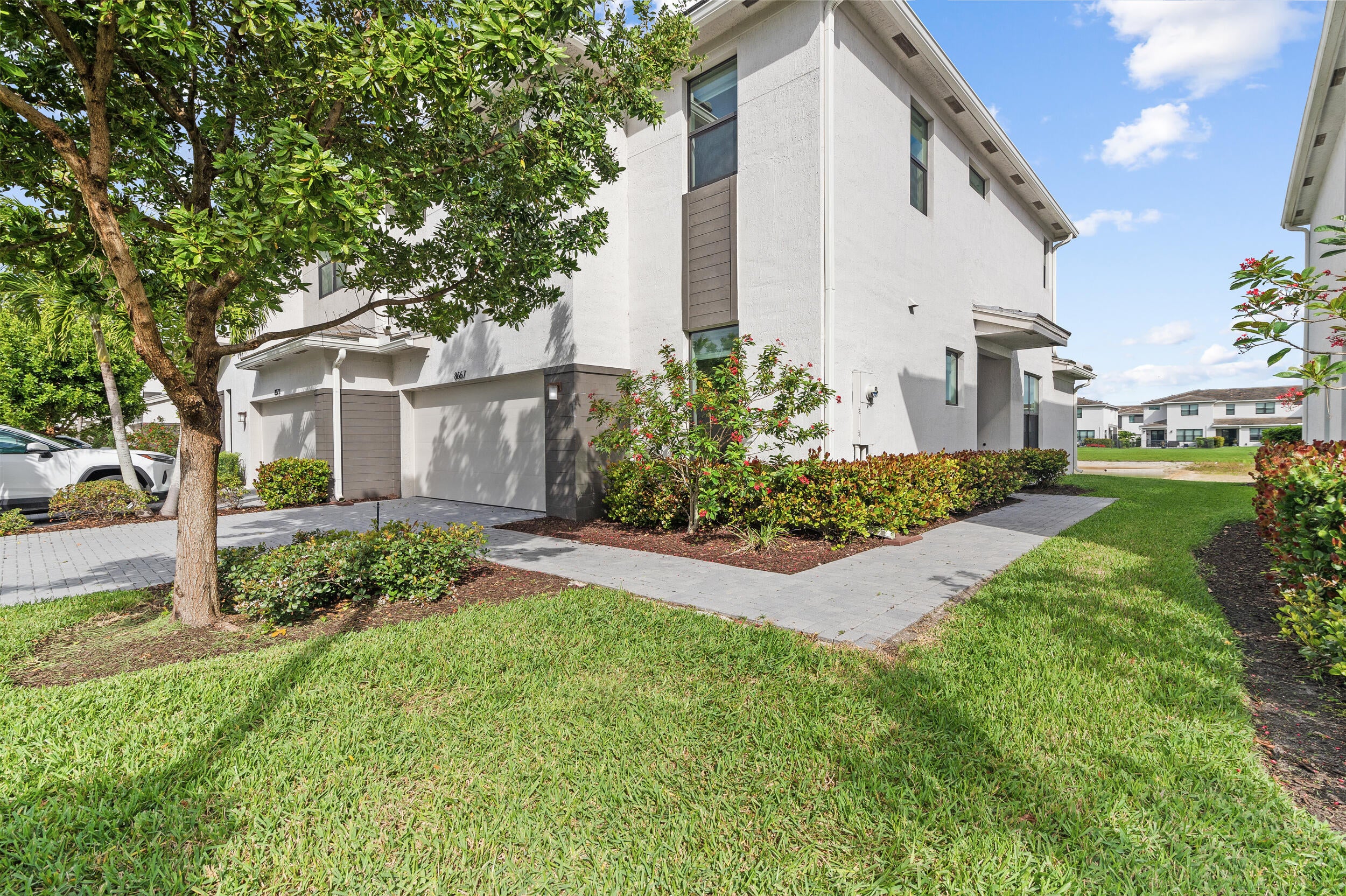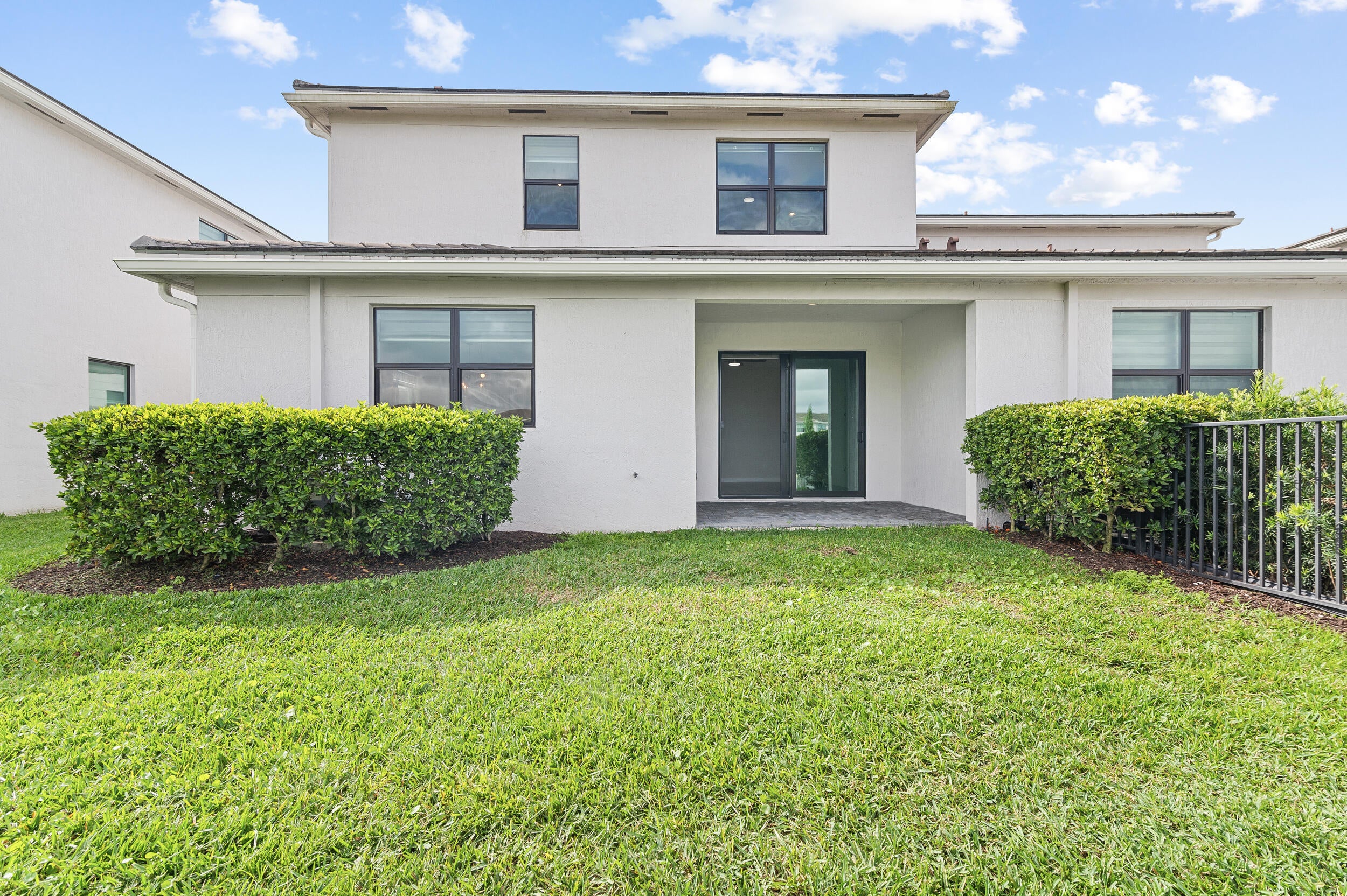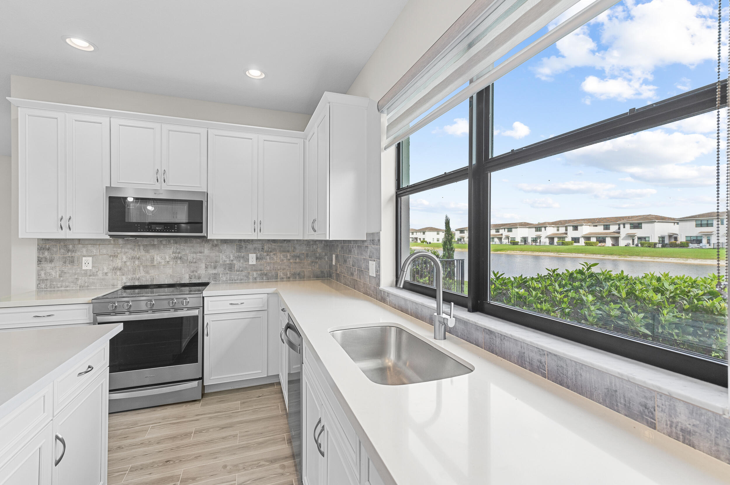 Beautiful like new townhouse with water views. Close to all, easy access to Florida Turnpike, restaurants, beach and equestrian facilities. 3 bedroom plus office/den that may be converted to a 4th Bedroom, 2.5 bathrooms, 2 car garage, large open kitchen with center island. Stainless steel appliances. Custom zebra shades with motorized slider shade. Quartz countertops in kitchen and mater bathroom counter top. Granite in second bathroom. Quiet, gated community with gated community pool. Buyer to verify all information.