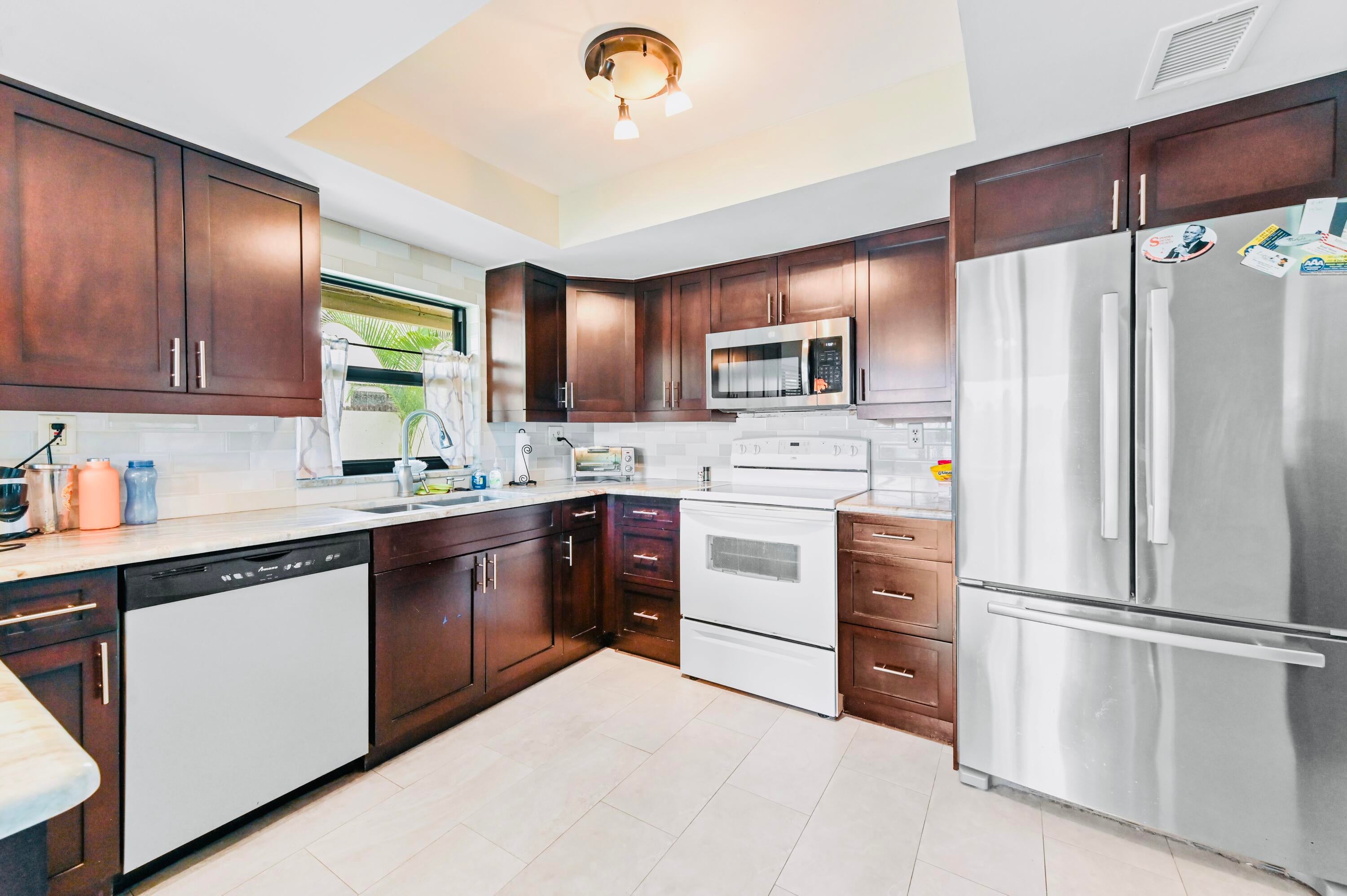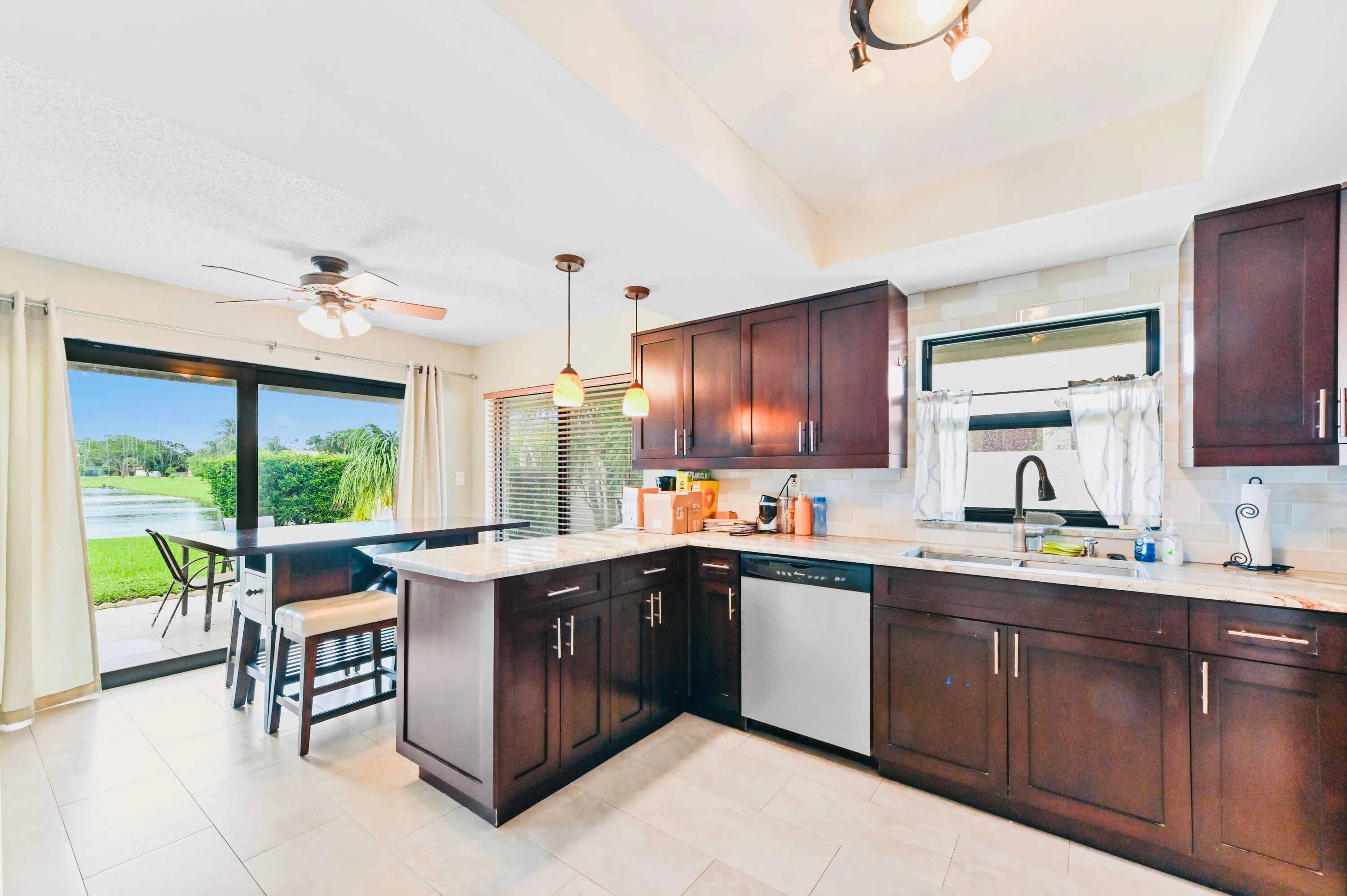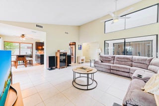 LAKE VIEW in Delray's highly desirable WoodLake community! This spacious 3BR/2BA townhouse lives like a single-family home and is located just 2 miles from Atlantic Ave, beaches, shops, and restaurants. Features include a 1-car garage, updated kitchen, volume ceilings, and a bonus Florida room for additional living space. Enjoy a large private backyard with privacy walls, paved patio, courtyard, and stunning lake view, plenty of room for a private pool., Roof installed 2013, WoodLake offers many amenities: including community pool, clubhouse, fitness center, tennis, pickleball, and basketball courts. Low HOA fee of $242month includes cable & internet. Pet-friendly community allowing up to 2 pets,100 lbs each. Don't miss this rare find close to everything Delray Beach offers