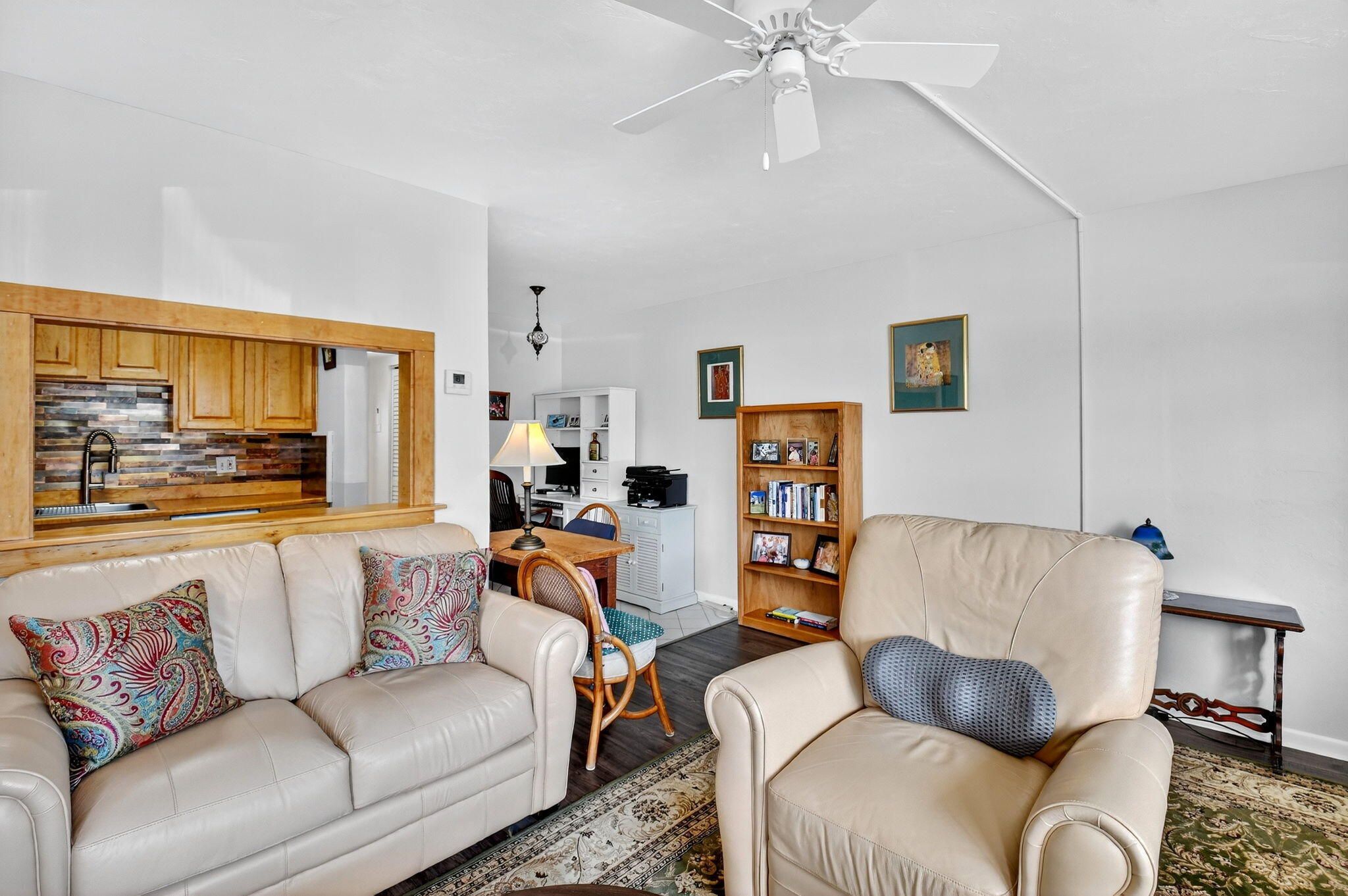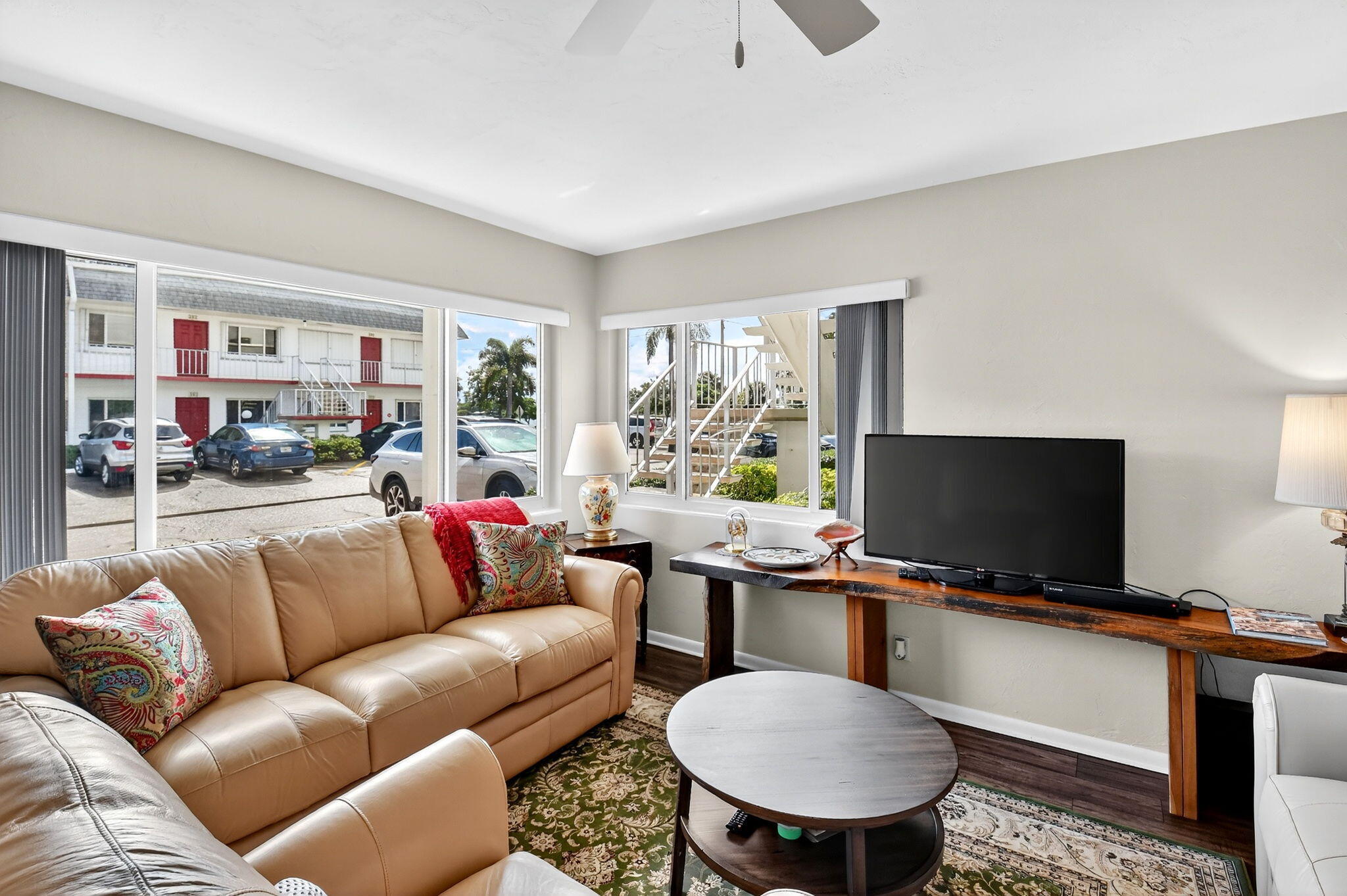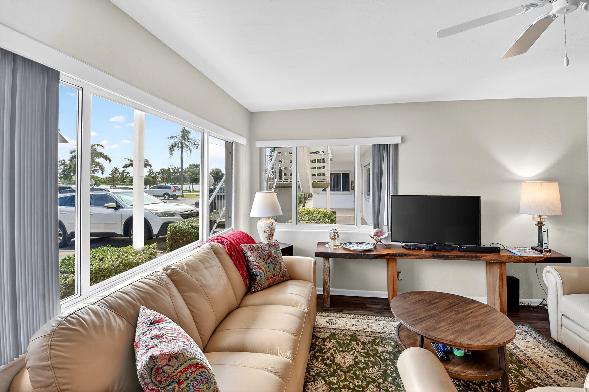 Priced under appraised value of $111,910. One BR unit in well maintained/financially stable 55+ complex. FIRST flr. lmpact glass. Newer AC/water htr. Located 8 min from ocean/across from 750-acre John Prince Park. Walking/biking trails nearby. Lake views from 2 LR windows. Assigned parking space/guest spot in front of unit. Gorgeous bamboo flooring. Nice beige leather furniture. Stunning custom wood kitchen. Great natural light! Tranquil bedroom w/private backyard. Just 2 min to 95 freeway/Tri-rail station. 5 min to dwntwn Lake Worth Beach. 15 min to WPB/Delray Beach for their abundant restaurants/shopping. Amenities: gigantic pool, 2 gyms, pickleball, bocce ball, shuffleboard, BBQ area, library, auditorium shows movies on Saturdays. 700 credit score. No pets. This building has reserves!