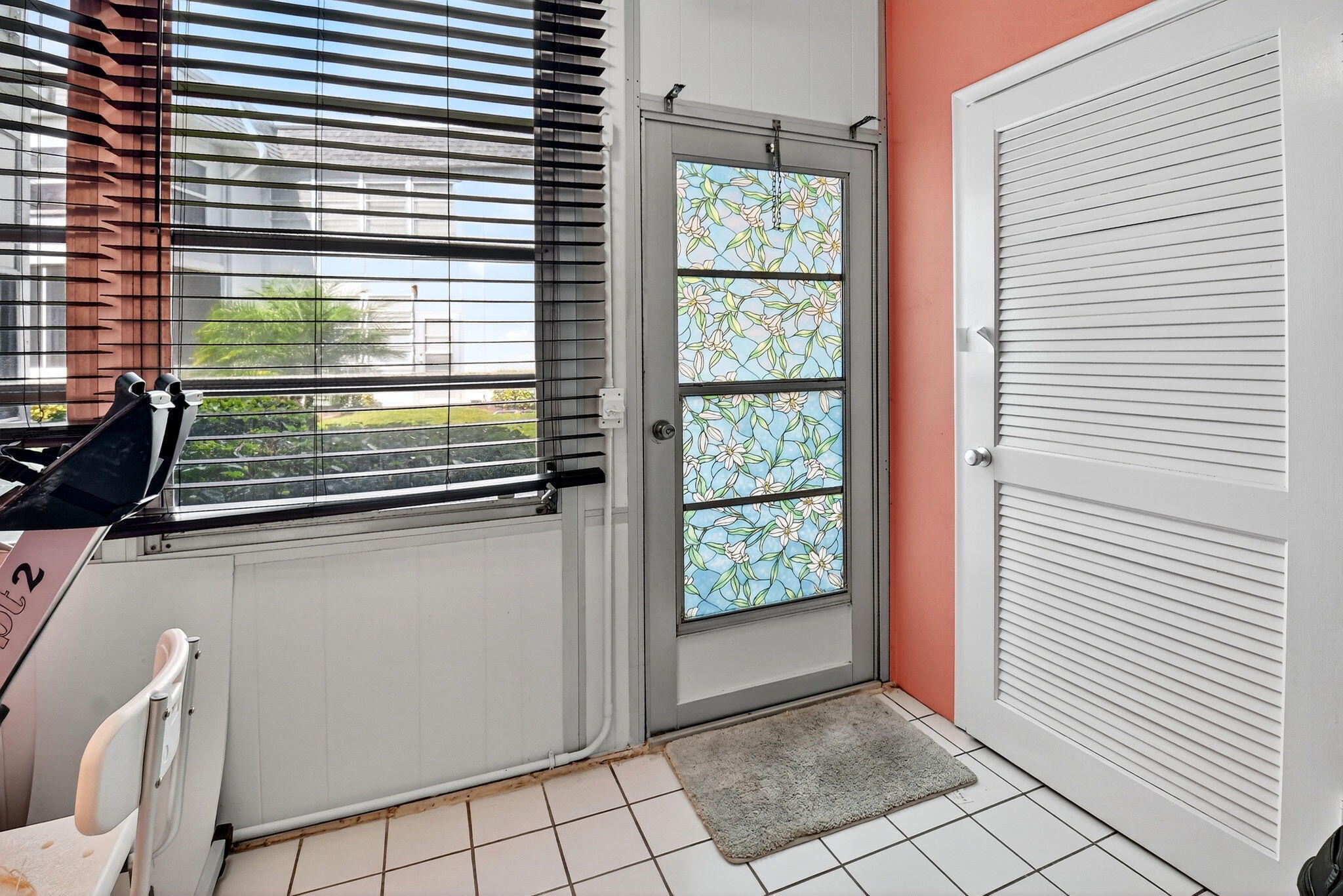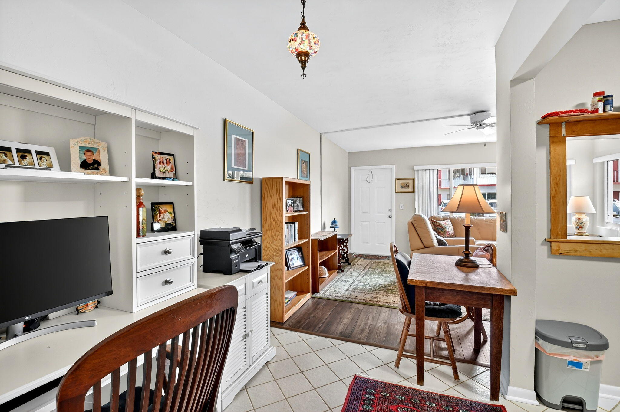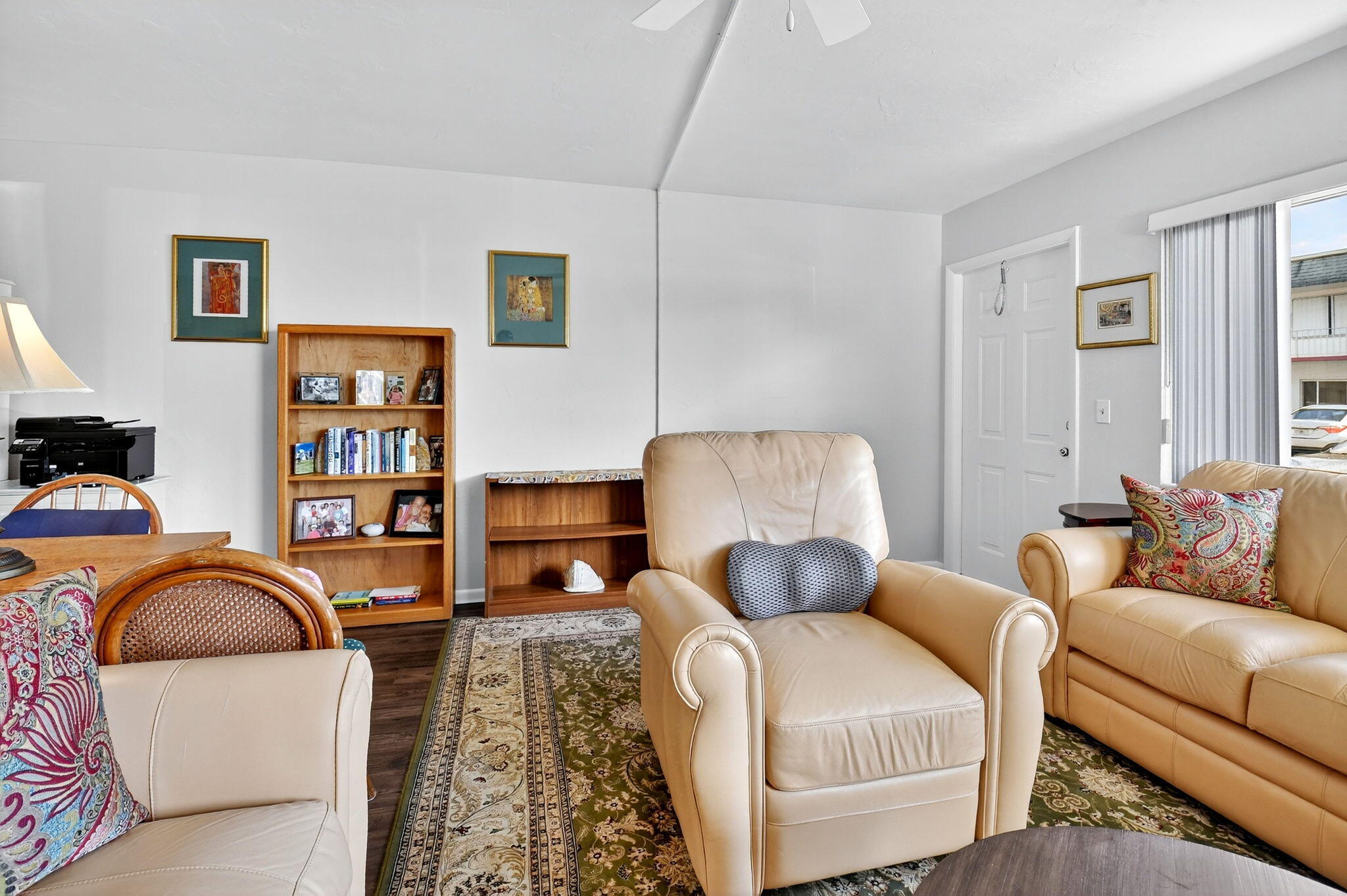 Priced under appraised value of $111,910. One BR unit in well maintained/financially stable 55+ complex. FIRST flr. lmpact glass. Newer AC/water htr. Located 8 min from ocean/across from 750-acre John Prince Park. Walking/biking trails nearby. Lake views from 2 LR windows. Assigned parking space/guest spot in front of unit. Gorgeous bamboo flooring. Nice beige leather furniture. Stunning custom wood kitchen. Great natural light! Tranquil bedroom w/private backyard. Just 2 min to 95 freeway/Tri-rail station. 5 min to dwntwn Lake Worth Beach. 15 min to WPB/Delray Beach for their abundant restaurants/shopping. Amenities: gigantic pool, 2 gyms, pickleball, bocce ball, shuffleboard, BBQ area, library, auditorium shows movies on Saturdays. 700 credit score. No pets. This building has reserves!