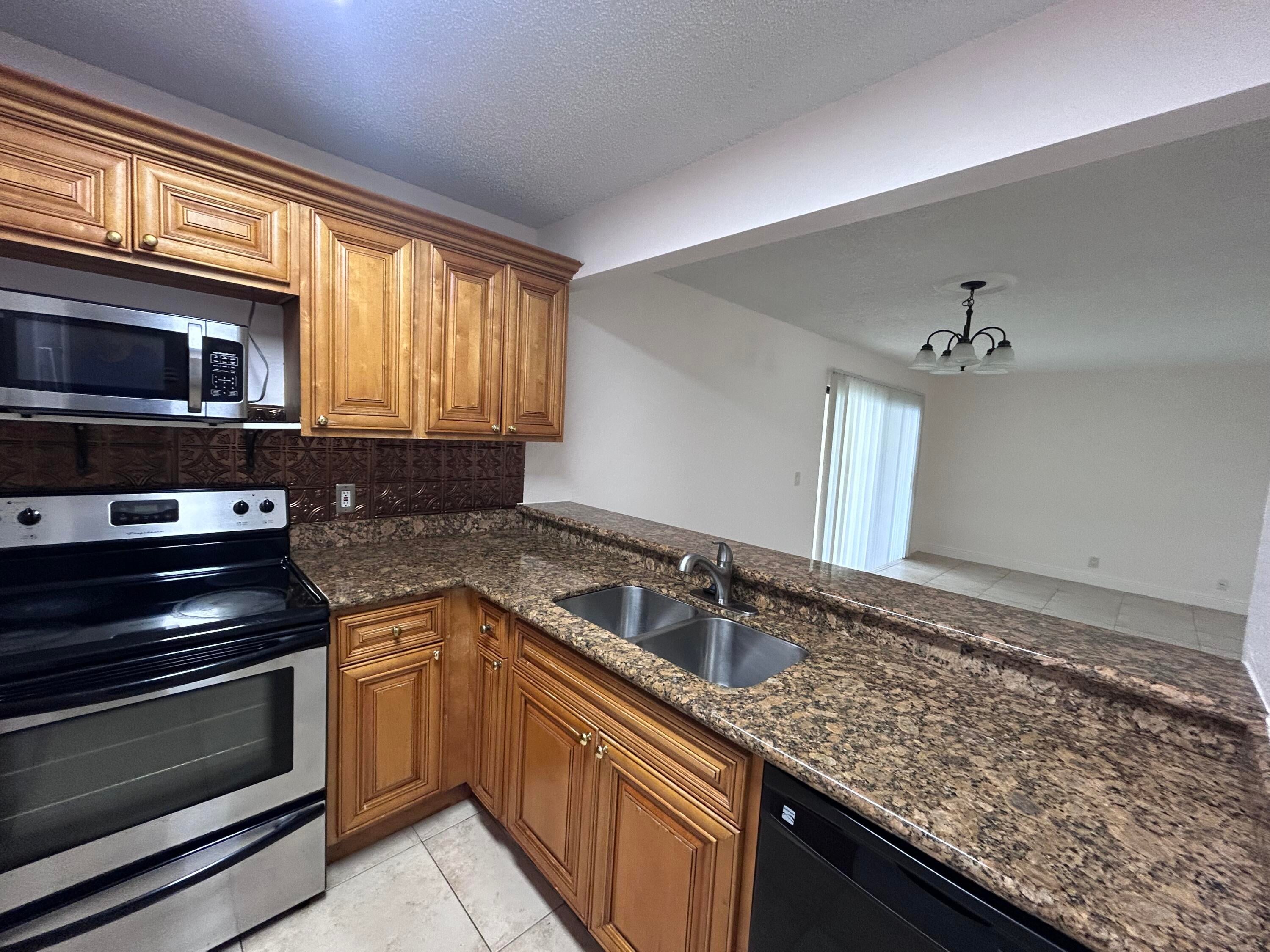 First floor corner unit featuring Water View, ceramic tile in living areas and laminate wood flooring in bedrooms. Kitchen includes maple cabinets, granite countertops, and stainless steel stove and dishwasher. Space and hook-up for full-size washer and dryer. Community offers pool, clubhouse, and walking paths. Convenient location near shopping, dining, schools, and major roadways.