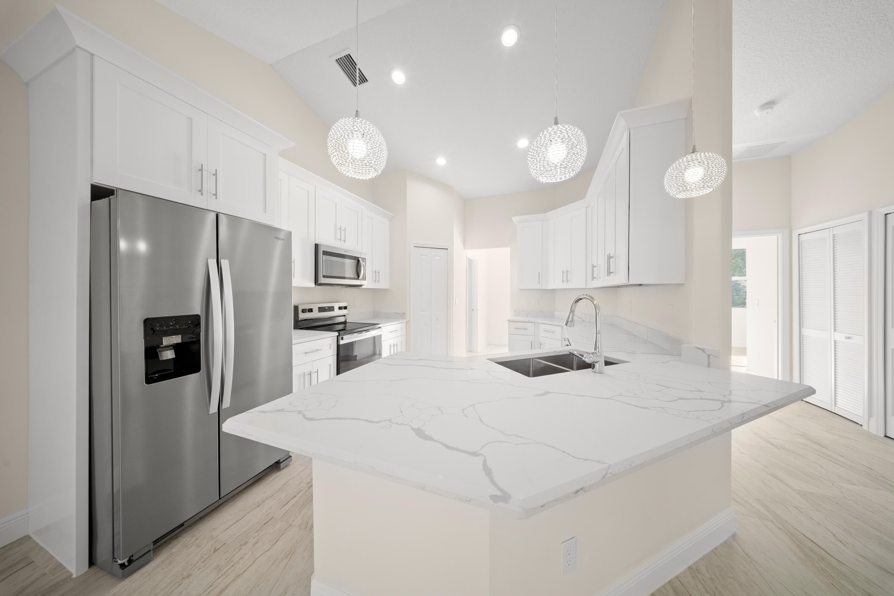NEW CONSTRUCTION, INDIAN RIVER ESTATES AREA....READY AND WAITING FOR YOU!! 4 BEDROOMS, 2 BATHS, 2 CAR GARAGE. Custom built with 1900 Sq. Ft. living area and 2514 total. You will find here quality construction with beautiful ceramic tile throughout, quartz counter tops in kitchen and baths, tray ceilings, elegant bathroom with tiled showers, two vanities with sinks and garden tub. Large foyer, bright and light great room, ceiling fans and light fixtures already in place, walls with rounded corner, recessed lighting in the kitchen, IMPACT WINDOWS AND METAL ROOF. Marvilla Builders is a private builder with attention to detail. Don't miss your opportunity to call this beauty your home.SOME PICTURES ARE VIRTUALLY STAGED. ALSO CHECK 5605 SEAGRAPE. Just a block away.