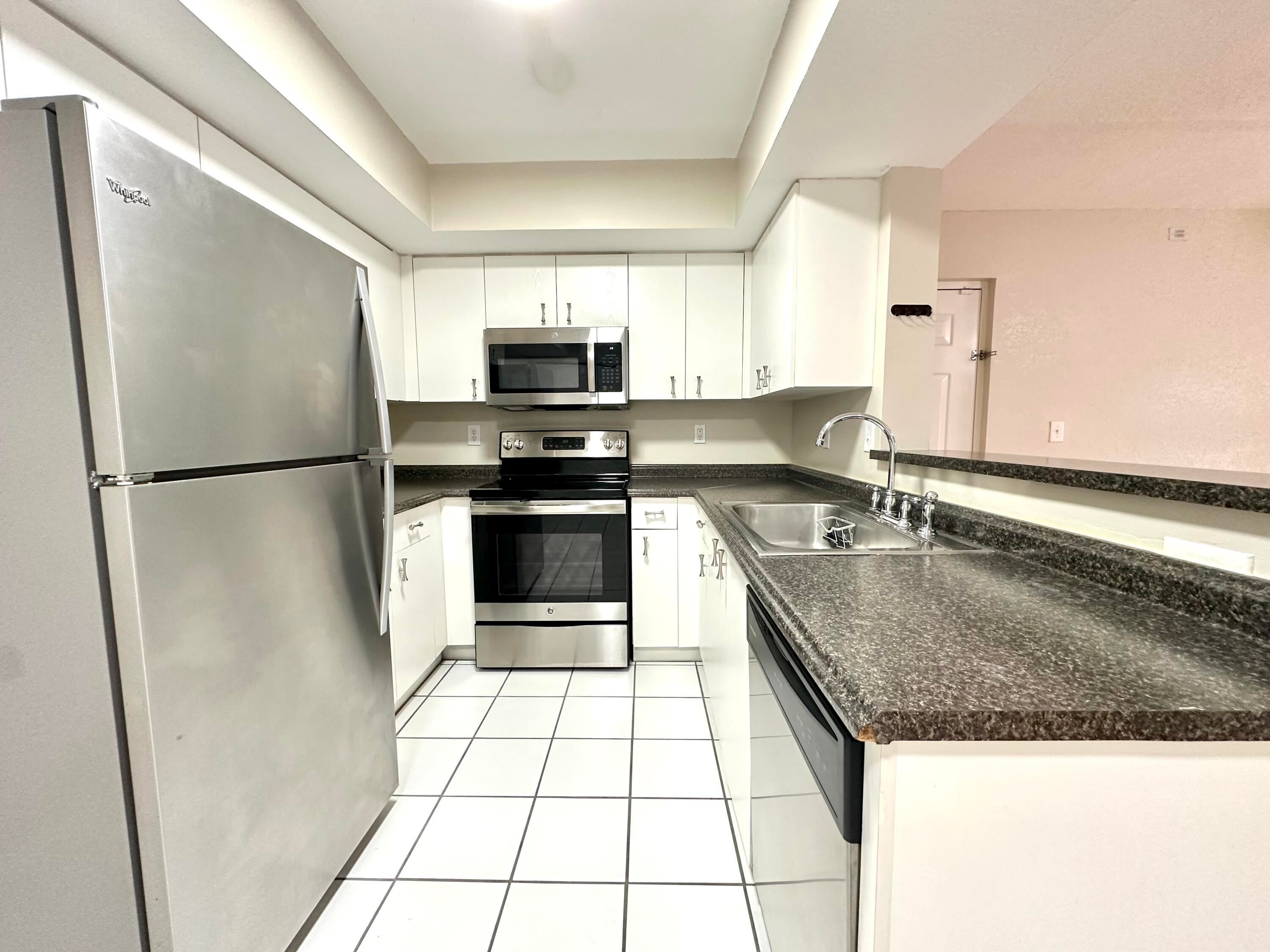 BEAUTIFUL LARGE 1/1 IN A LUXURY GATED COMMUNITY. UPDATED KITCHEN AND, NEWER SS APPLIANCES INCLUDING DISHWASHER, MICROWAVE AND GLASS-TOP OVEN. CERAMIC TILES AND LAMINATE FLOORS, FULL SIZE WASHER AND DRYER, COVERED TILED BALCONY, WATER,SEWER AND GARBAGE REMOVAL INCLUDED IN THE RENT. CLEAN AND READY, 1ST AND SECURITY TO MOVE-IN TO BE CONSIDERED WITH GOOD CREDIT AND INCOME. RESORT STYLE GATED COMMUNITY. AMENITIES INCLUDE: ONSITE MANAGEMENT, FITNESS CENTER, TENNIS COURT, HOT-TUB, SWIMMING POOL, CHILDREN PLAYGROUND. BASKETBALL COURT AND A DOG PARK