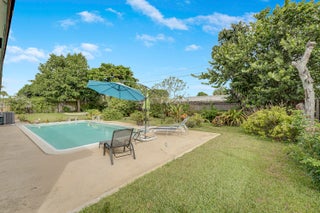 Welcome to this charming 3 bedroom 2 bathroom Florida -style home located in the sought after neighborhood of Bahama Heights. Step inside to an open and bright kitchen featuring quartz countertops, modern cabinetry, and updated appliances. The Ensuite bathroom showcases a walk-in shower with elegant Italian marble wall and floor tile, complemented by a natural marble countertop. In addition one of the bedrooms features a custom walk-in closet with newly installed cabinetry--ideal for those who need extra storage. The laundry room also offers substantial storage with built-in cabinetry. The outdoor retreat includes a lap-size inground pool, covered patio, and plenty of fenced-in space for family, pets, and gatherings. This home offers a blend of comfort, style, and functional living.