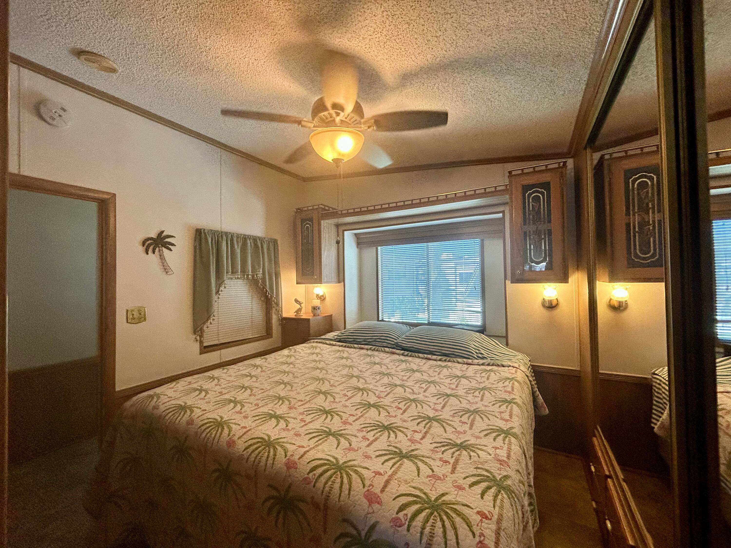 Move-In Ready & Fully Furnished 1 Bedroom, 2 Bath Home. Welcome to this vibrant and friendly 55+ community of Ancient Oaks, where comfort and convenience come together. This beautifully maintained home features a non-rusting interlocking metal roof with plenty of insulation, keeping it cool and energy-efficient through the summer months. Inside, you'll find matching tile flooring throughout for easy maintenance and a clean, cohesive look. Relax in the spacious Florida room, the perfect spot to enjoy your morning coffee while watching the sunrise. Just a short stroll away, you'll find the clubhouse and community amenities that make Ancient Oaks such a desirable place to live.