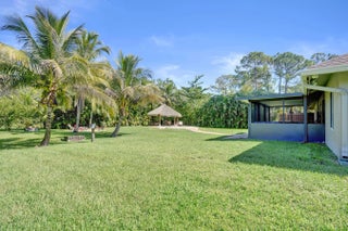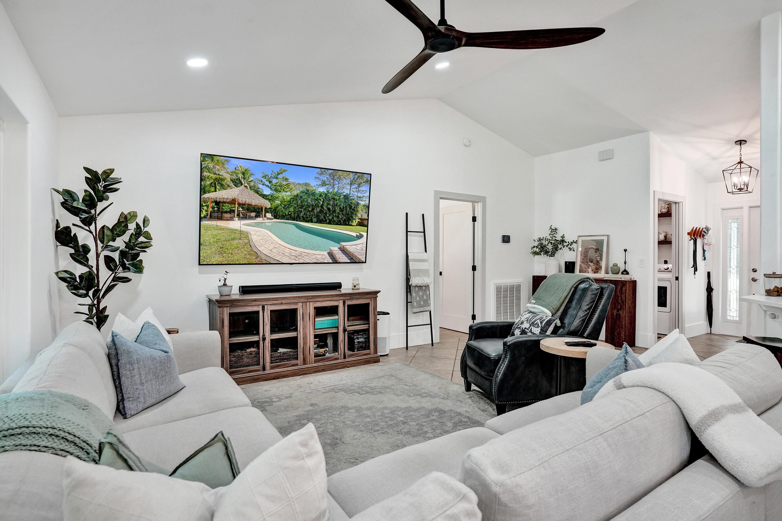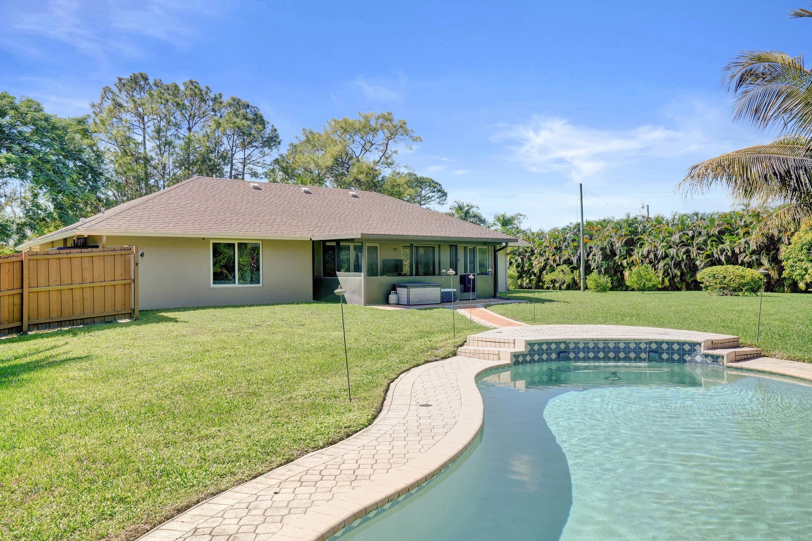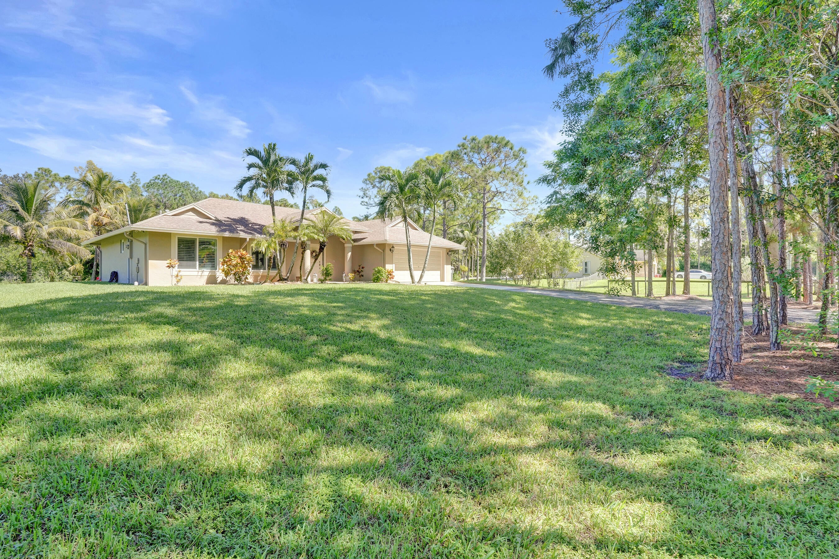 Welcome to your private paradise in the heart of Loxahatchee! This beautifully remodeled home sits on nearly 1.3 acres, offering the perfect blend of luxury, comfort, and outdoor living. The resort-style backyard is ideal for entertaining--featuring a sparkling pool, spacious tiki hut, screened patio, built-in fire pit, and horseshoe area for family fun. Inside, a stunning newly renovated kitchen with modern finishes opens to bright living spaces with high vaulted ceilings. Freshly updated bedrooms and baths include new flooring and stylish details throughout. The property is secured by an electric front gate, plus a second double-gated entry perfect for RVs, boats, or trailers. Experience the best of the Loxahatchee lifestyle in this truly exceptional retreat.Enjoy peace of mind with a complete hardwired security camera system with floodlights, smart app integration, and an interior monitor, along with a convenient generator hookup for easy power connection when needed. Surrounded by lush landscaping and mature fruit trees (mango, citrus, banana, and fig), this home offers the perfect blend of beauty, comfort, and functionality