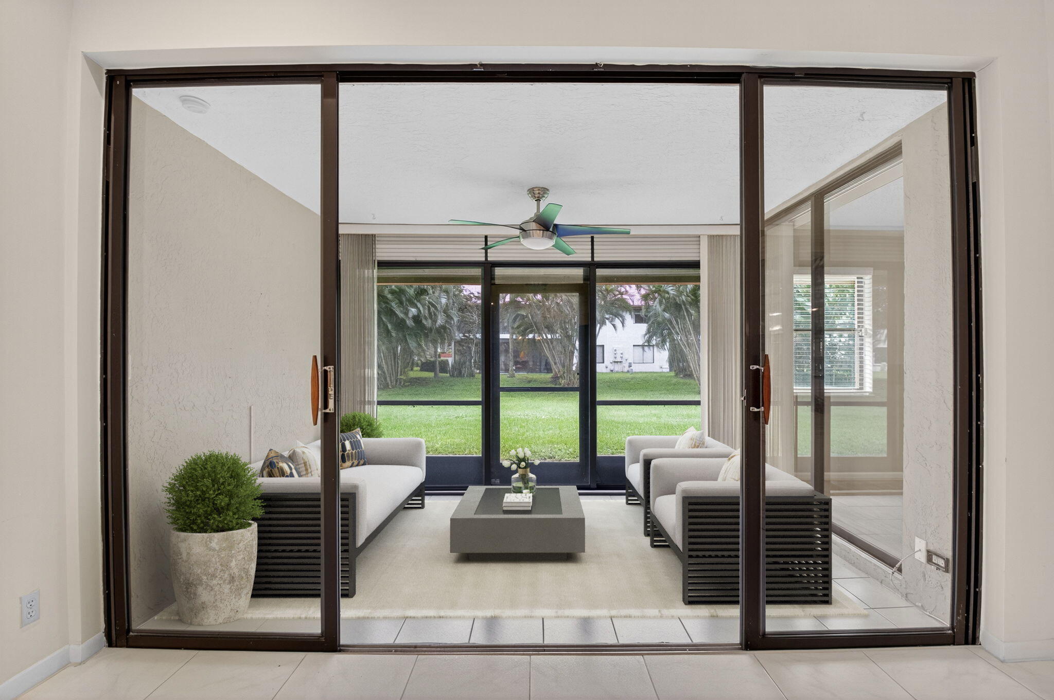 Welcome to this beautifully maintained 2BR villa with a versatile den/office--easily used as a 3rd bedroom--located in the sought-after gated 55+ community of The Lexington Club. Bright and spacious with soaring vaulted ceilings, this home offers abundant natural light and an open, airy feel.The charming eat-in kitchen features stainless steel appliances and modern finishes. Enjoy the enclosed lanai with hurricane-impact glass, ideal for relaxing year-round.Highlights include: One-car garage Remodeled bathrooms Newer hot water heater (2019) AC system replaced in 2016This move-in-ready home combines comfort, convenience, and an excellent location within a premier active-adult community.HOA FEE INCLUDES Bldg Ins., Roof Maint & Ins, Painting, Landscaping, Water, Pest Control, CABLE TV & WIFI. One pet up to 30 pounds Allowed. Close to Delray Marketplace, Florida's Turnpike and trendy Atlantic Ave.This move-in ready villa is just waiting for its next fortunate owner to call it home. Don't miss out on the opportunity to live in comfort and style in The Lexington Club!