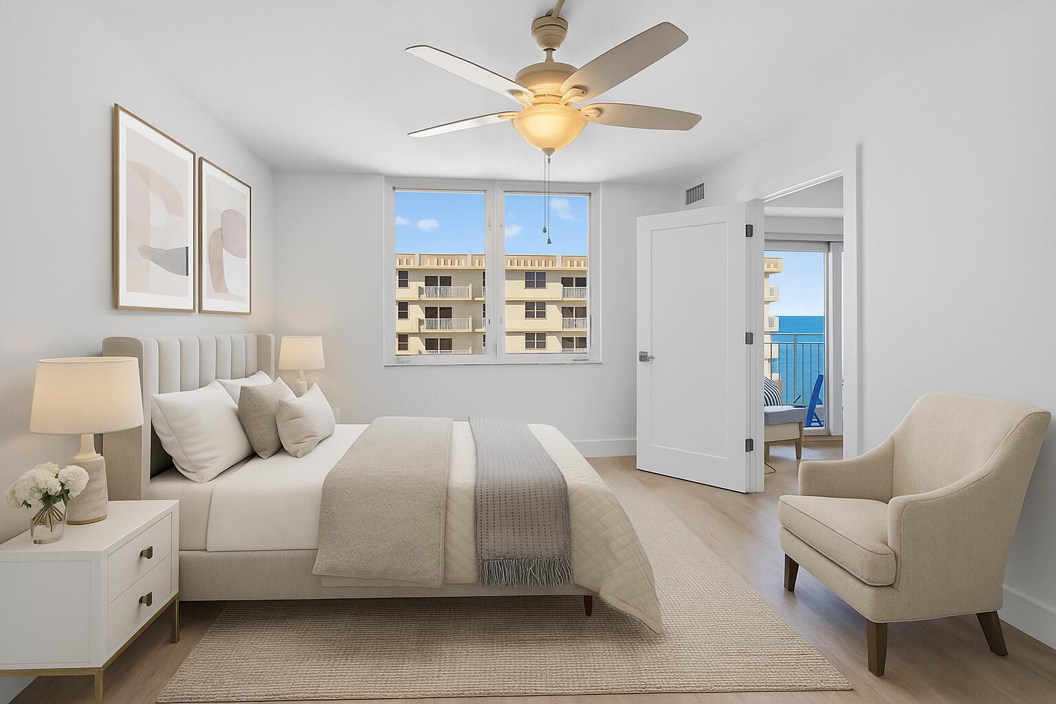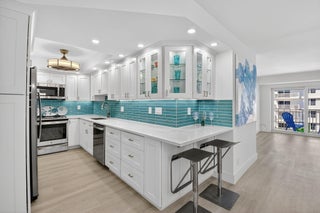 Experience spectacular oceanfront living from this fully renovated 2-bedroom, 2-bath condo perched on the 9th floor in the heart of Highland Beach. This bright and airy condo offers sweeping ocean views, creating a serene and elevated coastal retreat. Beautifully redesigned with attention to detail, the condo features brand-new flooring throughout, impact-resistant windows, and two elegantly updated bathrooms. The open-concept kitchen shines with quartz countertops, sleek white cabinetry, top-of-the-line appliances, and a coastal-inspired backsplash that adds the perfect designer touch. The spacious living and dining areas flow seamlessly to a private balcony--ideal for relaxing with morning coffee or evening cocktails while soaking in the ocean breeze. The primary bedroom is a truesanctuary, showcasing ocean views, a generous walk-in closet, and a completely remodeled en suite bath. Designed with coastal flair, the bathroom features textured white wave tiles on the shower walls, a soothing blue-green tile shower floor, white cabinetry, and modern fixturescreating a spa-like atmosphere. This well-maintained beachfront building offers a wealth of resort-style amenities, including 24-hour manned security, professional on-site management, storage, beachfront swimming pools, a modern fitness center and sauna, garage parking, and three oceanfront social rooms. Enjoy direct, private beach access for the ultimate convenience. This oceanside community borders the cities of Boca Raton and Delray Beach placing you just minutes from the vibrant shopping, dining, and nightlife of Atlantic Avenue in Delray and Mizner Park in Boca. Whether you're seeking a year-round home or a seasonal escape, this is coastal living at its best.