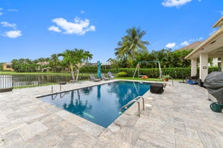 Prepare to be enchanted by this truly magnificent waterfront estate, perfectly nestled in a desirable, lake-front community in Wellington. The home immediately impresses with its grand, European-inspired architecture, featuring a new roof, new impact windows & doors, an elegant stone and stucco facade, permanent whole house generator and a sweeping paver driveway leading to the attached garage. The meticulously manicured tropical landscaping and towering palm trees frame the residence, setting a tone of upscale elegance before you even step inside.The ultimate Florida lifestyle awaits in the spectacular backyard oasis. The property boasts a custom-designed, swimming pool surrounded by a modern paver patio, offering an ideal space for sunbathing, relaxation, and entertaining. The entire backyard is fenced for privacy and security and overlooks a serene, wide community lake. Residents of this exclusive community enjoy an array of exceptional amenities, including private tennis courts and beautifully maintained tropical waterways and green spaces, enhancing the luxury resort feel. This is a rare opportunity to secure a premier home in one of Wellington's most sought-after neighborhoods. The home's two-story design and dramatic curb appeal are perfectly complemented by its private waterfront setting, promising breathtaking views and tranquil living. With its combination of sophisticated design, high-end outdoor living spaces, and location within a beautifully maintained community, this home is more than a residenceit is a sanctuary for the discerning buyer.