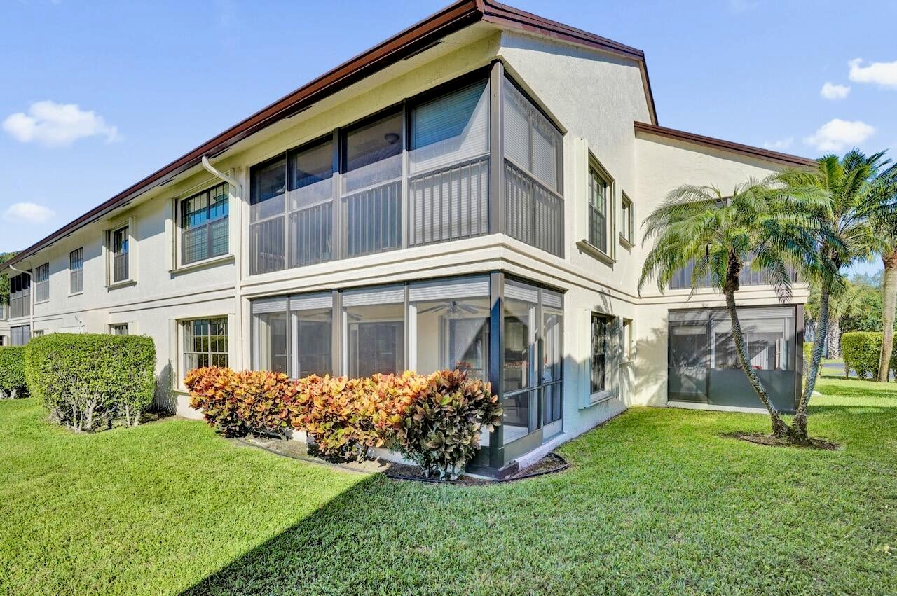 This listing contains virtually staged photos. Welcome Home to Park Pointe! This charming 3-bedroom, 2-bathroom first-floor condo in the desirable 55+ community of Park Pointe in Greenacres is completely move-in ready!As a corner unit with nearly 1,400 sq. ft., this home is filled with natural light and offers a wide lake and fountain view that can be enjoyed from your spacious, screened-in patio. The kitchen features an eat-in area, updated cabinets, and mostly stainless steel appliances. Inside, the home has been meticulously maintained and offers a bright, open feel throughout. Additional features include a 2021 A/C unit, Square D electrical panel, and in-unit washer/dryer hookups conveniently located in a hall closet.Parking is easy with one assigned spot right in front ofthe building, two vehicles are permitted per unit. A new roof (2022) provides added peace of mind. Monthly dues include basic Comcast cable and internet, water, trash, roof maintenance and exterior building insuranceeverything you need for low-maintenance living. One pet under 25 lbs is welcome, and there is no rental moratoriumrentals are permitted once per year with a 3-month minimum. At least one occupant must be 55 or older. Community amenities are exceptional! Residents enjoy a resort-style pool, fitness center, tennis and pickleball courts, clubhouse, billiards, ping pong, shuffleboard, bocce ball, grilling area, car wash, on-site management, and an active social calendar offering numerous events and activities year-round. Conveniently located near shopping, dining, and entertainment, Park Pointe offers the perfect blend of comfort, community, and convenience. Schedule your showing today and make this beautiful condo your new home! INFORMATION HEREIN NOT GUARANTEED AND SUBJECT TO ERRORS & OMISSIONS. ALL MEASUREMENTS APPROXIMATE.