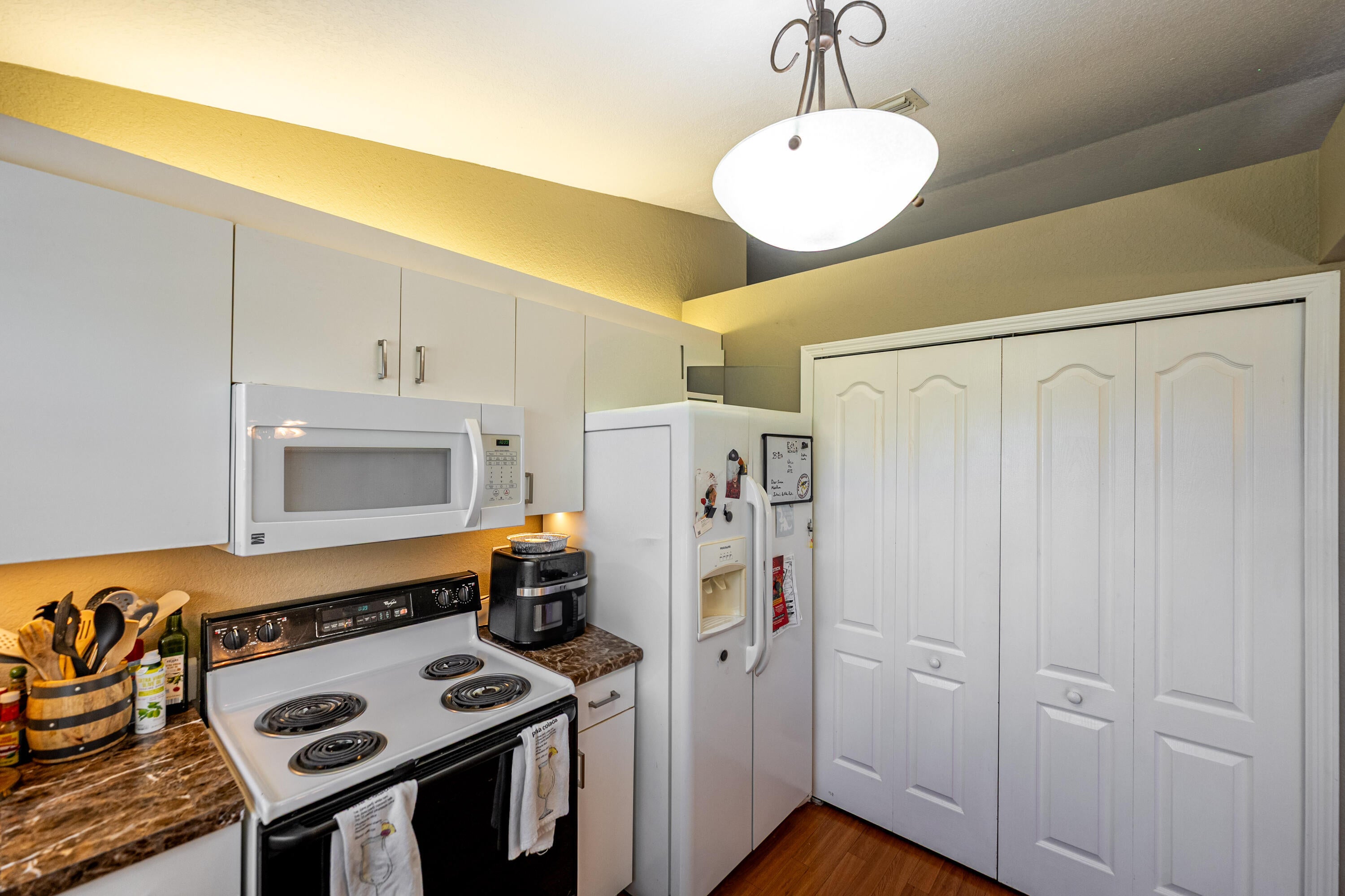 Auto Garage Open, Dishwasher, Disposal, Dryer, Microwave, Range - Electric, Refrigerator, Smoke Detector, Storm Shutters, Washer, Washer/Dryer Hookup, Water Heater - Elec