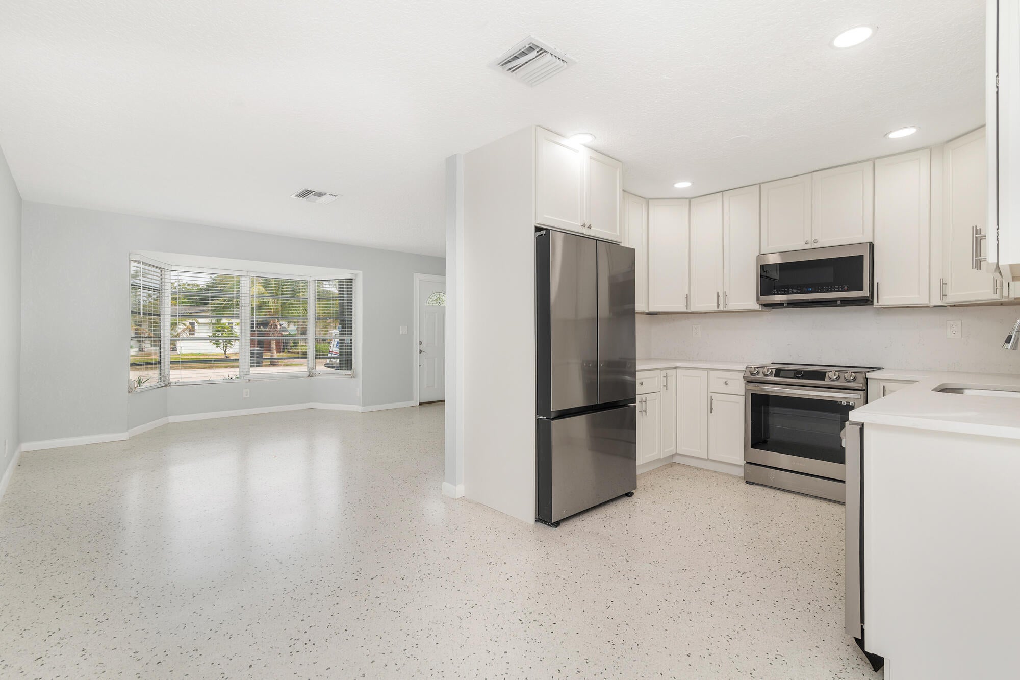 Amazing deal on a waterfront pool home available for lease in SoSo! This 2 bedroom, 2 bath home is light and bright with an open living area and gleaming terrazzo floors throughout for easy maintenance. The clean design kitchen is updated with white cabinetry, quartz countertops and brand new Samsung stainless steel appliances including a dishwasher, an electric range, a built in microwave oven and a French Door refrigerator with ice maker. The primary suite has a wall of closets and an ensuite master with glass enclosed shower and new vanity. The second bedroom is by the hall bath that is updated with a combination tub/shower and new vanity. The Florida Room has a bank of windows overlooking the pool and backyard and sliders to the screened patio - perfect for entertaining.The home has a 1 car garage with full-sized front loading washer and dryer. The pool area is fully screened and overlooks the waterfront along the C-51 Canal that separates West Palm Beach from Lake Worth Beach and has access to the Intracoastal Waterway and the Atlantic Ocean. There is no dock at the property at this time - just a seawall - but a dock is being permitted and may be installed sometime during the course of the lease. In the meantime, you can at least enjoy the water view and do a little fishing! 250 Arlington Road is in the South Olive Elementary school district. Just steps from the shopping along S. Dixie Highway and restaurants including Darbster, the area's top Vegan restaurant, at the end of the street. Close to South Olive Park, South Olive Tennis Center, and South Olive Elementary School. First, last + security. Annual lease, unfurnished. Tenant responsible for electric, gas and water utilities. Call today to see the best-priced waterfront property in all of the Southend!