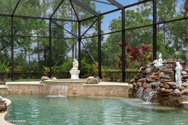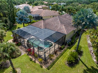 FABULOUS MADISON MODEL - LUXURY, UPGRADES & RESORT LIVING! Tucked away on a quiet cul-de-sac near the front of PGA Village, this beautifully maintained 3-bedroom + office, 3.5-bath pool home offers the perfect blend of convenience and privacy loaded with upgrades bringing a touch of elegance, comfort, and functionality. Beautiful kitchen with granite counters, SS appliances, with a convenient breakfast area that overlooks the spacious great room. Enjoy formal gatherings in the elegant dining room and serve guests from your designer bar. Architectural details such as crown molding, picture frame molding, and wainscoting add sophisticated charm to every room. Each bedroom features its own private ensuite bath, offering everyone space and privacy. The dedicated office provides the perfect work-from-home solution or a flexible bonus room. Step outside to your private oasis where a rock formation pool and spa with tranquil waterfalls, surrounded by a sun-soaked deck overlooking a serene natural preserve. The perfect setting for Florida living at its finest! Located in a meticulously maintained neighborhood with barrel tile roofs and brick-paved driveways, this home is part of the prestigious PGA Village community a true golfer's paradise. Ownership includes access to the Island Club, where you will find newly resurfaced pickleball courts, tennis, a resort pool & a recreational facility that houses a fitness center, ballroom, billiards, and hosts many activities for all. Centrally located to easy I95 access, close to shopping, dining, and entertainment.