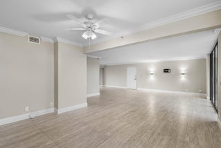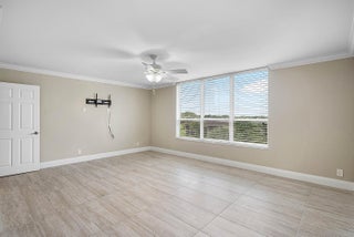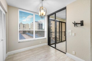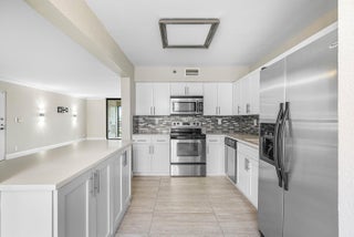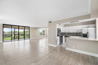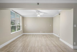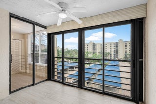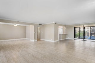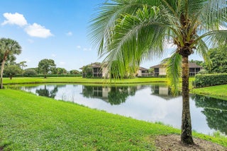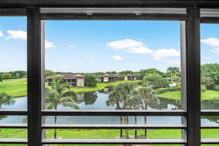 Discover this stunning condo with breathtaking lake and golf course views. This residence features two bedrooms with en suite bathrooms, a den, and a powder room. Enjoy an open ambiance with porcelain tile flooring, fresh paint, smooth ceilings with crown molding, and modern updates including a newer AC system and tankless water heater. The kitchen boasts elegant wood cabinetry, quartz countertops, and a glass tile backsplash, opening into the dining area. Ample storage with large closets and an attached storage room. Two balconies--one enclosed with glass, the other screened with electric storm shutters. Located in the gated Boca Pointe community, offering easy access to shopping, dining, parks, and more. Club membership optional.