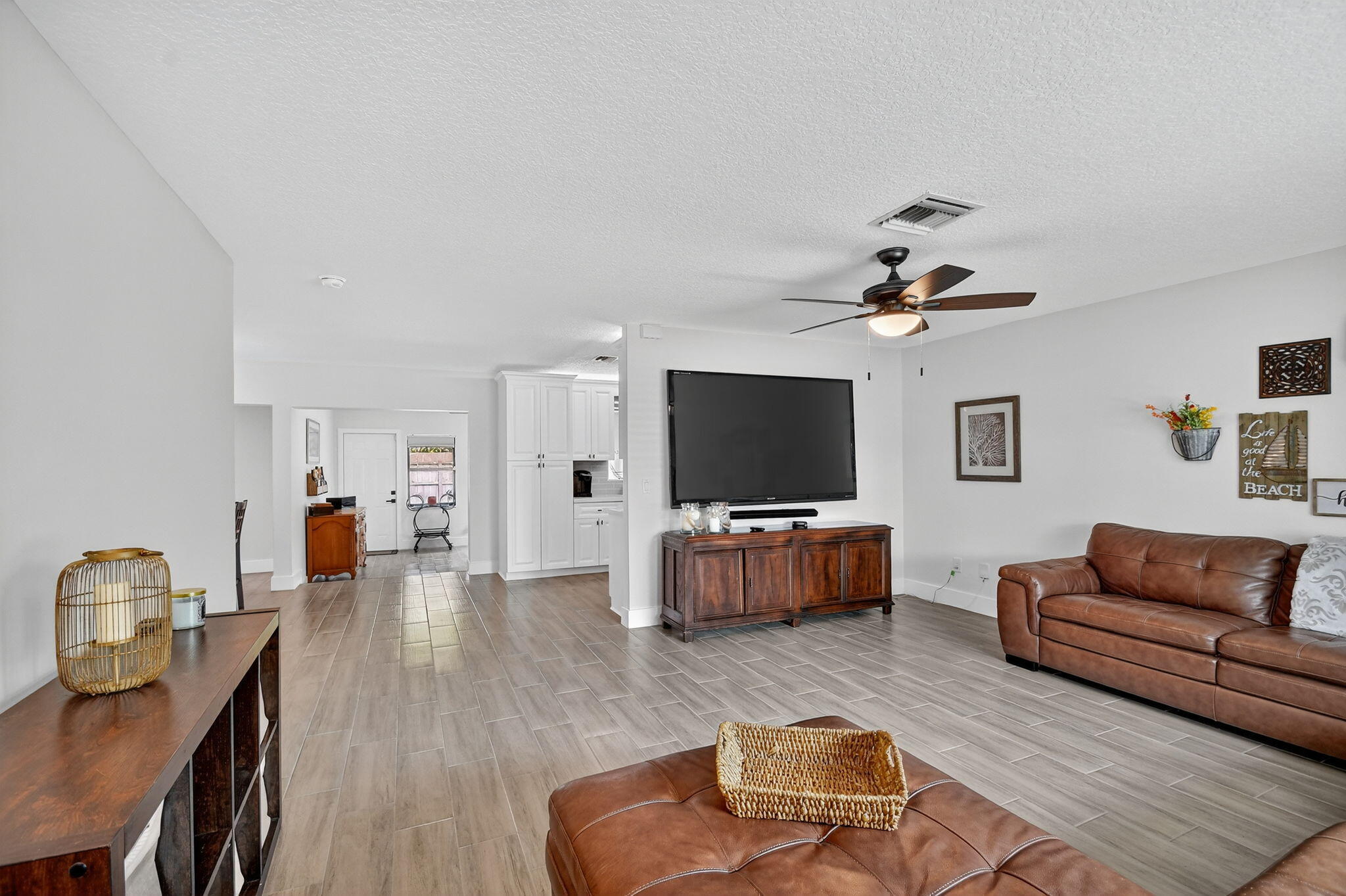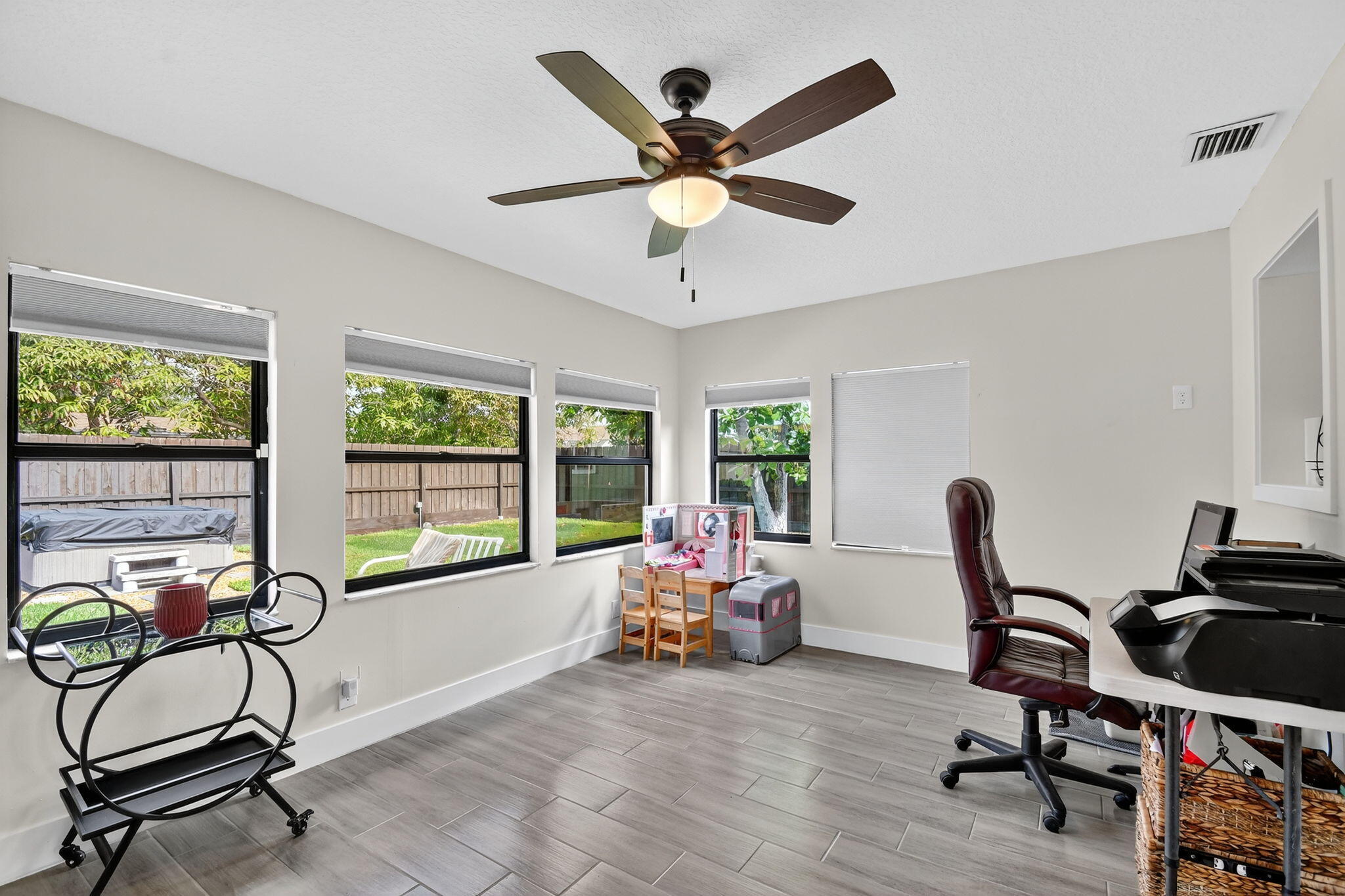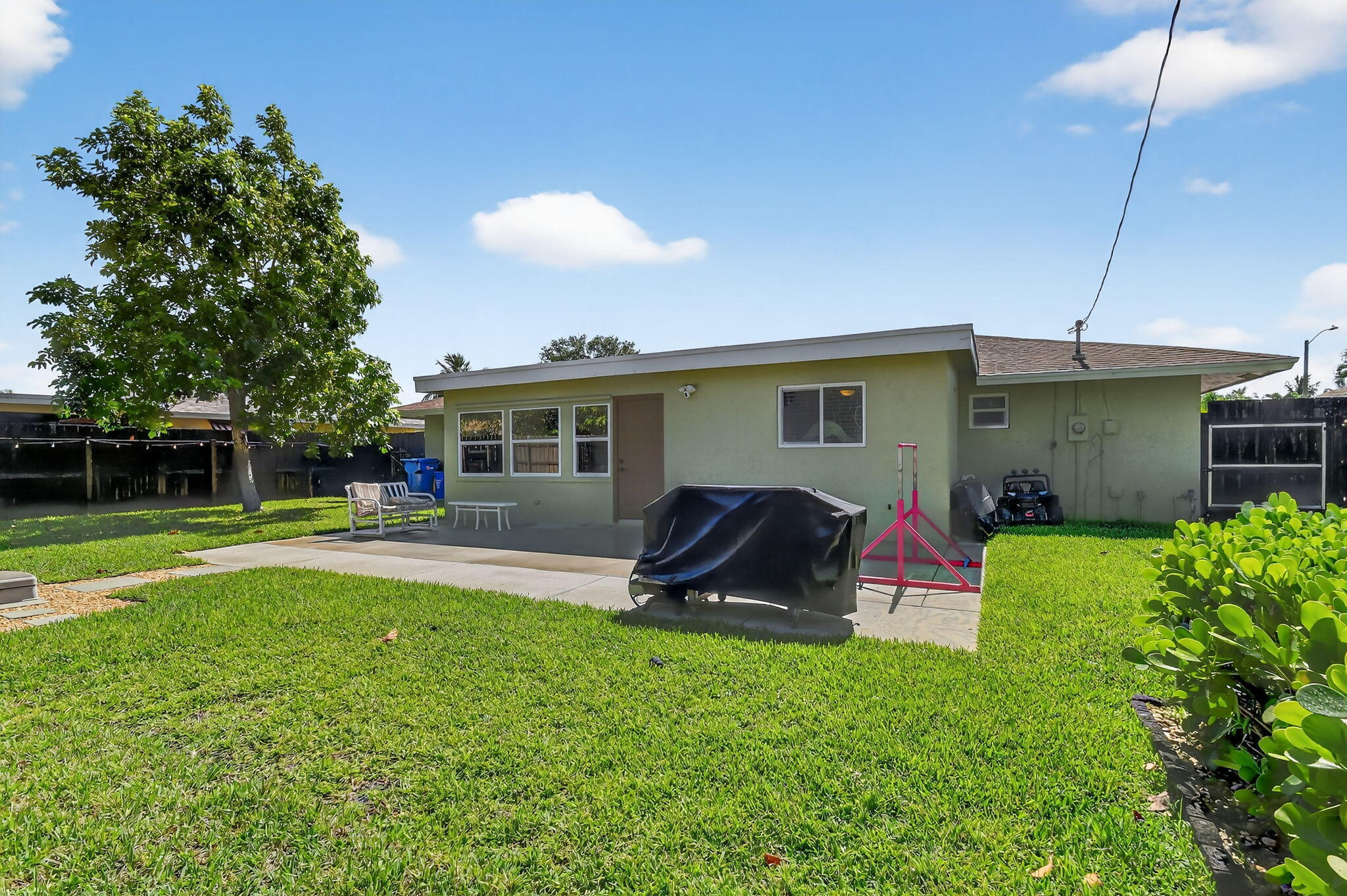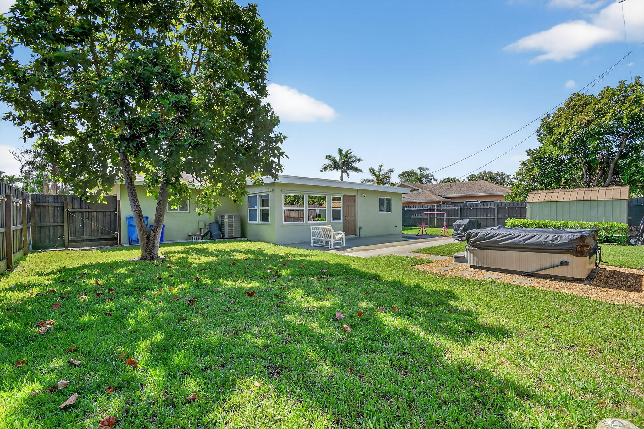Fabulous , move in ready, no HOA ,recently renovated home with natural light and a bonus den. Full house water filtration system. New bathrooms and kitchen with wood cabinetry, quartz countertop and SS appliances. New tile flooring throughout with upgraded lightning fixtures and ceiling fans. Brand new doors and hardware. Garage with new epoxy floors. Impact windows, doors and shutters. Expanded driveway with secondary pavers for extra parking for a boat and RV. Golf cart friendly neighborhood , drive it to the beach! Complete fenced back yard with lots of concrete patio, with a hot tub. Comes with a shed and a great avocado tree. Blocks from beach, I-95, restaurants, supermarkets, etc.