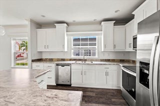 This new 2024 construction offers 3 bedrooms and 2 full bathrooms with an open floor plan that connects the living, dining, and kitchen areas. In the kitchen, you'll find 42'' upper cabinets, stainless steel appliances, and a center island with space for seating. The master bedroom features a private bathroom with dual vanities and a walk-in closet. Additional highlights include wood-look vinyl and carpet flooring, a shingle roof, and energy-efficient design with insulated windows to help reduce utility costs. A 7-year limited warranty provides added peace of mind. Located half a mile from Downtown Fort Pierce and 2 miles from the beach, this move-in-ready home is close to shopping, dining, and local attractions. This is a perfect opportunity to own a brand-new home in a prime location.
