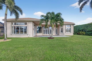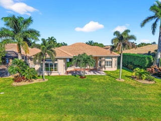 Stunning & Oversized Lakefront 4BR/4BA/3Garage home. Sprawling 3,206 sq.ft ranch triple split home has impressive upgrades including rich 24'' marble floors in main living areas, wood cabinets & stone counters throughout & solid core doors. One-of-a-kind Columbian Mahogany Kitchen with 54'' cabinets, soft-close drawers, Thermador double oven, Sub Zero frig, Dacor Stove. Primary oversized bedrm has built-out walk-in closets, Elegant light fixtures throughout.-French doors lead to oversized patio on the lake. Excellent for Entertaining. Magnificent Wall Unit in Family Rm. Walk to Multi-Million Clubhouse.Maintenance includes: Internet, lawn, exterior paint, SHO/HBO & alarm. 1X cap fee $5,090.00. 4th bedrm used as den. Buyer/Buyers agent to verify all information. Measurements are estimated.