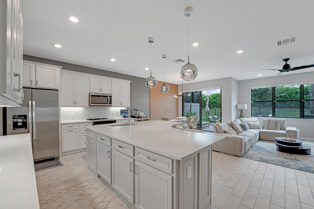 Welcome to The Fields in Lake Worth -- a gated, resort-style community by DiVosta Homes. This beautiful Adirondack Model townhome offers modern design, quality construction, and an easy low-maintenance lifestyle. Featuring 3 bedrooms, 2.5 baths, and nearly 1,900 square feet of living space, this home combines functionality with refined comfort.The open-concept main floor includes a spacious living and dining area, a designer kitchen with a large island, quartz countertops, stainless steel appliances, and upgraded cabinetry. Upstairs, the generous primary suite offers a walk-in closet and a luxurious ensuite bath with dual vanities and a glass-enclosed shower. Two additional bedrooms, a full bath, and a laundry room complete the second floor.Enjoy outdoor living with a private patio and a two-car garage for added convenience. Residents of The Fields enjoy exceptional amenities including a clubhouse, fitness center, resort-style pool, playground, and community events all within minutes of top-rated schools, shopping, dining, and major highways. Experience the perfect balance of style, comfort, and convenience in this move-in-ready townhome at The Fields, Lake Worth.