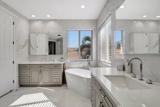 Fully Remodeled 5 bedroom 3.5 bathroom home in Isola Bella Estates! In like new, move in condition. All flooring is large format porcelain tile including full bathroom walls. Everything in this home was tastefully chosen and designed for full luxury living. All bathrooms are fully porcelain tiled and all showers feature handhelds and multiple body sprays. All new light fixtures and fans throughout. A brand new kitchen with quartz countertop and backsplash, and a fully enclosed outdoor area with grilling station and saltwater pool. Located on a canal front w/ no neighbors behind you. 2 NEW AC UNITS INSTALLED 9/2021. Home features 21 solar panels, solar hot water heater, accordion shutters throughout and flex space in the garage for entertainment. Full amenity clubhouse & 24hr manned gate.