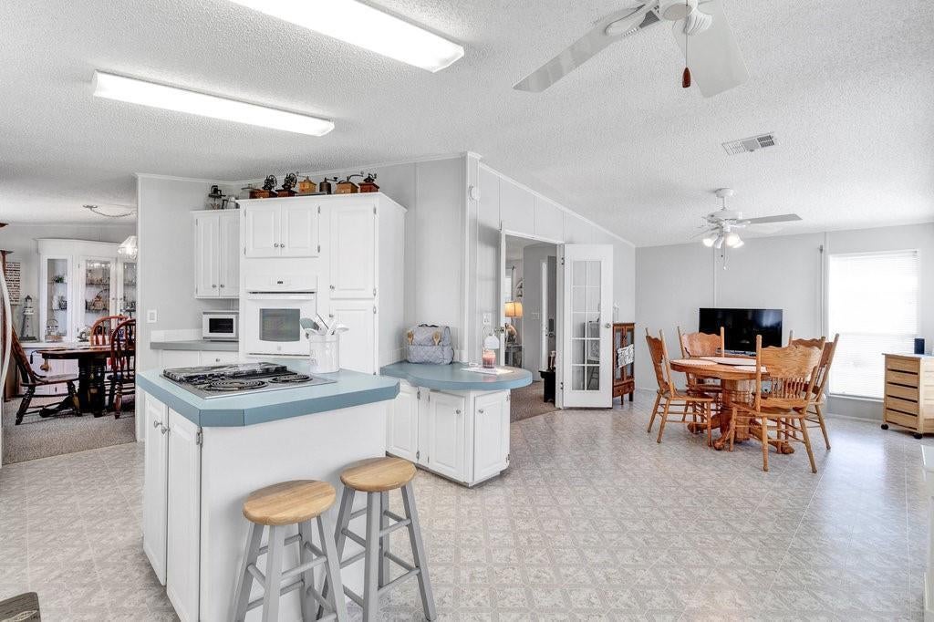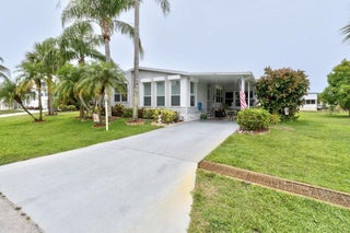 Home for the Holidays! Yes, this could be your new Florida getaway, it's move-in ready on an XL 72x100 lot INCLUDED/NO Lot Rent! Nearly 2,000sf under air including an enclosed patio(176sf) to the Home (1777sf). Large Open Bright kitchen w/ coffee bar, huge master suite w/ double sinks & walk-in shower. Inside laundry (W/D incl), shed/workshop w/sink. Hurricane-ready w/roll-down shutters. Updates: 2022 A/C, 2023 plumbing, fresh 2024 paint. Outside enjoy the lush tropical landscape & lawn with IRRIGATION WELL & Pump with Automatic timer. Conveniently located across from clubhouse. Don't miss it!