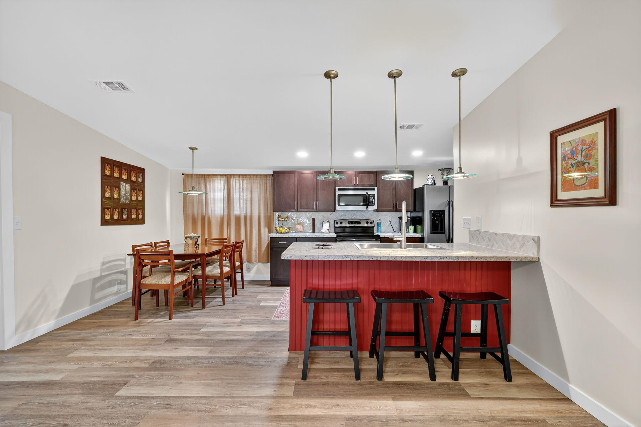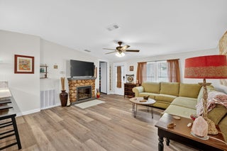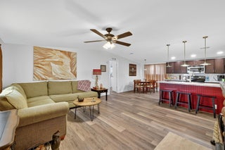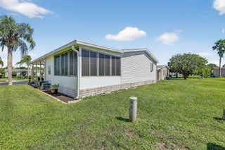 Elegantly remodeled 2bed/2bath home tucked away on a quiet cul-de-sac in a desirable 55+ community. Home reflects quality craftsmanship & elegant design, from custom finishes to the detailing. The timeless & comfortable feel is expressed in the open layout, connecting the living room, dining & kitchen. Beautiful, solid flooring & stylish lighting throughout. The spacious primary bedroom boasts a stunning en suite. This home is meticulously cared for w/ fresh window treatments & great storage options. Located near shops, grocery, pharmacies & everyday conveniences, this property offers the perfect balance of comfort & accessibility. Lot lease includes lawn & trash, a clubhouse w/ activities, a heated pool & spa, shuffleboard, tennis, pickleball, library, social/card room, billiards & more!