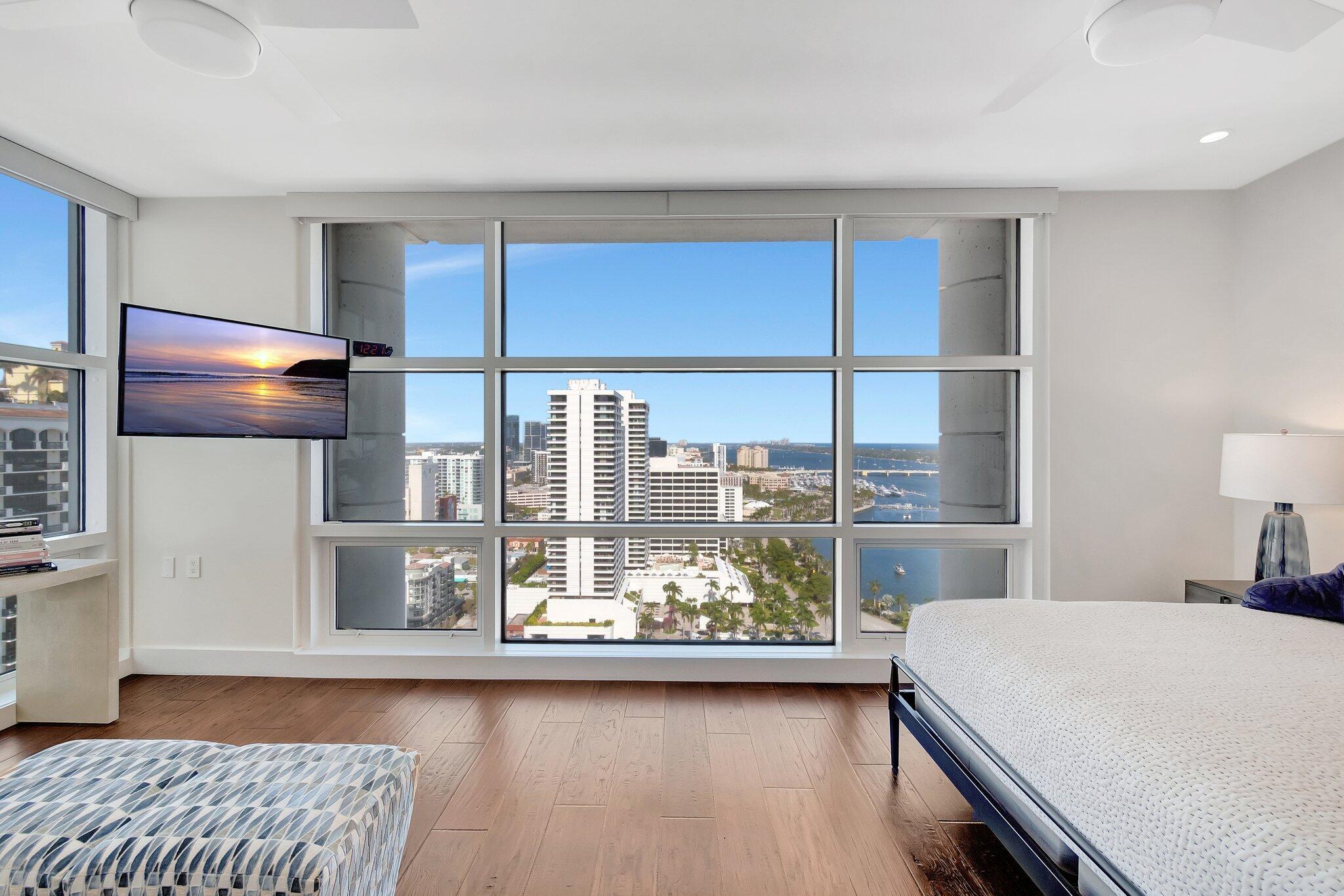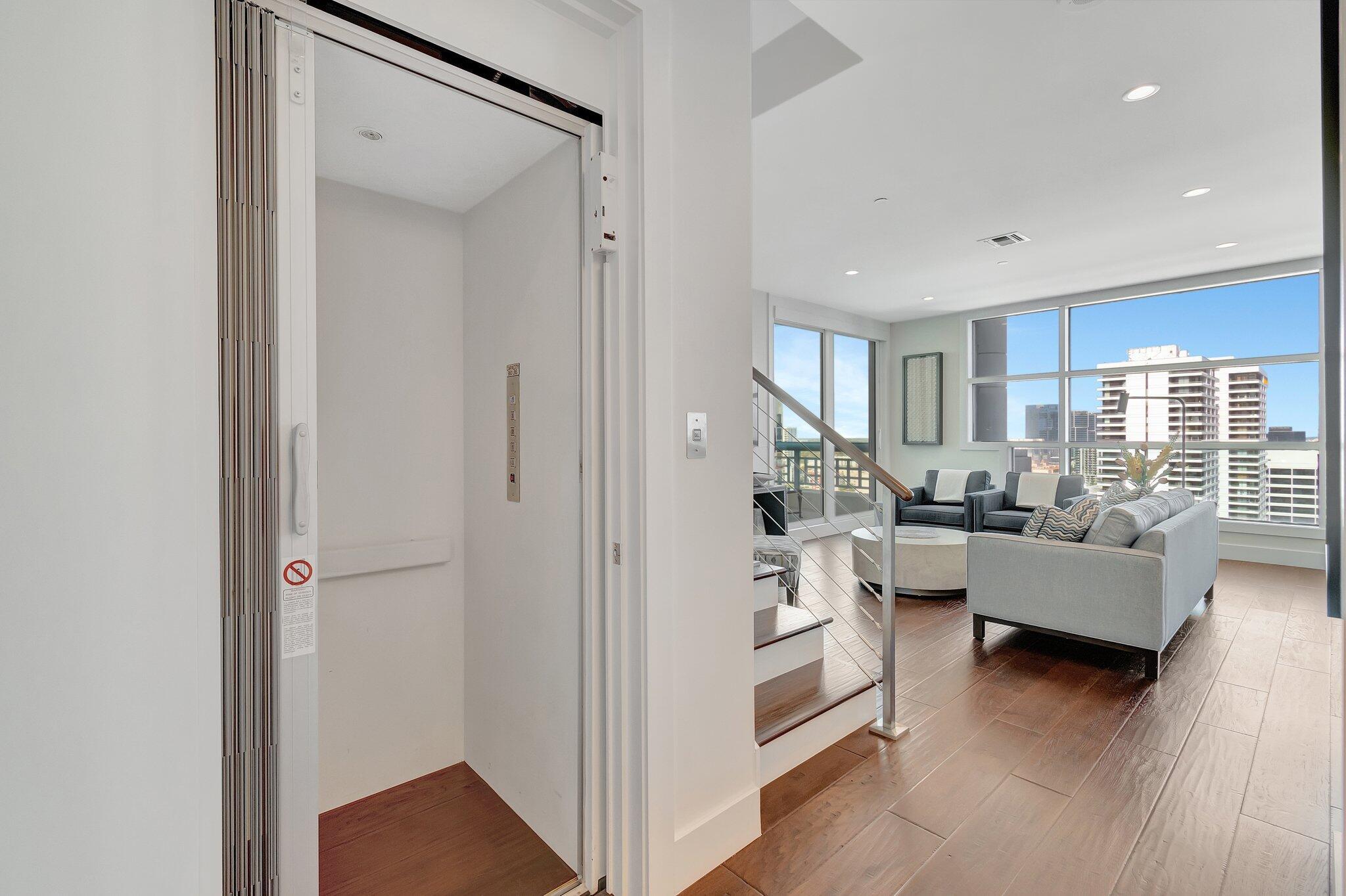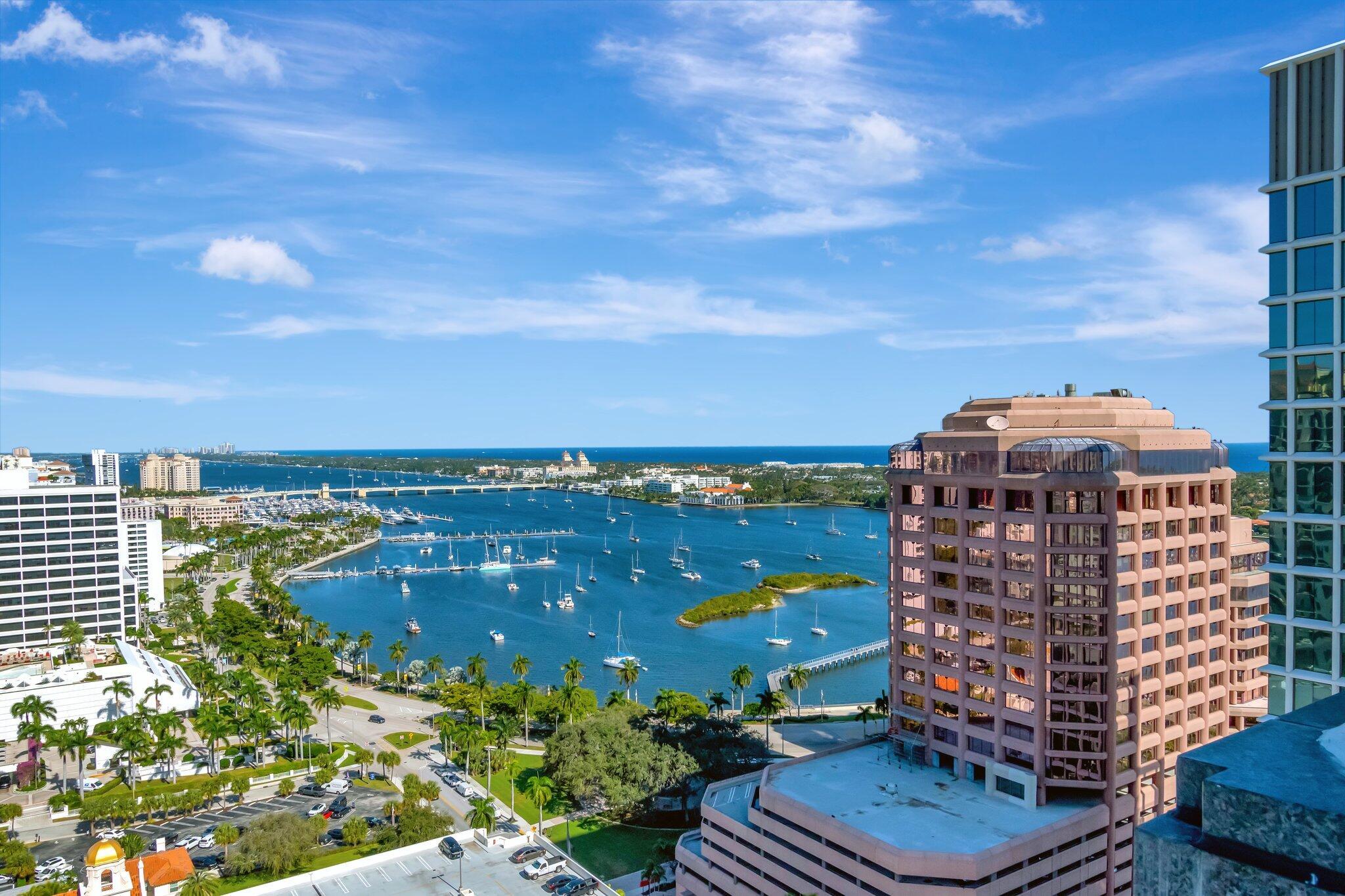 Stunning three-level Penthouse in the Sky combines sleek design, privacy, and panoramic views of the Intracoastal, ocean, and downtown West Palm Beach skyline. An INTERNAL PRIVATE ELEVATOR connects all three floors of the apartment. The top-level primary suite , boasting breathtaking water views . A light-filled retreat with two spacious walk-in closets, a cozy sitting area, and a spa-like bath featuring dual vanities, a soaking tub, and a glass-enclosed shower overlooking the water. The first level offers the perfect setup for guests with a private foyer, sitting area, and two ensuite bedrooms. The main living area features a chef inspired kitchen open to living room and spacious balcony overlooking downtown. This three bedroom residence is located in the exclusive Esperante building,a hidden gem in the middle of all the new development coming to West Palm Beach . Esperante residents enjoy 24-hour security, a fitness center, and a private two - car garage . The building has completed its milestone inspection and restoration, offering peace of mind and timeless appeal. Perfectly positioned in the heart of downtown West Palm Beach ''The New Wall Street " The Esperante is easily assessable to I95 and bridges to Palm Beach Island . Walkable to world-class dining, shopping, and the waterfront this truly is the perfect downtown West Palm Beach location !