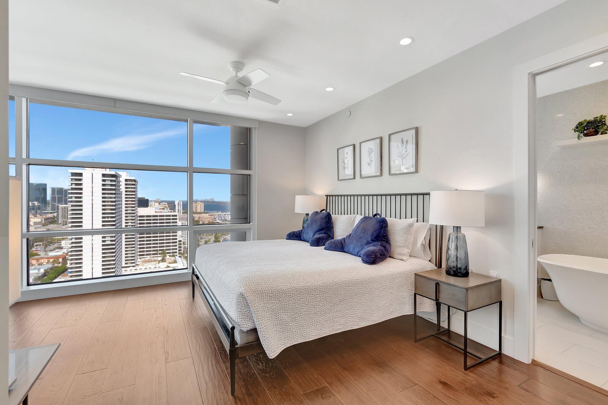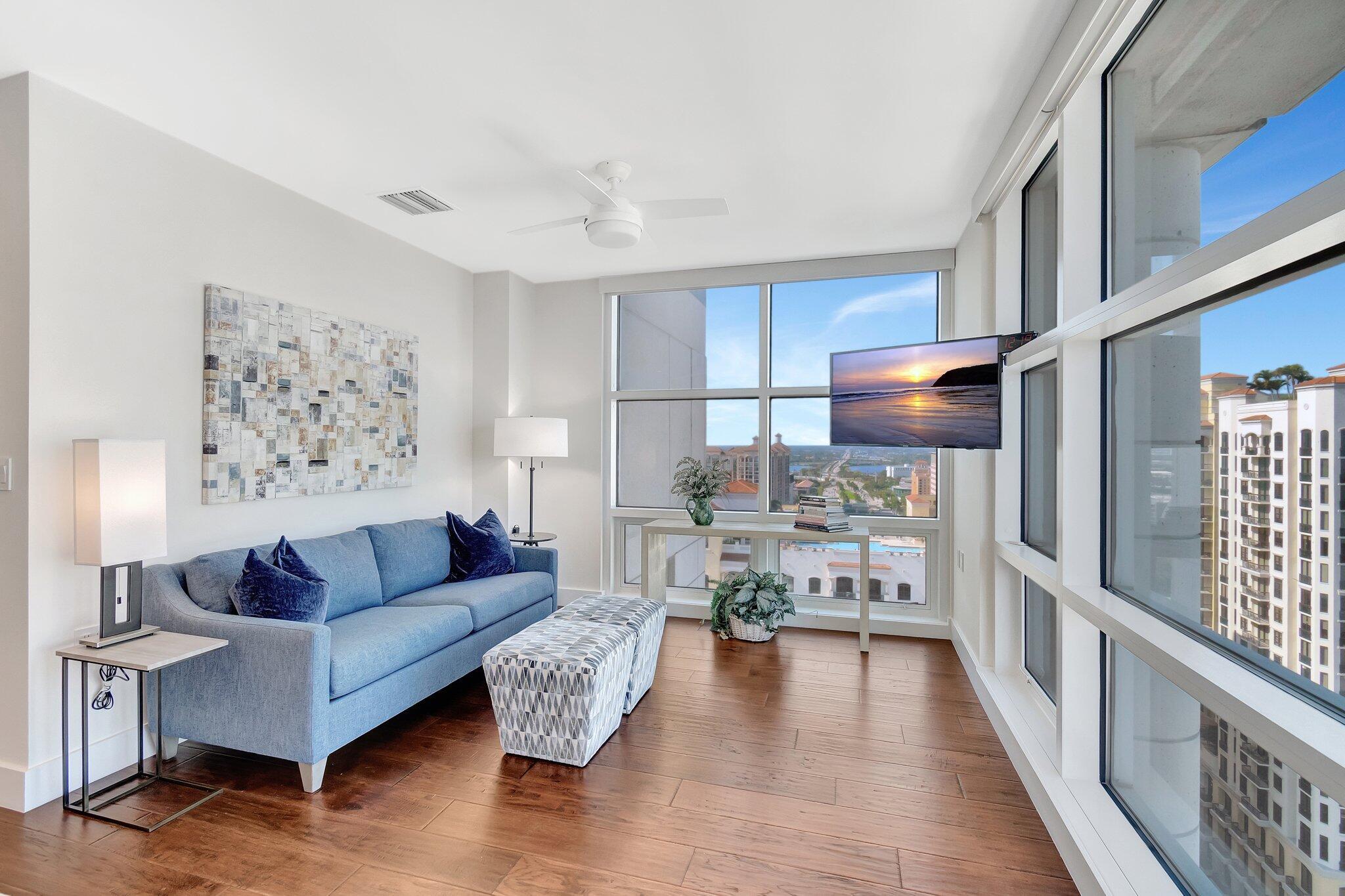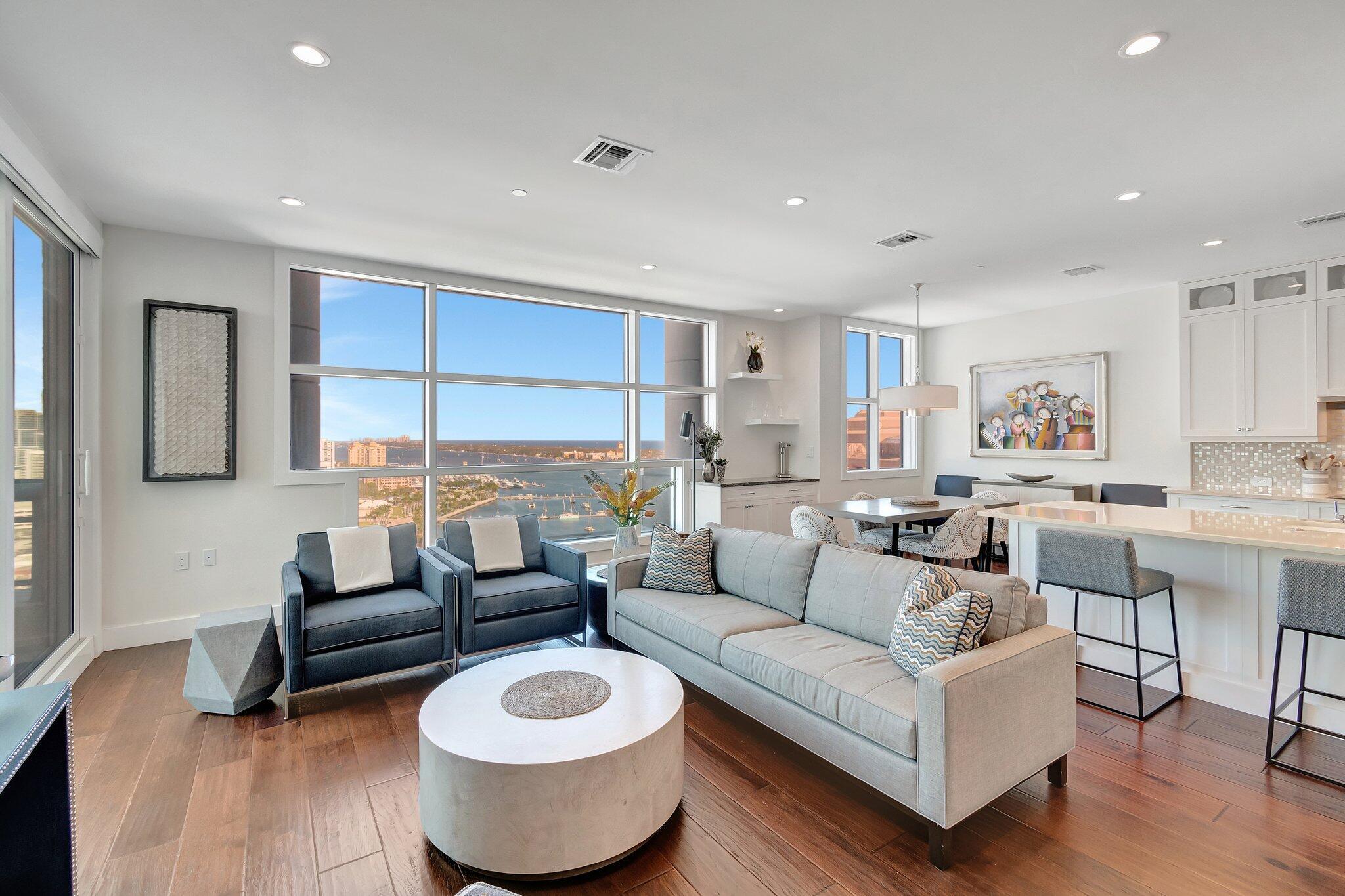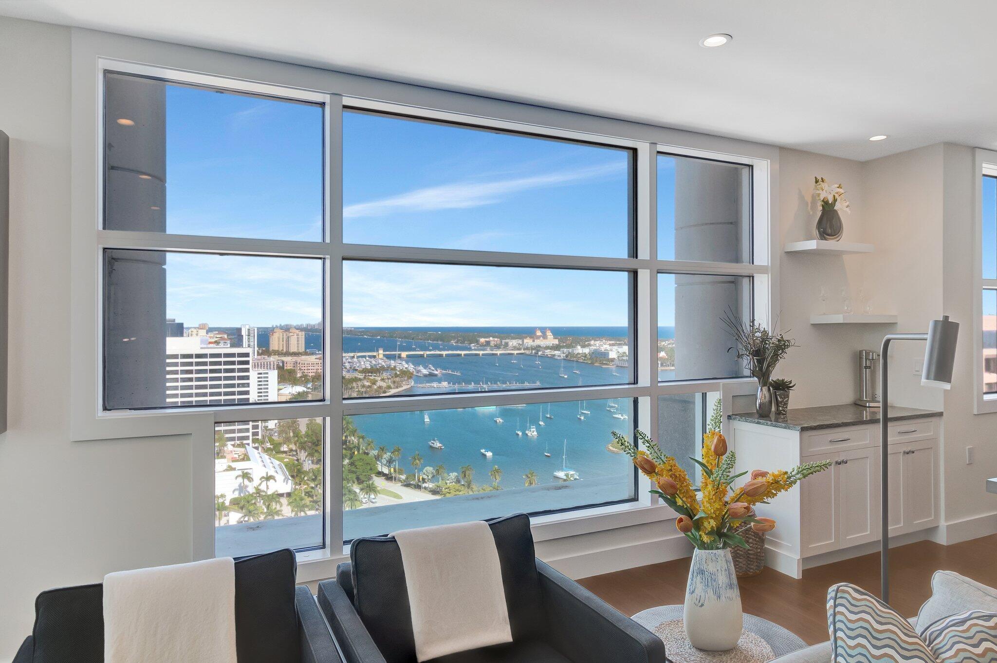 Stunning three-level Penthouse in the Sky combines sleek design, privacy, and panoramic views of the Intracoastal, ocean, and downtown West Palm Beach skyline. An INTERNAL PRIVATE ELEVATOR connects all three floors of the apartment. The top-level primary suite , boasting breathtaking water views . A light-filled retreat with two spacious walk-in closets, a cozy sitting area, and a spa-like bath featuring dual vanities, a soaking tub, and a glass-enclosed shower overlooking the water. The first level offers the perfect setup for guests with a private foyer, sitting area, and two ensuite bedrooms. The main living area features a chef inspired kitchen open to living room and spacious balcony overlooking downtown. This three bedroom residence is located in the exclusive Esperante building,a hidden gem in the middle of all the new development coming to West Palm Beach . Esperante residents enjoy 24-hour security, a fitness center, and a private two - car garage . The building has completed its milestone inspection and restoration, offering peace of mind and timeless appeal. Perfectly positioned in the heart of downtown West Palm Beach ''The New Wall Street " The Esperante is easily assessable to I95 and bridges to Palm Beach Island . Walkable to world-class dining, shopping, and the waterfront this truly is the perfect downtown West Palm Beach location !