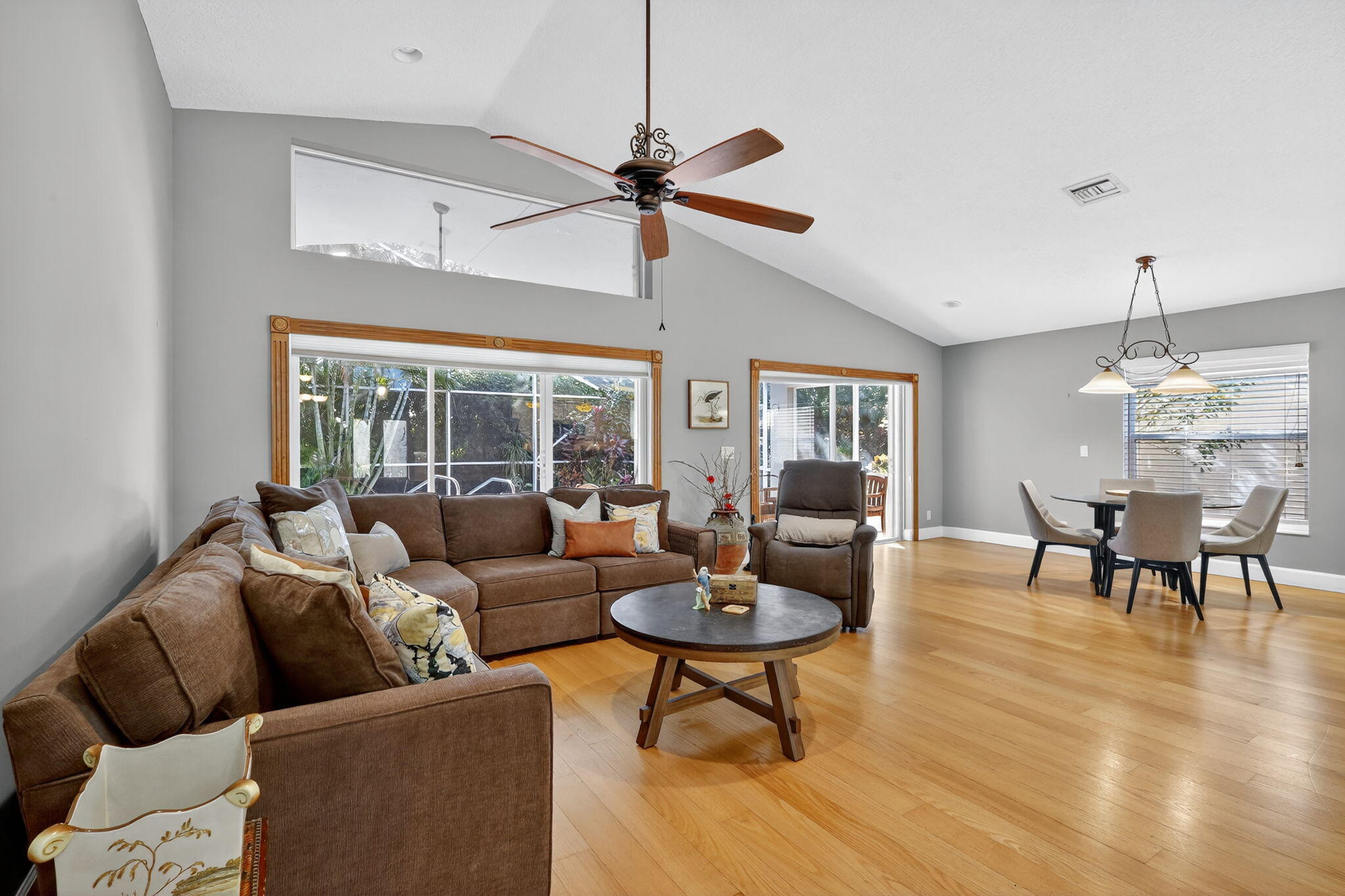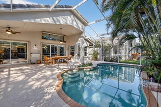 Welcome to your slice of paradise. This lovely 2/2 plus den, well-maintained pool home offers the perfect blend of comfort and style, nestled in one of the area's desirable active adult communities. This home invites you to enjoy every day to the fullest. Wood flooring, lots of kitchen counter space and a very open contemporary design floor plan, this is a true entertaining home. Enjoy the Florida lifestyle on your oversized screen enclosed pool patio! Great community amenities includes pickleball, tennis, indoor and outdoor pool, cafe, card rooms, entertainment, fitness center and much more. Bellaggio is an undisputed leader in planned community living featuring 10 Har-Tru lighted tennis courts with stadium seating, 4 pickleball courts with interclub leagues, a pro shop, multiple carooms, billiards, an arts/crafts center, computer/media room, library, and putting green. The 36,000 square foot clubhouse features a grand ballroom, outside professional entertainment and shows, a kitchen/café, heated indoor and resort styled outdoor heated swimming pools, fully equipped fitness center with aerobic studio, and so much more... HOA includes lawn care and lawn irrigation, exterior painting, cable, internet, $250 annual credit at bistro and the recreational facilities.