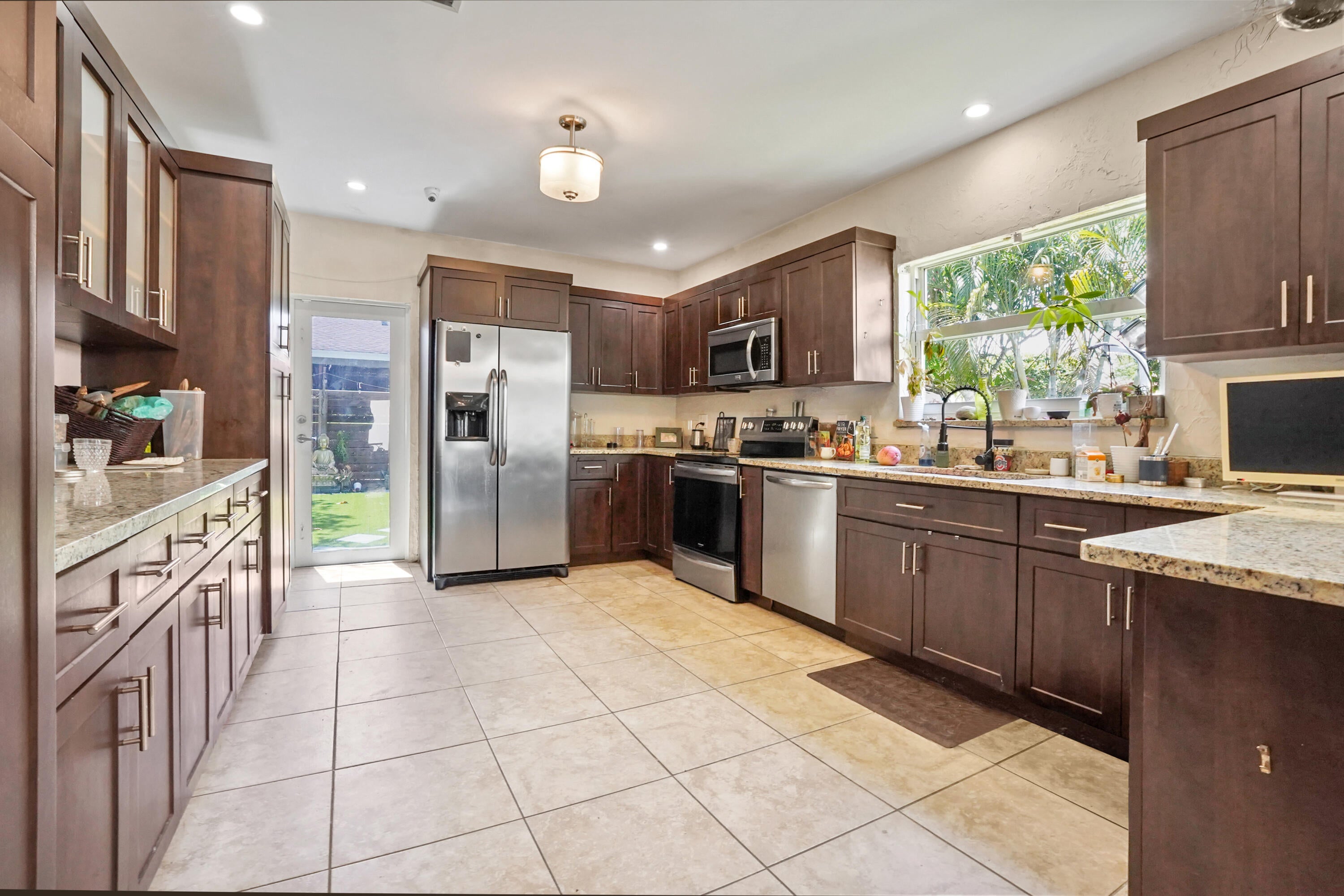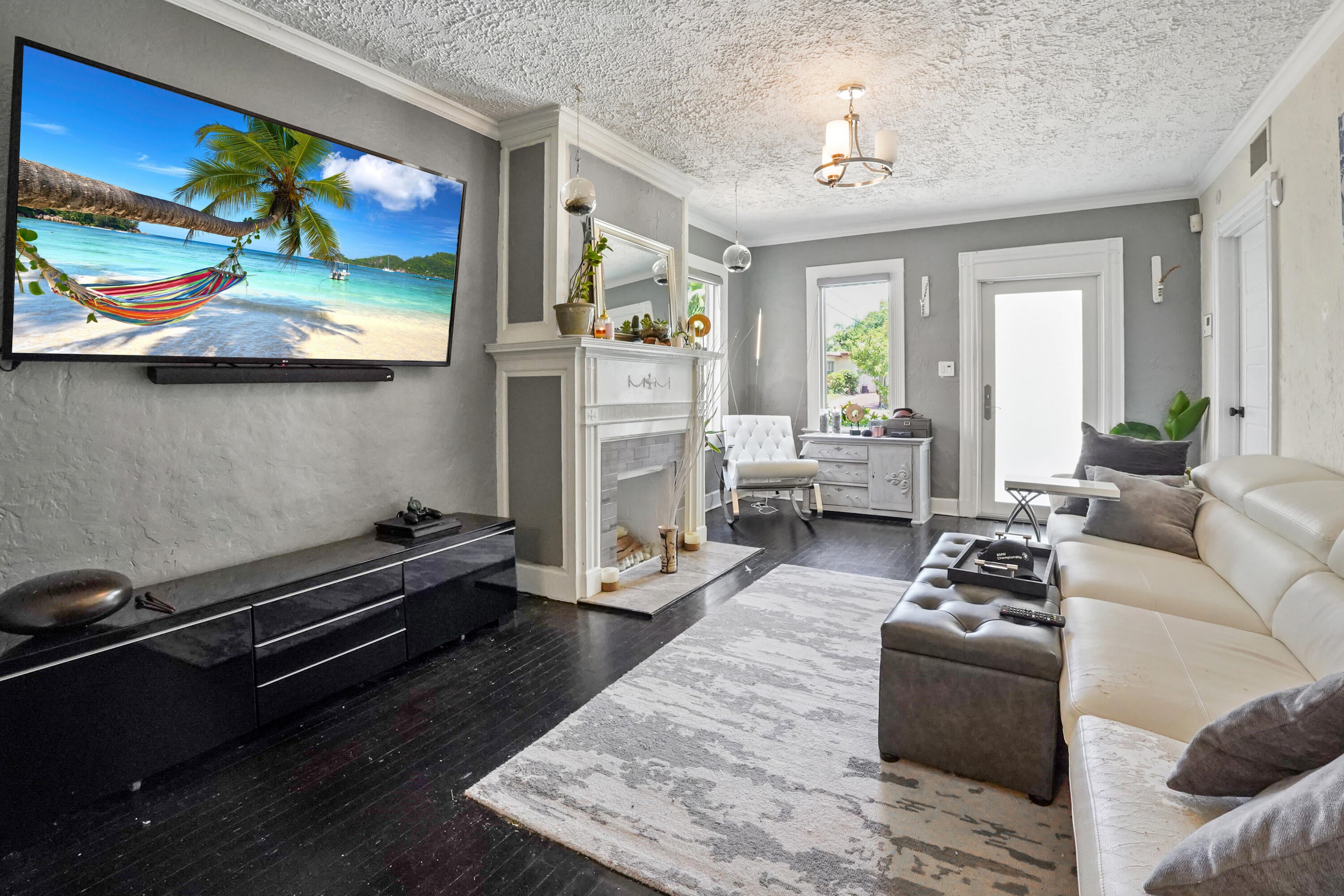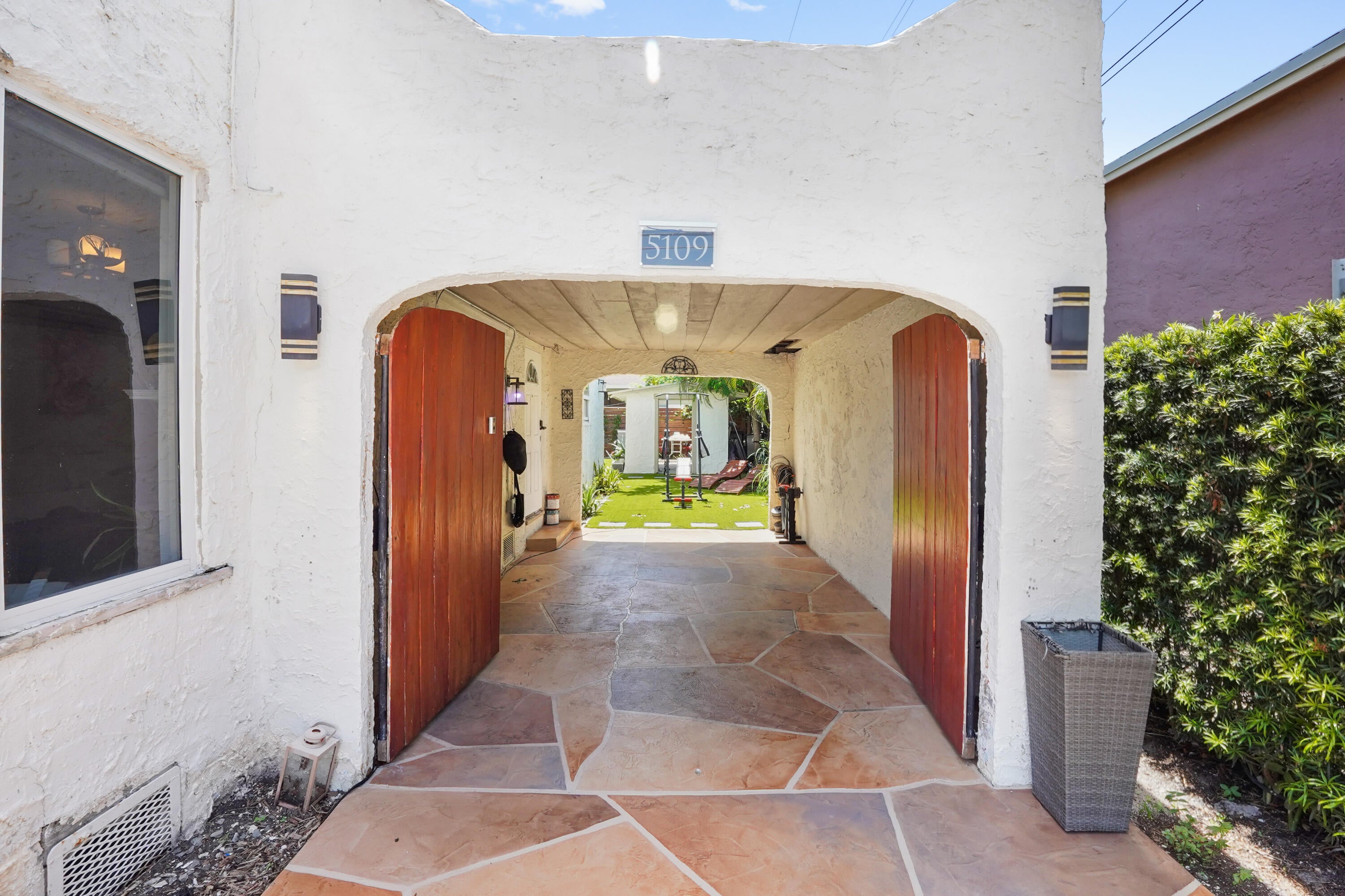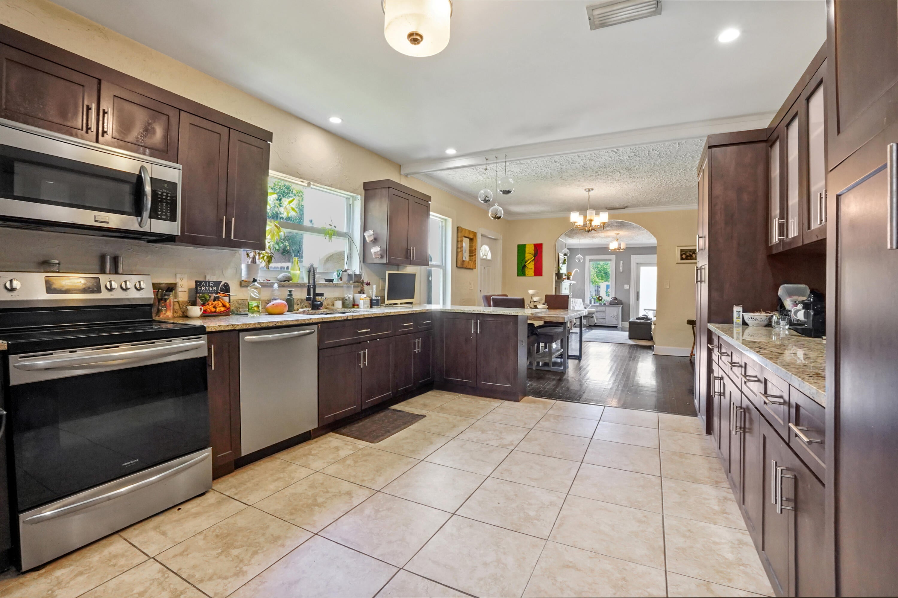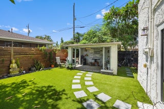 Step into this enchanting home, where beachy chic seamlessly blends with historic elegance. Located on Garden Avenue, this residence offers a spacious open kitchen featuring granite countertops and stainless steel appliances. The airy flow from the living to the dining and kitchen areas creates an inviting atmosphere perfect for both entertaining and everyday living. New AC - 2023. Impact windows and doors throughout. The home boasts restored dark hardwood floors, graceful arches, and a stately mantle, capturing the essence of Spanish style. The bright and cheerful interior adds a modern touch to the classic design. Each bedroom is equipped with lights and fans with remote controls for added convenience.The bathroom features a tankless water heater, ensuring endless hot water. The fenced backyard is a private oasis, complete with a cabana for lounging in the shade and lush tropical landscaping. Located close to Dreher Park, Antique Row, restaurants, and the Southern bridge to Palm Beach, this home is ideally situated for enjoying all that the area has to offer. Don't miss out on this unique opportunity to own a piece of history with modern comforts. This great home is located just minutes from fine shopping, dining, and much more!