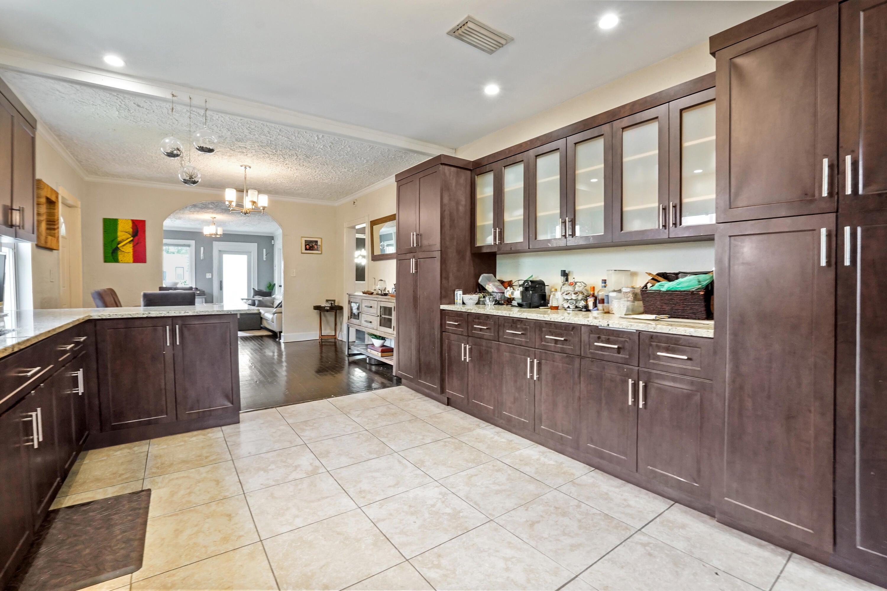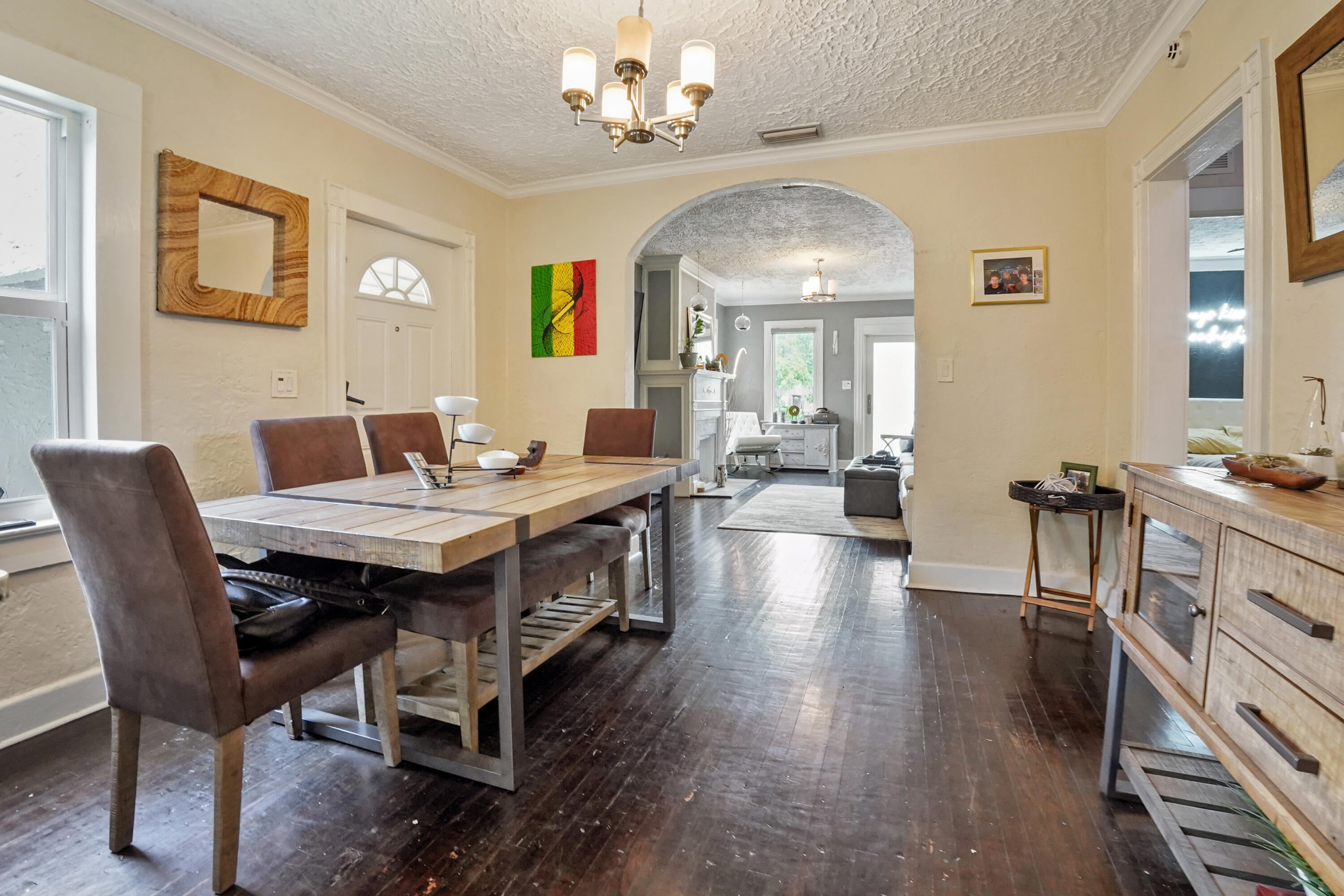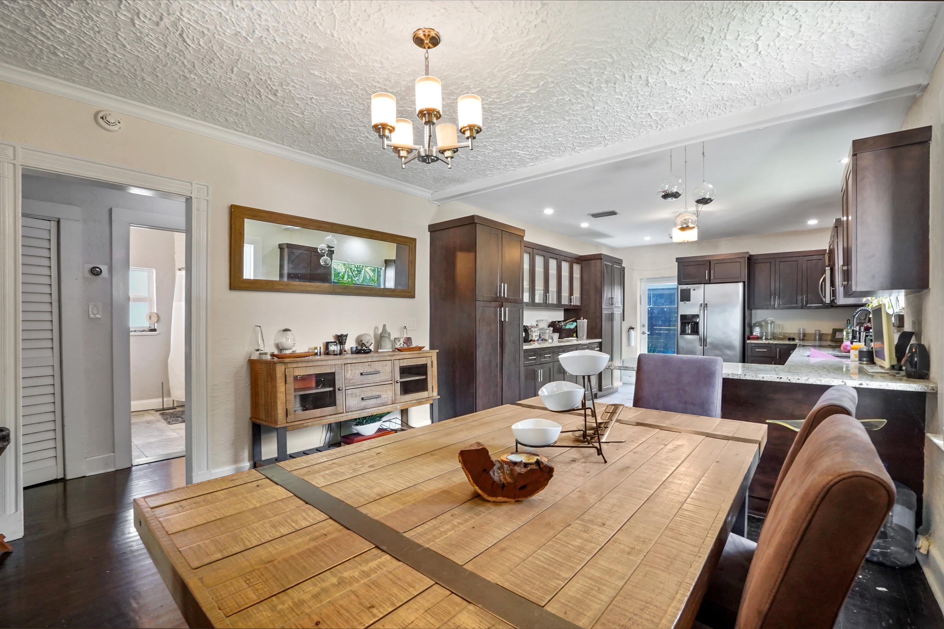 Step into this enchanting home, where beachy chic seamlessly blends with historic elegance. Located on Garden Avenue, this residence offers a spacious open kitchen featuring granite countertops and stainless steel appliances. The airy flow from the living to the dining and kitchen areas creates an inviting atmosphere perfect for both entertaining and everyday living. New AC - 2023. Impact windows and doors throughout. The home boasts restored dark hardwood floors, graceful arches, and a stately mantle, capturing the essence of Spanish style. The bright and cheerful interior adds a modern touch to the classic design. Each bedroom is equipped with lights and fans with remote controls for added convenience.The bathroom features a tankless water heater, ensuring endless hot water. The fenced backyard is a private oasis, complete with a cabana for lounging in the shade and lush tropical landscaping. Located close to Dreher Park, Antique Row, restaurants, and the Southern bridge to Palm Beach, this home is ideally situated for enjoying all that the area has to offer. Don't miss out on this unique opportunity to own a piece of history with modern comforts. This great home is located just minutes from fine shopping, dining, and much more!