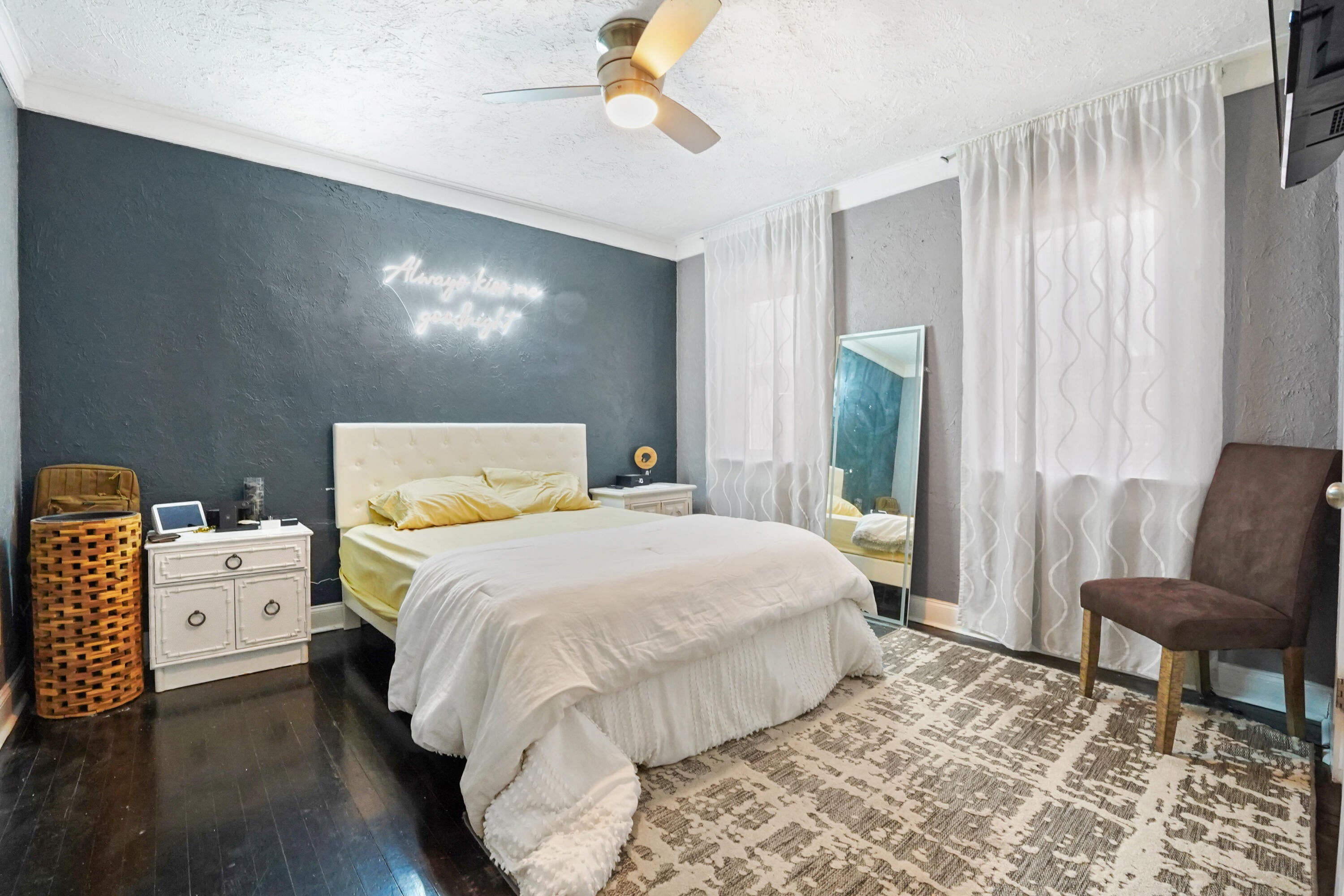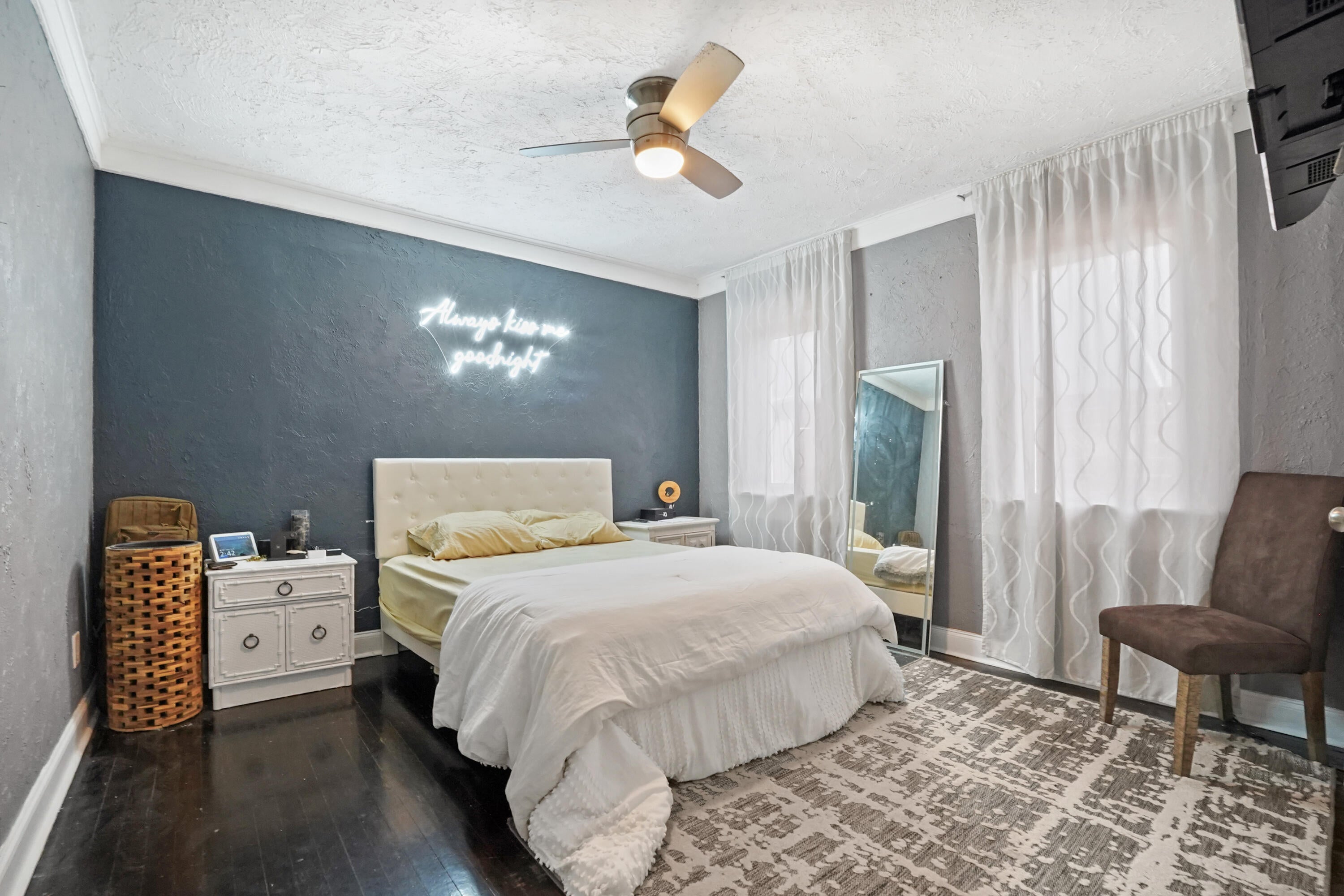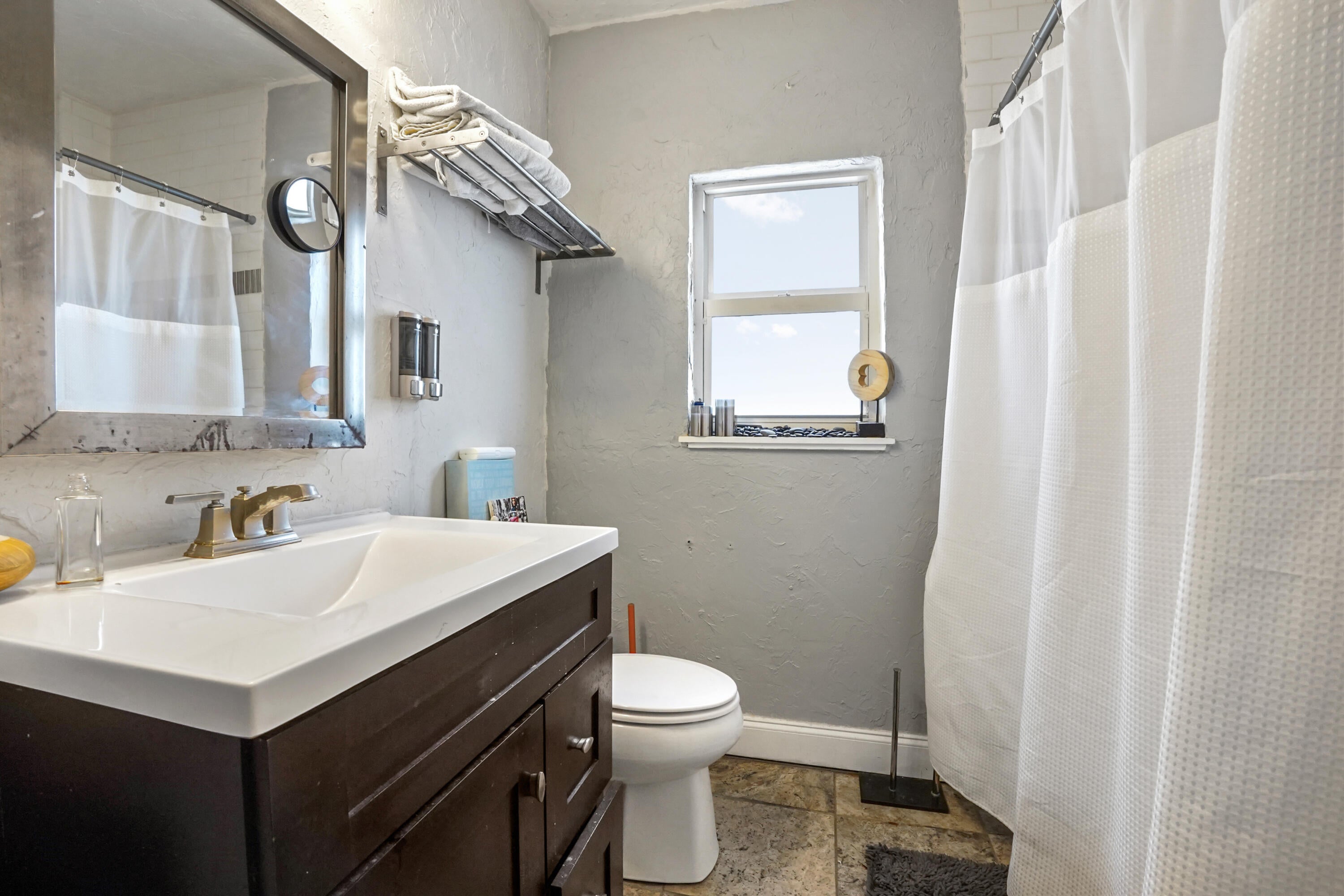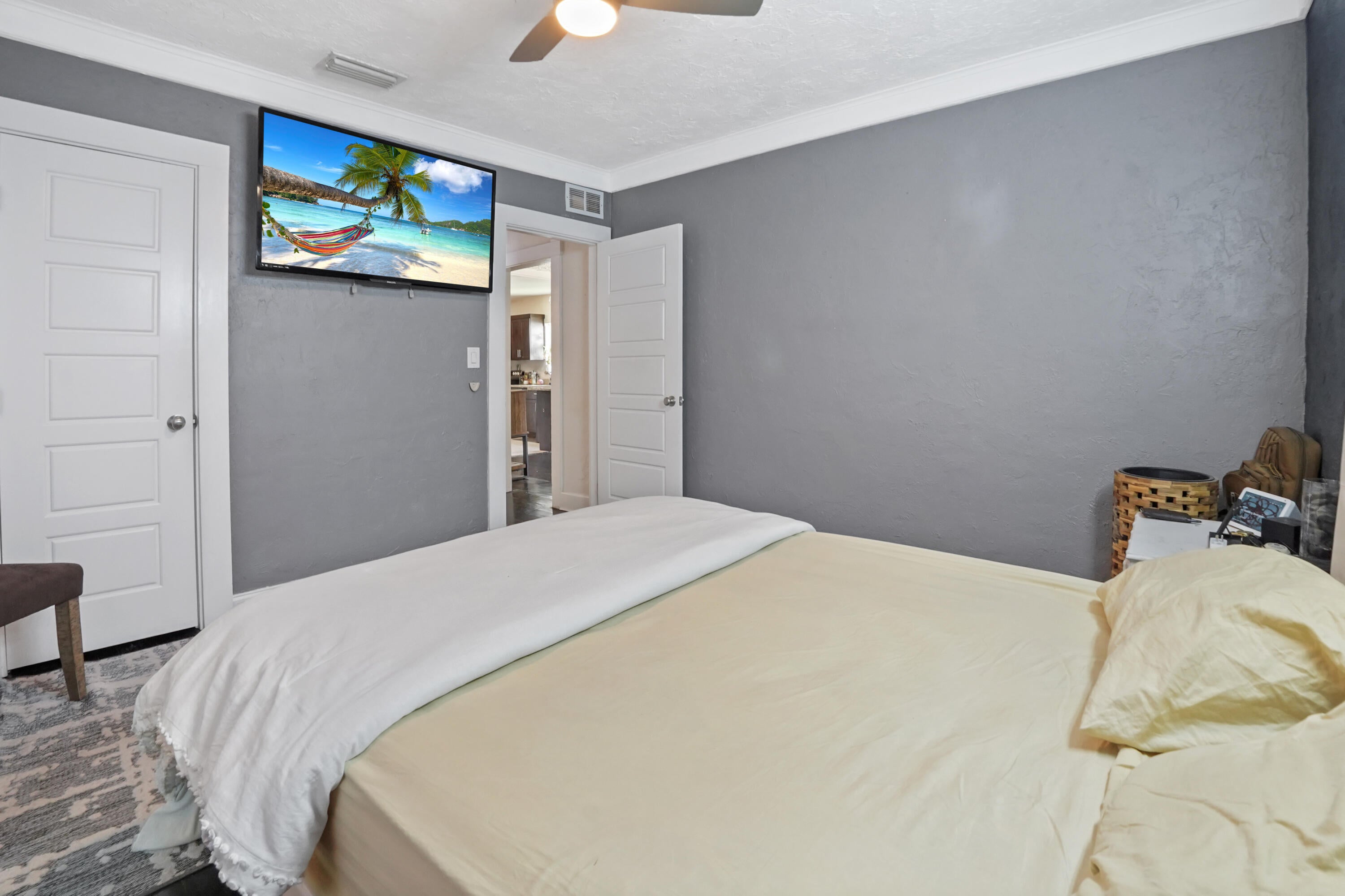 Step into this enchanting home, where beachy chic seamlessly blends with historic elegance. Located on Garden Avenue, this residence offers a spacious open kitchen featuring granite countertops and stainless steel appliances. The airy flow from the living to the dining and kitchen areas creates an inviting atmosphere perfect for both entertaining and everyday living. New AC - 2023. Impact windows and doors throughout. The home boasts restored dark hardwood floors, graceful arches, and a stately mantle, capturing the essence of Spanish style. The bright and cheerful interior adds a modern touch to the classic design. Each bedroom is equipped with lights and fans with remote controls for added convenience.The bathroom features a tankless water heater, ensuring endless hot water. The fenced backyard is a private oasis, complete with a cabana for lounging in the shade and lush tropical landscaping. Located close to Dreher Park, Antique Row, restaurants, and the Southern bridge to Palm Beach, this home is ideally situated for enjoying all that the area has to offer. Don't miss out on this unique opportunity to own a piece of history with modern comforts. This great home is located just minutes from fine shopping, dining, and much more!